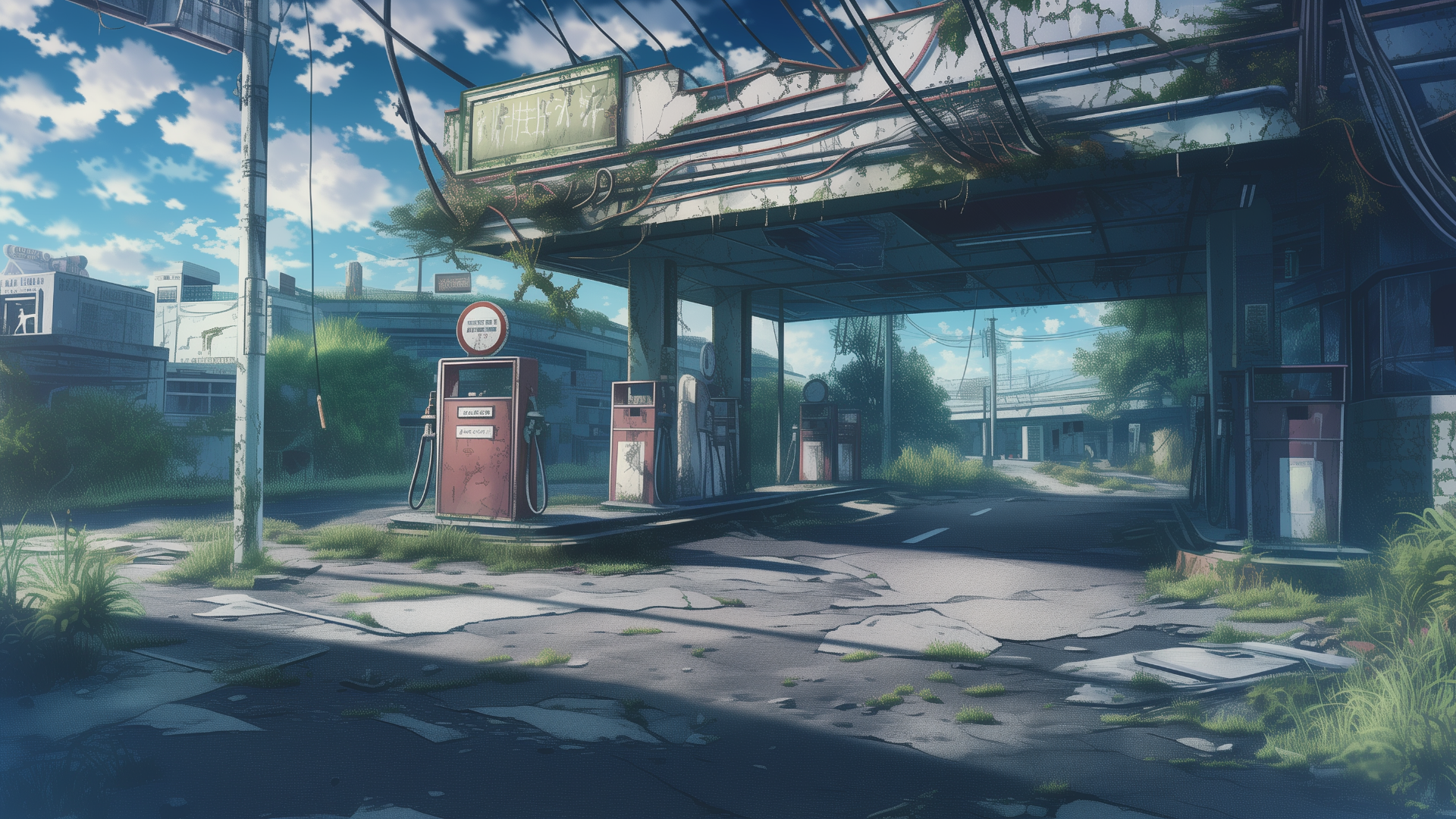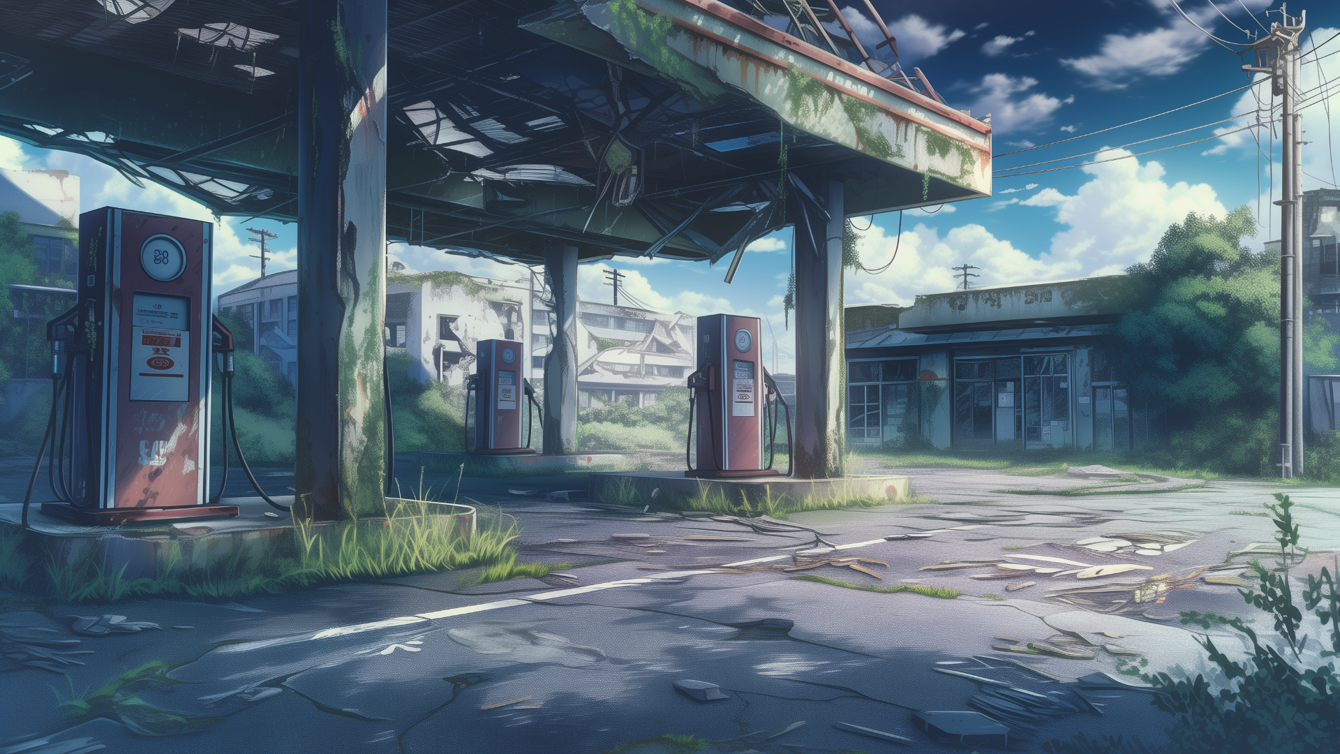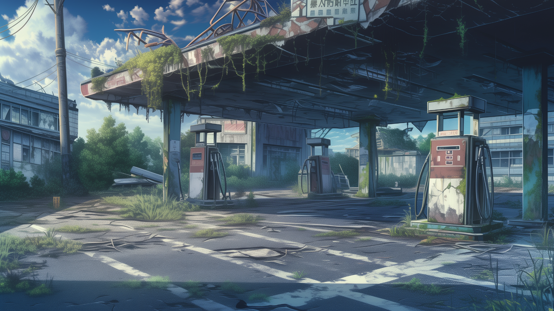 荒れた状態のまま放棄された、ガソリンスタンドのフリー背景素材です。
