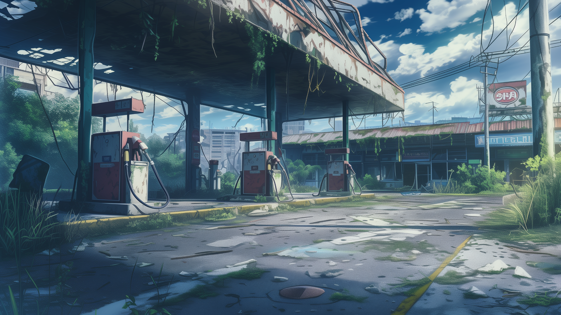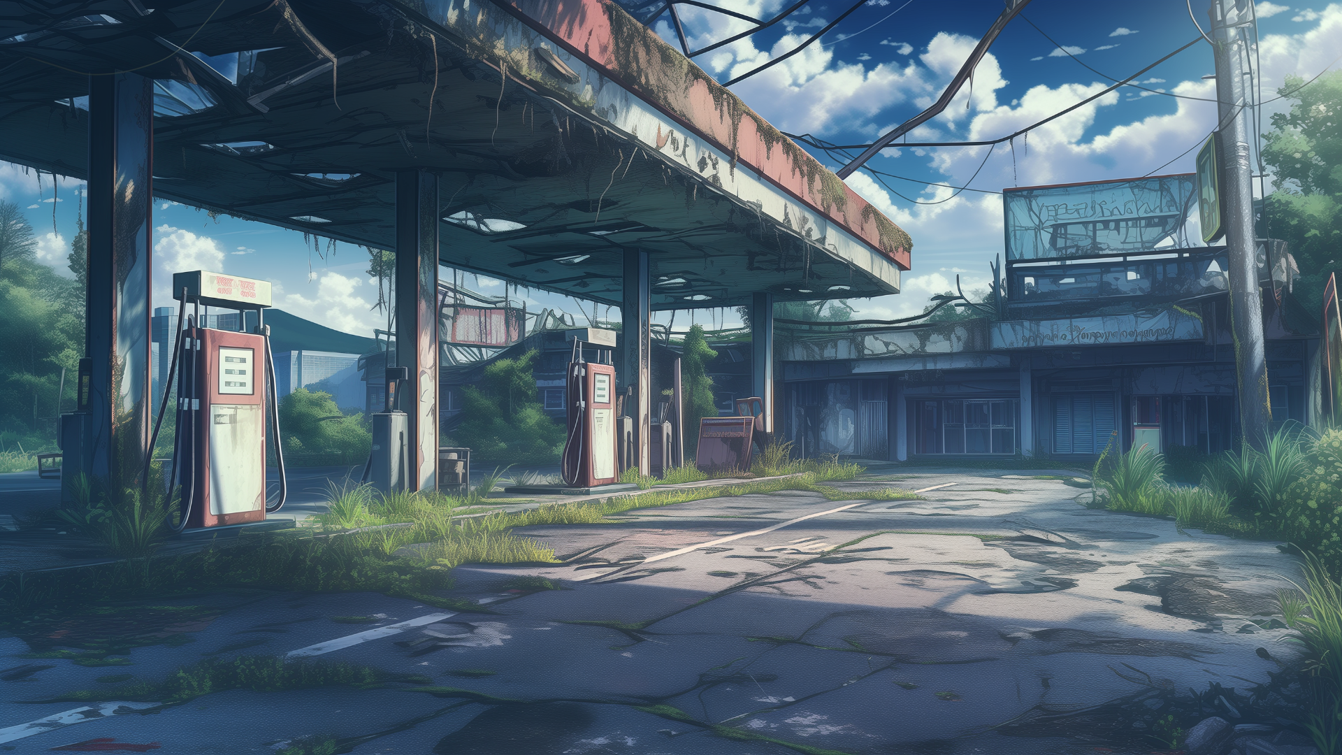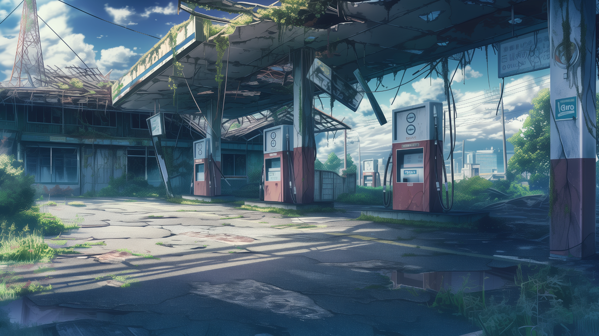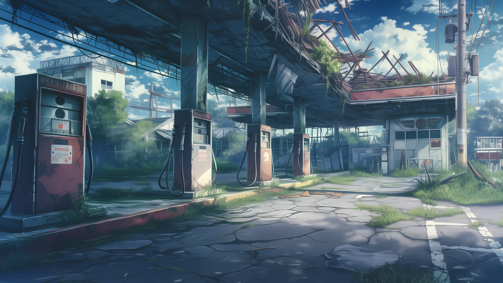 荒れた状態のまま放棄された、ガソリンスタンドのフリー背景素材です。