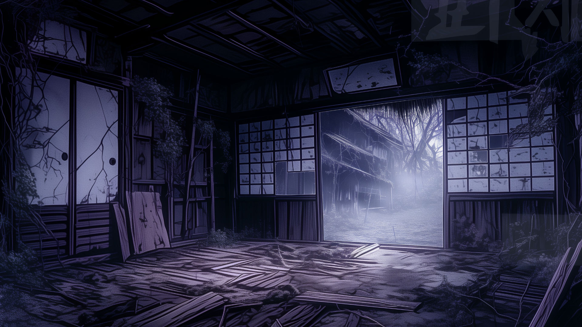廃屋, 和室, 障子, 崩れた屋根, 暗い