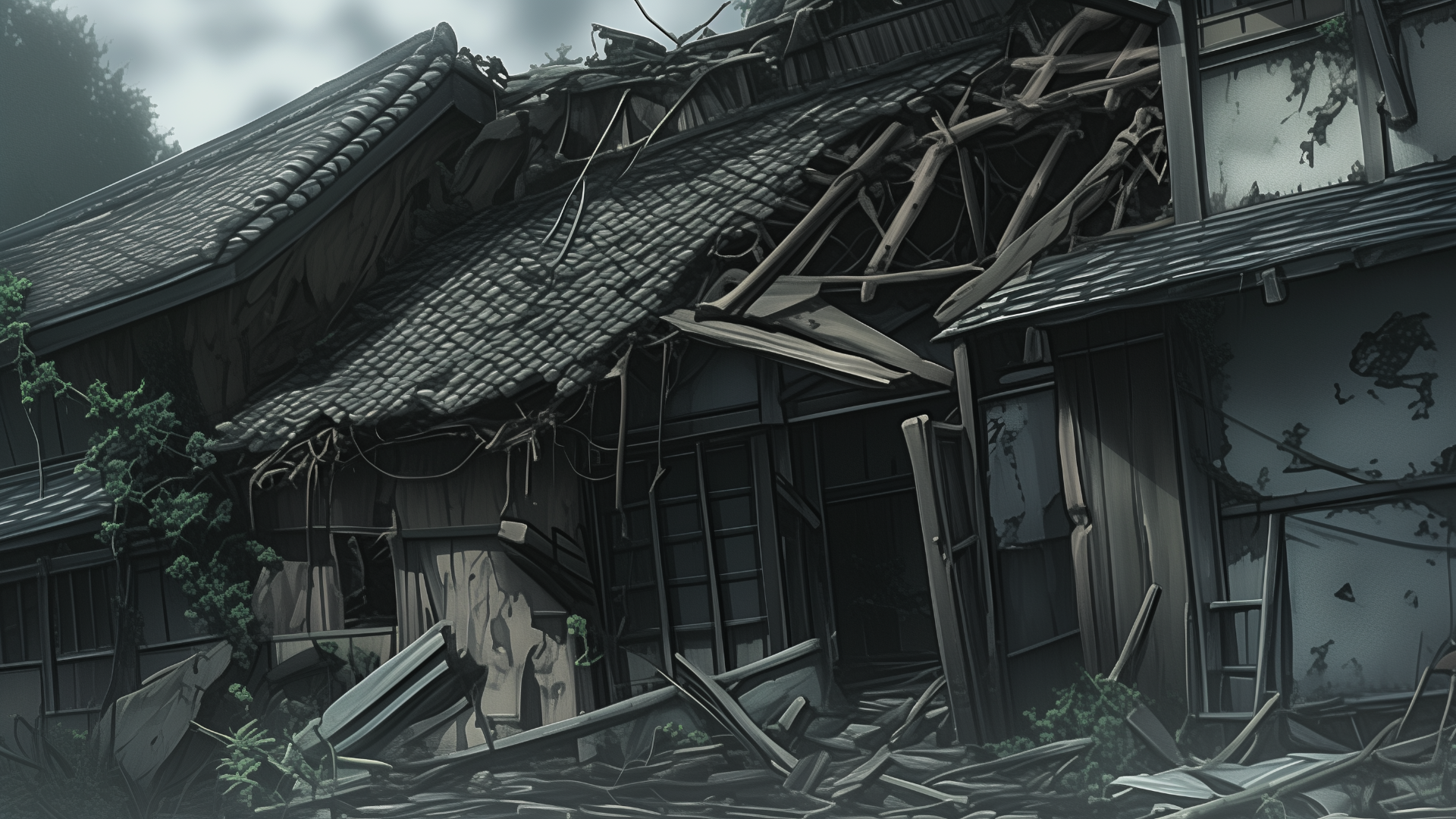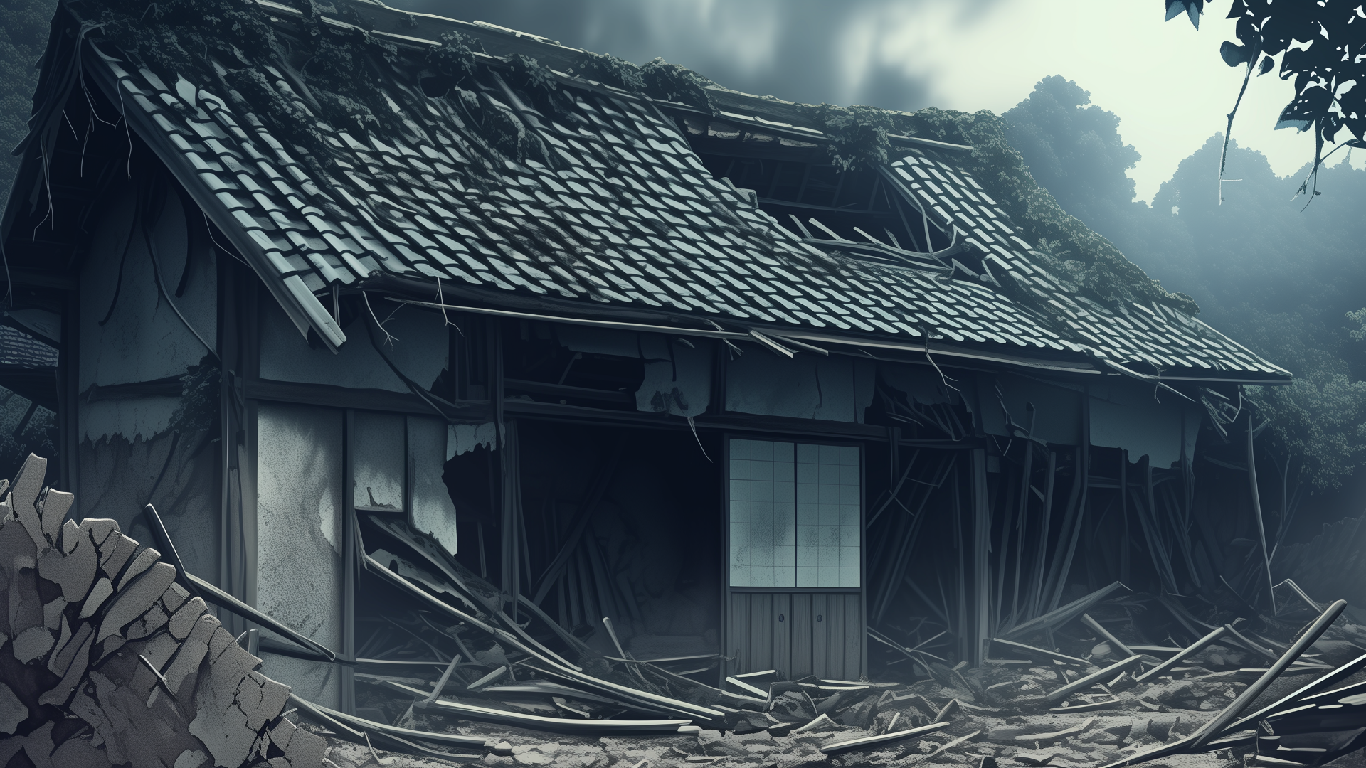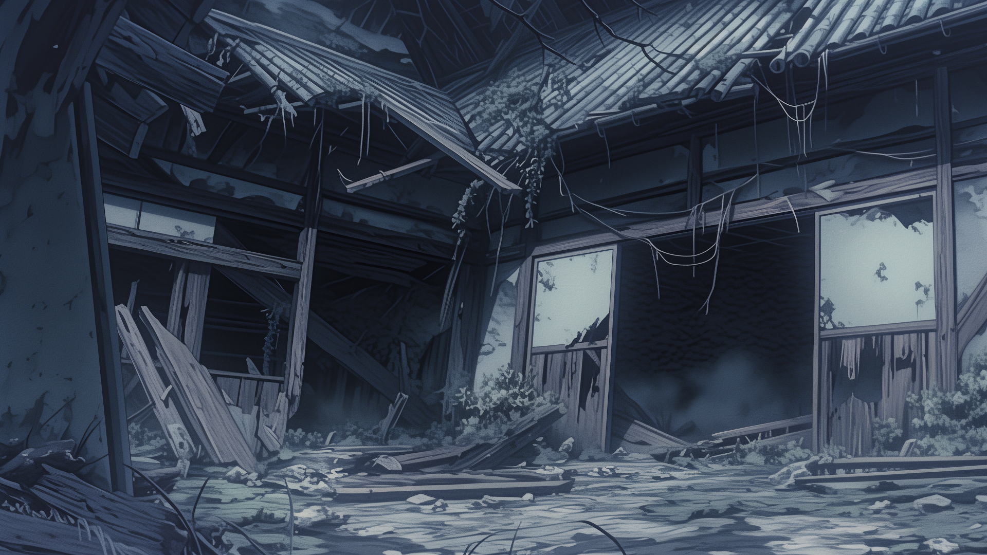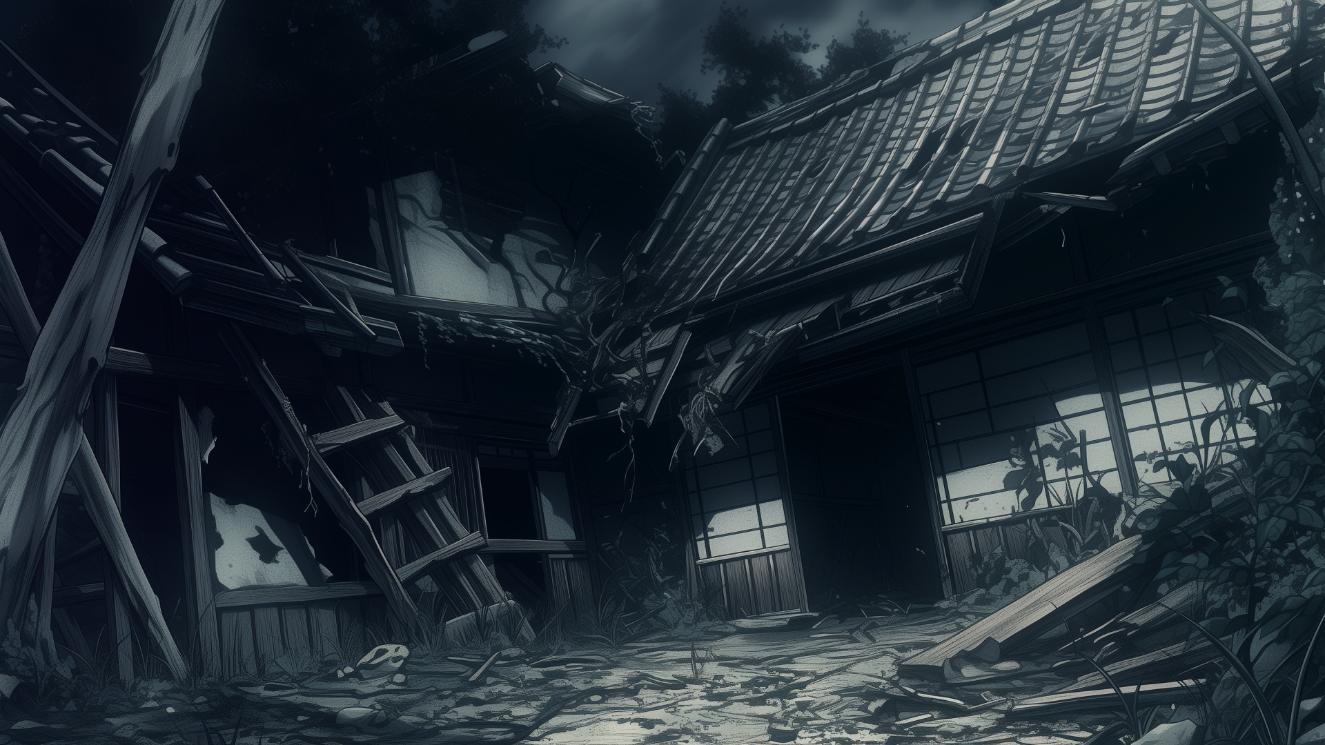 廃村にあるボロボロな蔵のフリー背景素材です。