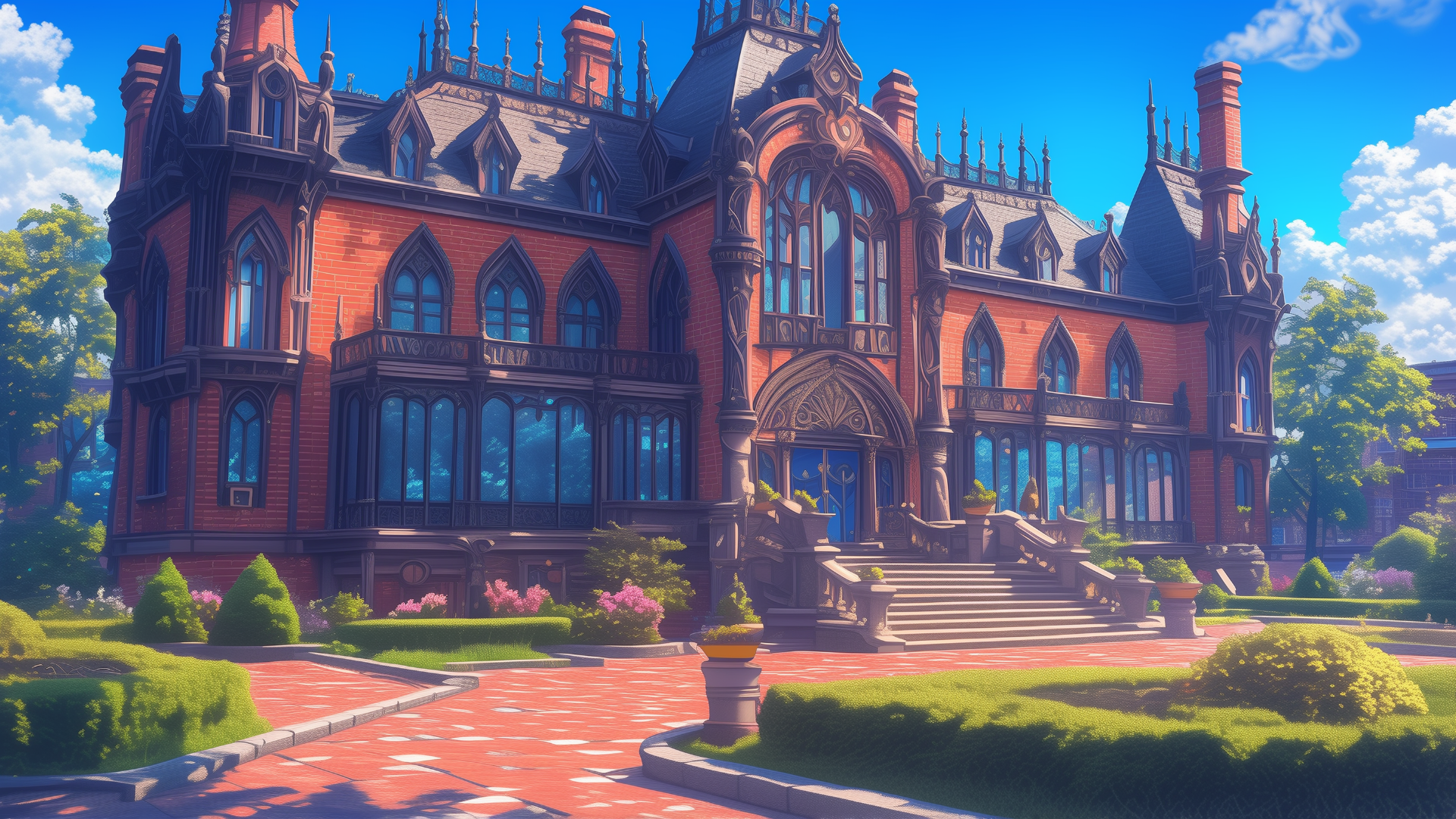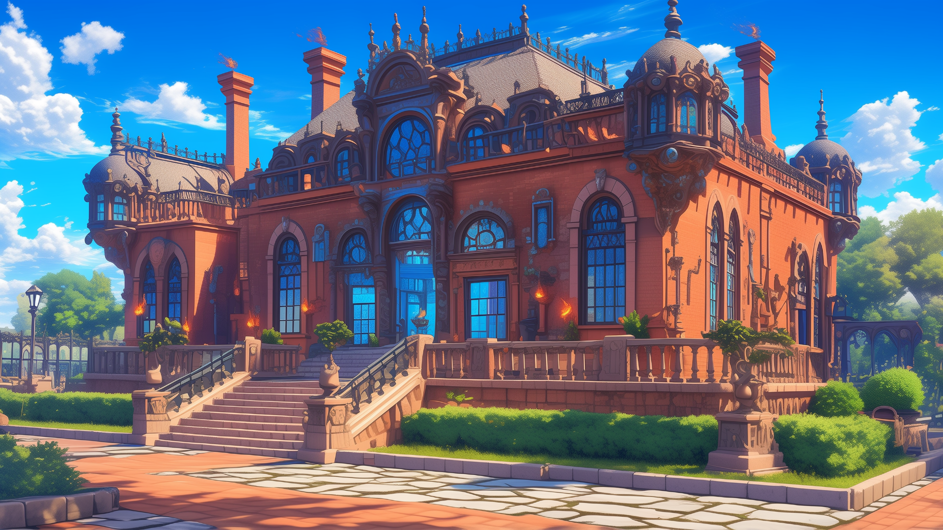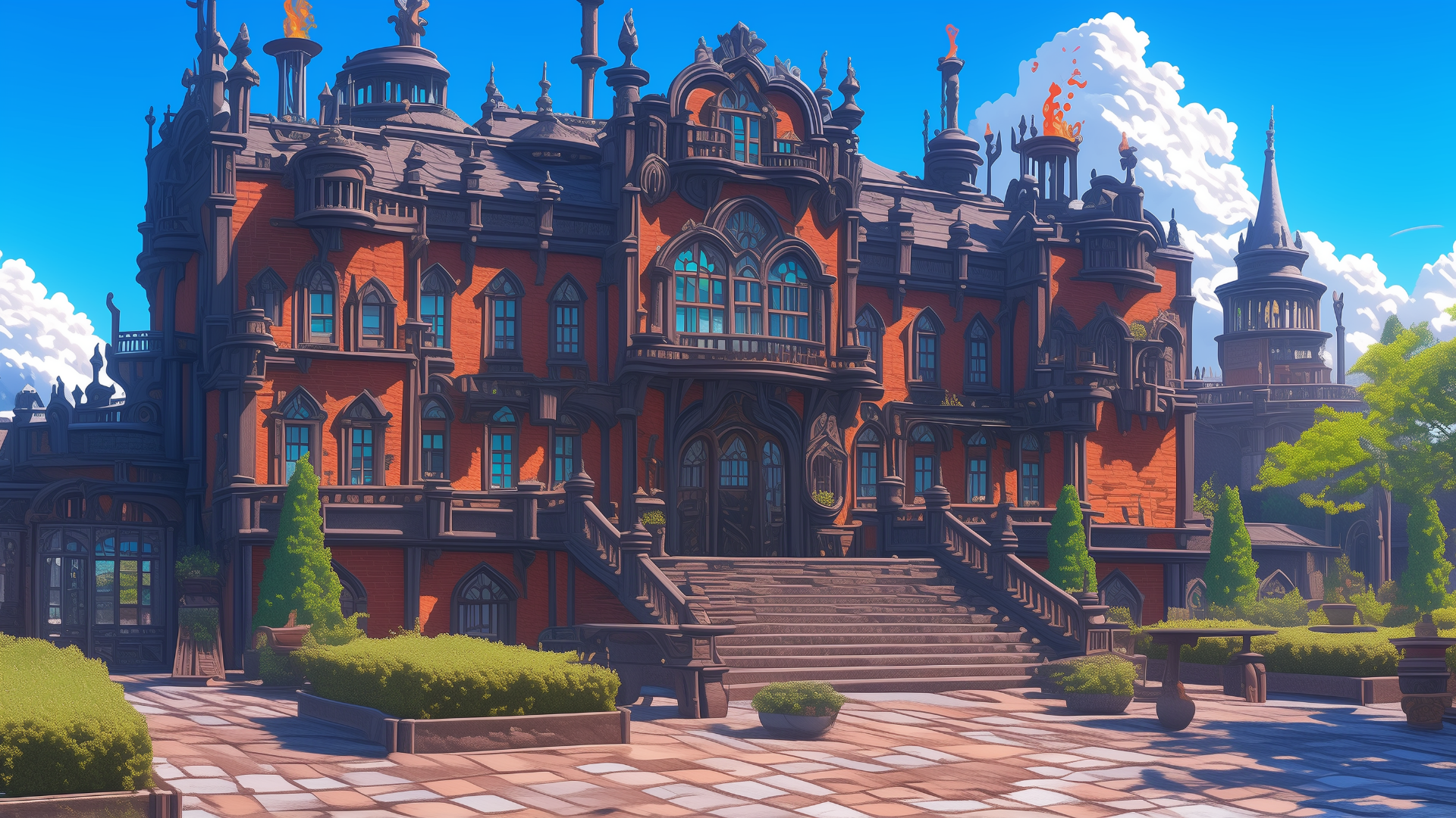 魔法学校の寮(炎属性・昼)、外観のフリー背景素材です。