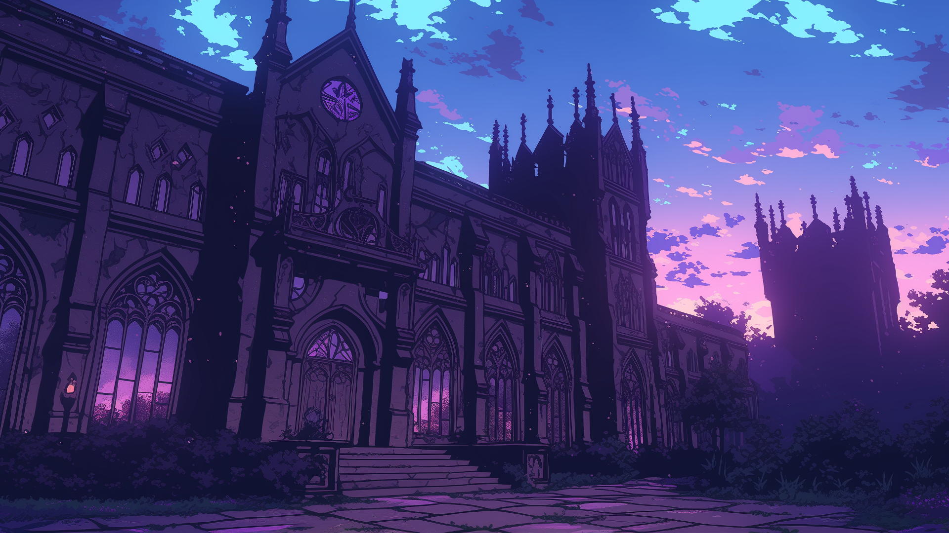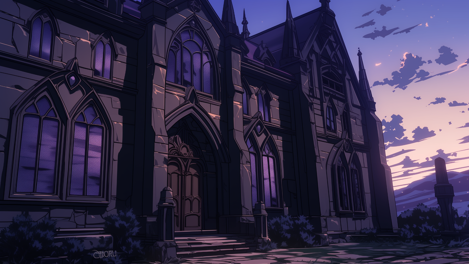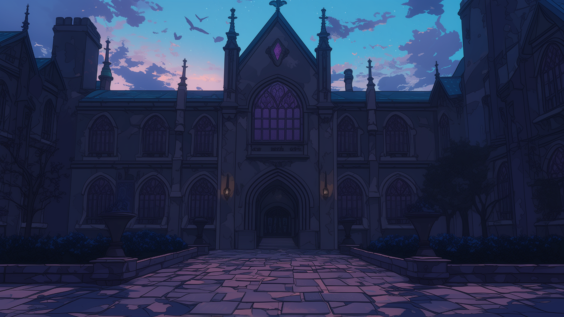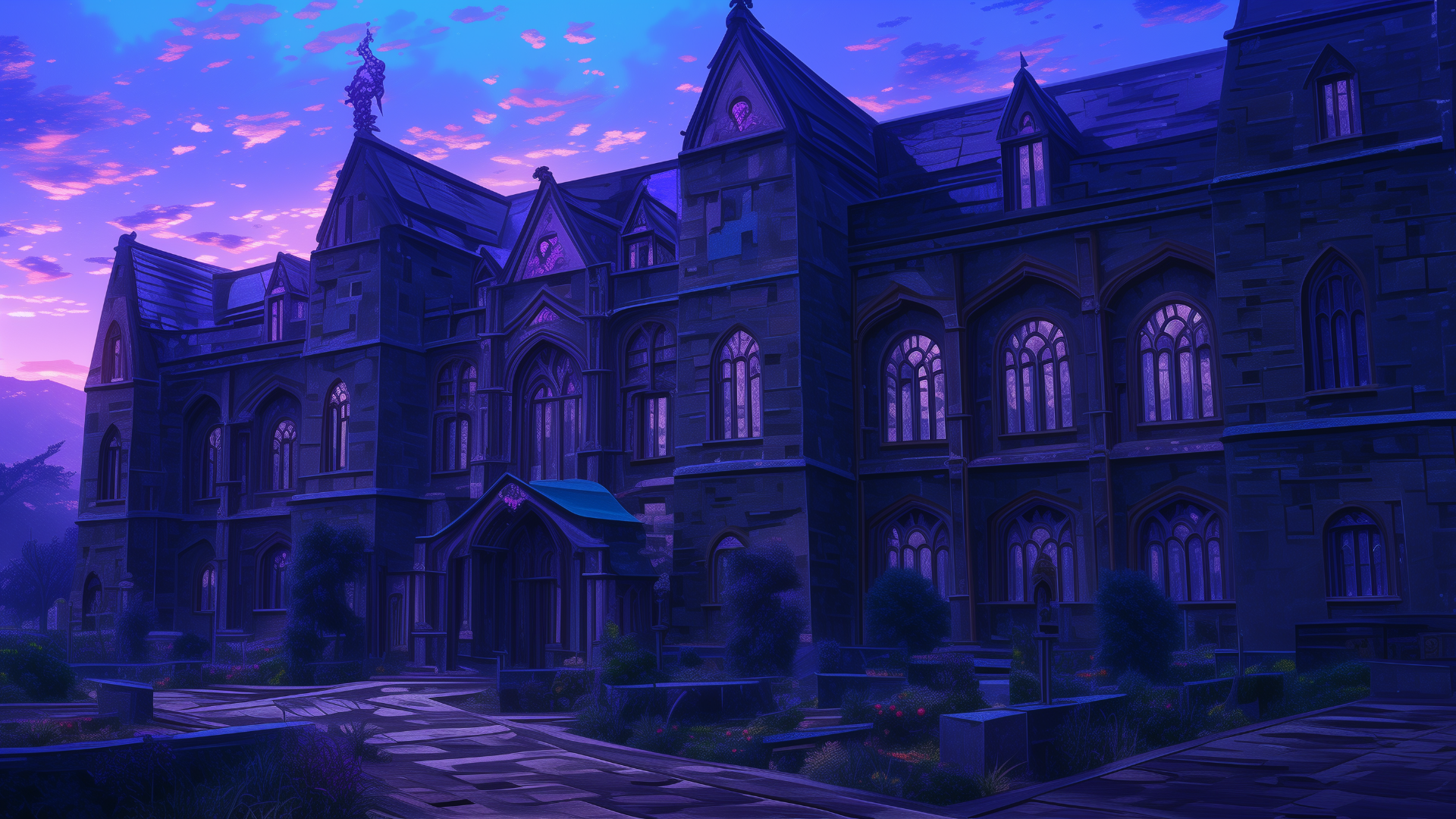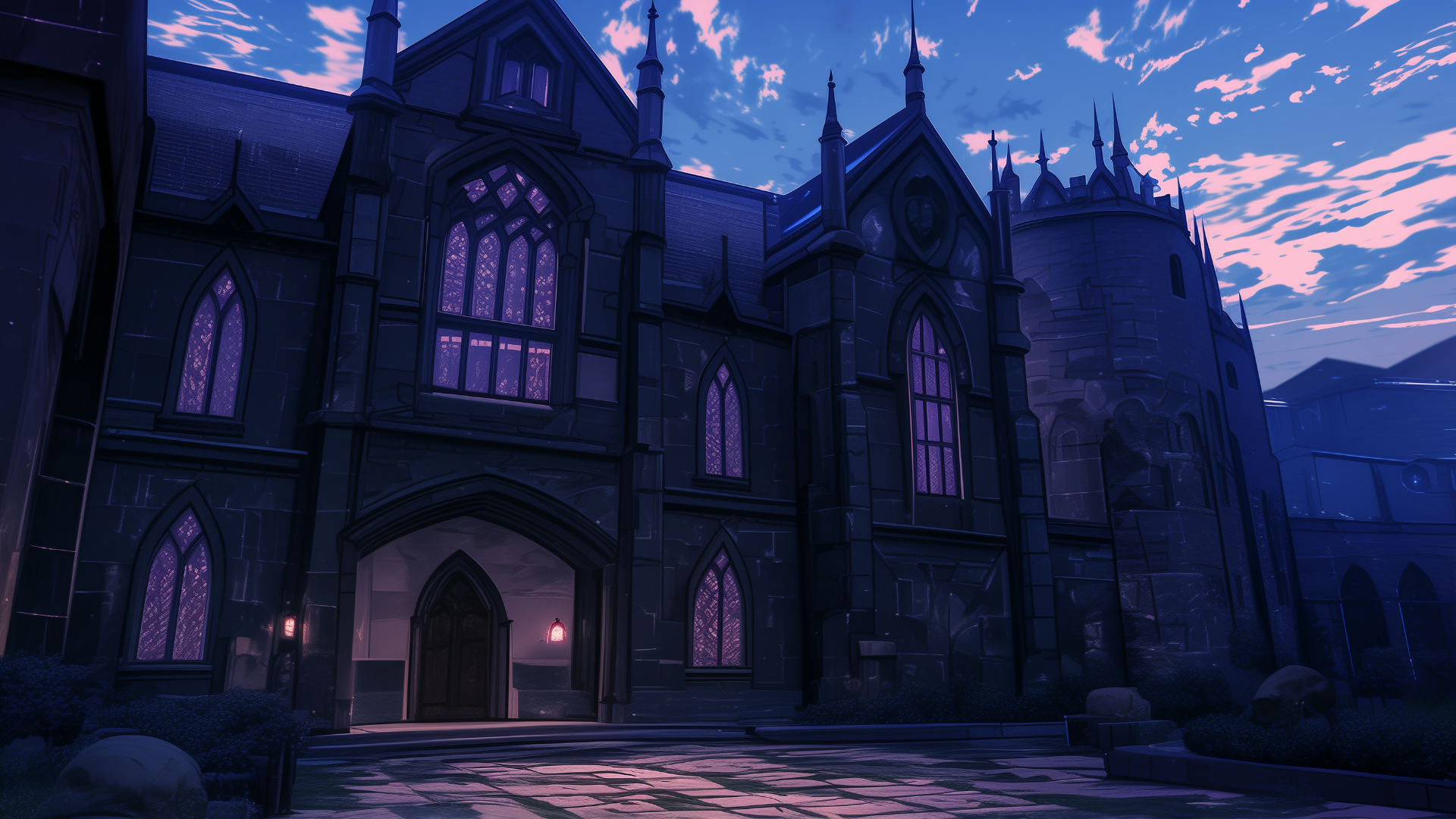 魔法学校の寮(闇属性・夜)、外観のフリー背景素材です。 当サイトの背景素材はAIで生成したイラストです。 まとめてダウンロードしたい方は↓のボタンからどうぞ! 一括…