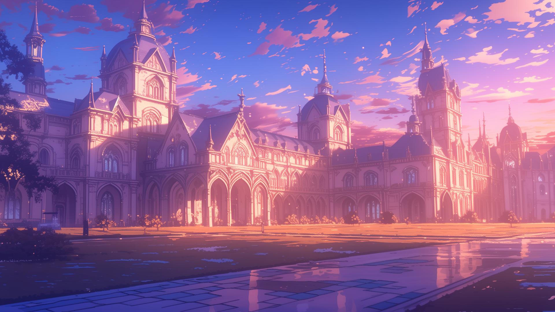 魔法学校の寮(氷属性・夜)、外観のフリー背景素材です。 当サイトの背景素材はAIで生成したイラストです。 まとめてダウンロードしたい方は↓のボタンからどうぞ! 一括…