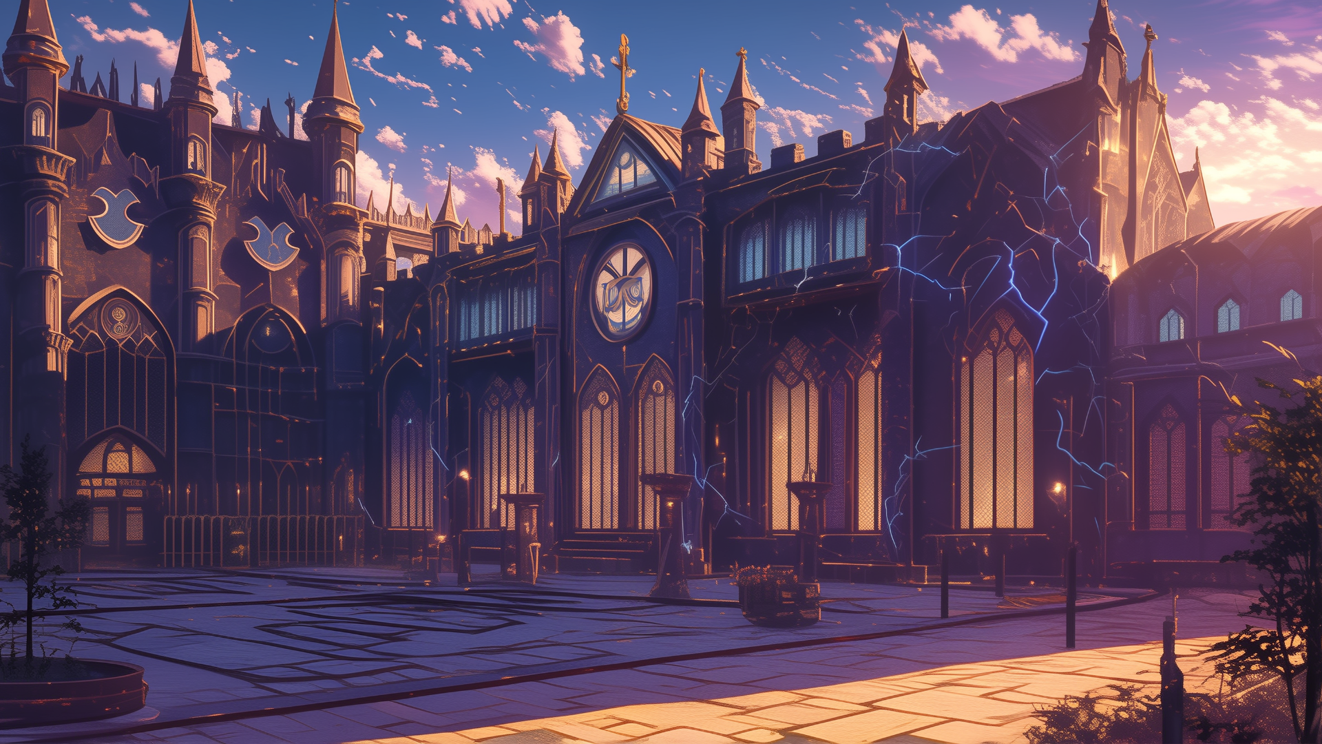 魔法学校の寮(雷属性・夜)、外観のフリー背景素材です。 当サイトの背景素材はAIで生成したイラストです。 まとめてダウンロードしたい方は↓のボタンからどうぞ! 一括…