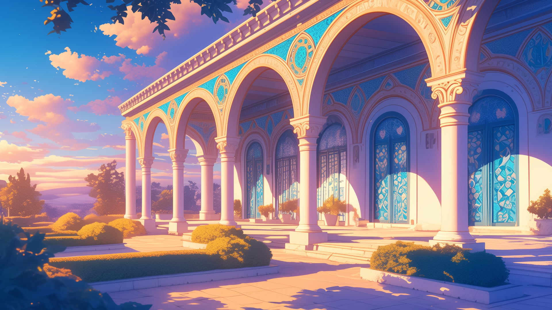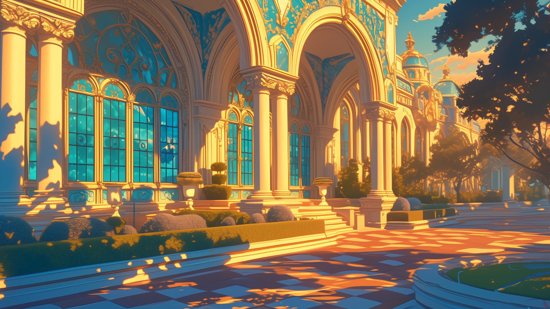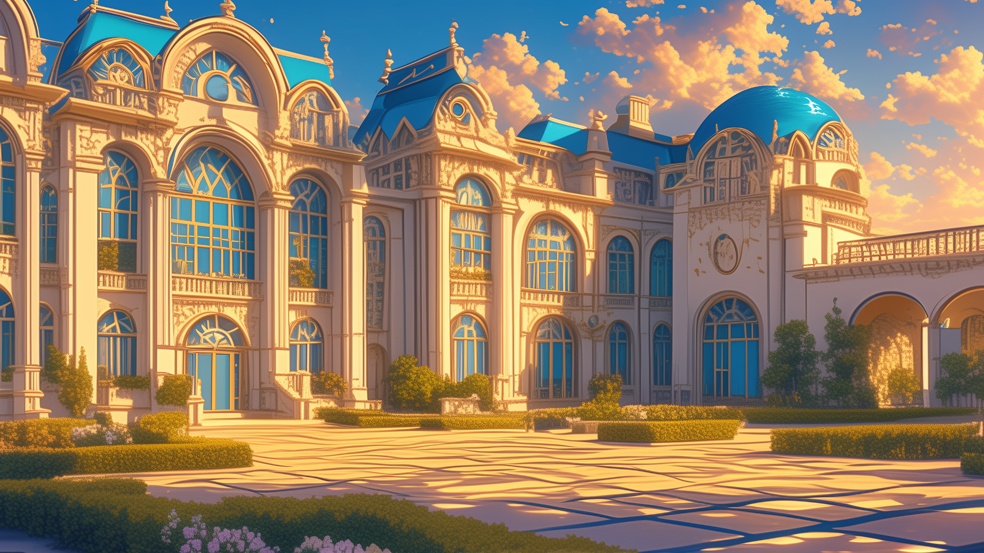 魔法学校の寮(水属性・昼)、外観のフリー背景素材です。 当サイトの背景素材はAIで生成したイラストです。 まとめてダウンロードしたい方は↓のボタンからどうぞ! 一括…