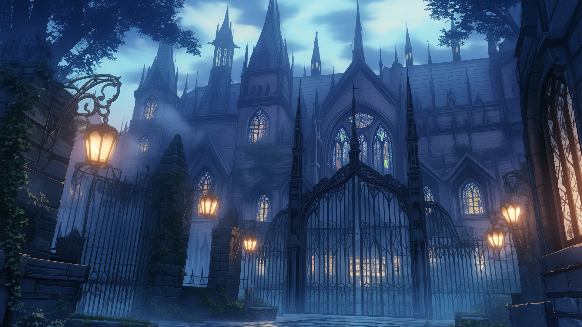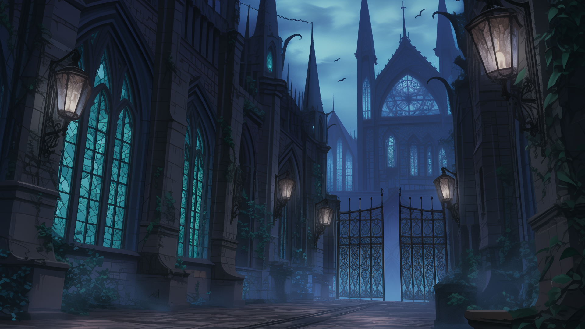 ゴシックな雰囲気の魔法学校のフリー背景素材です。
