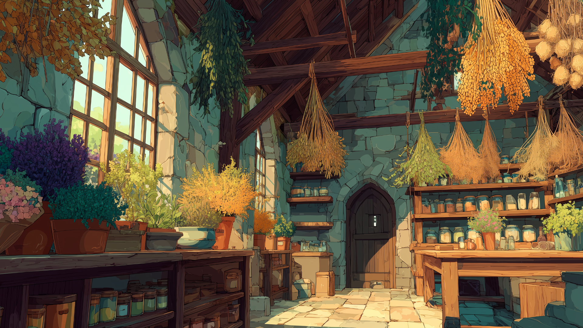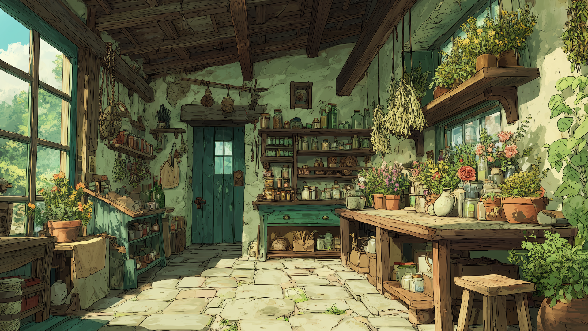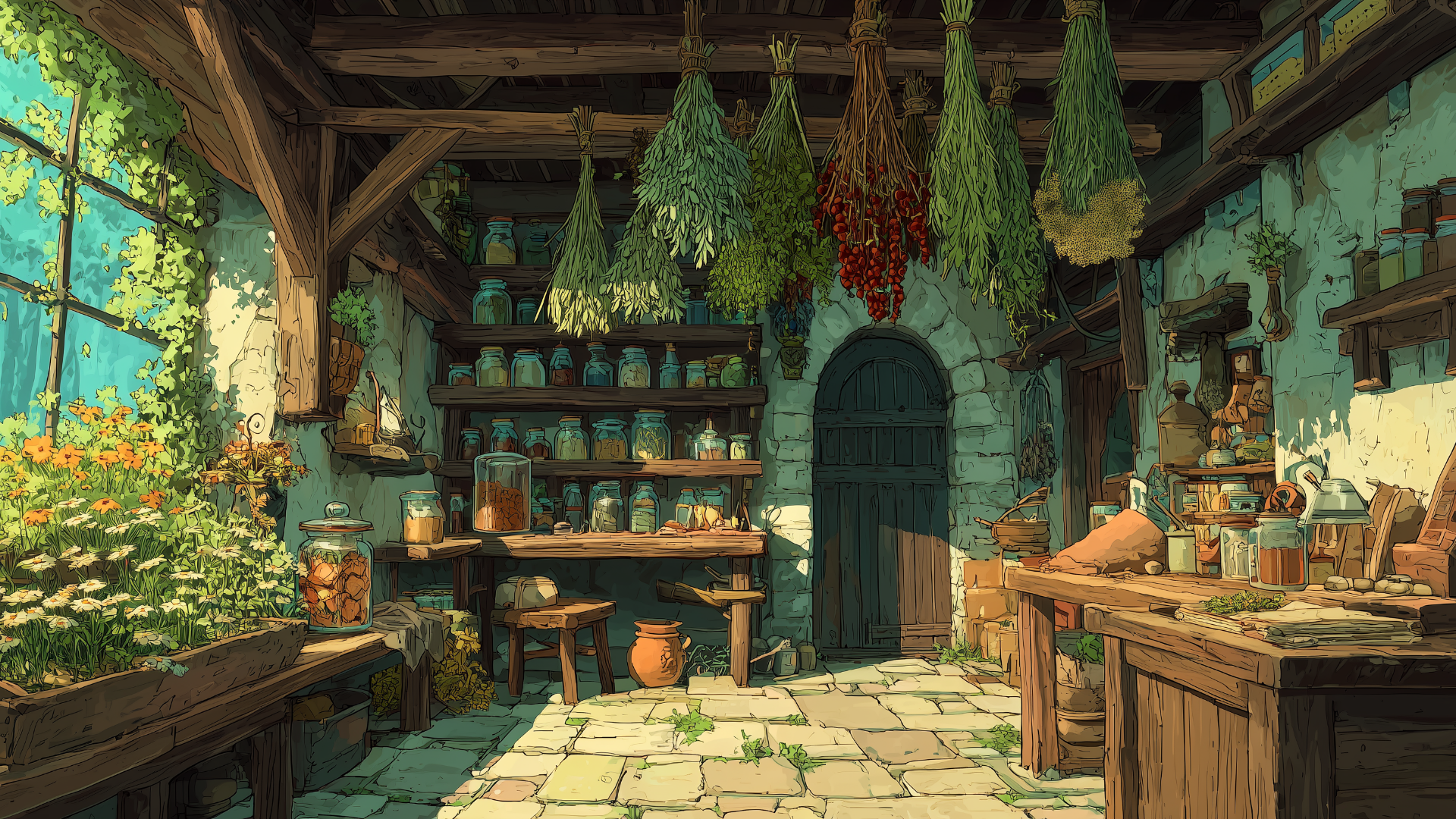 薬屋┃薬草が並ぶ調合部屋(7枚)
