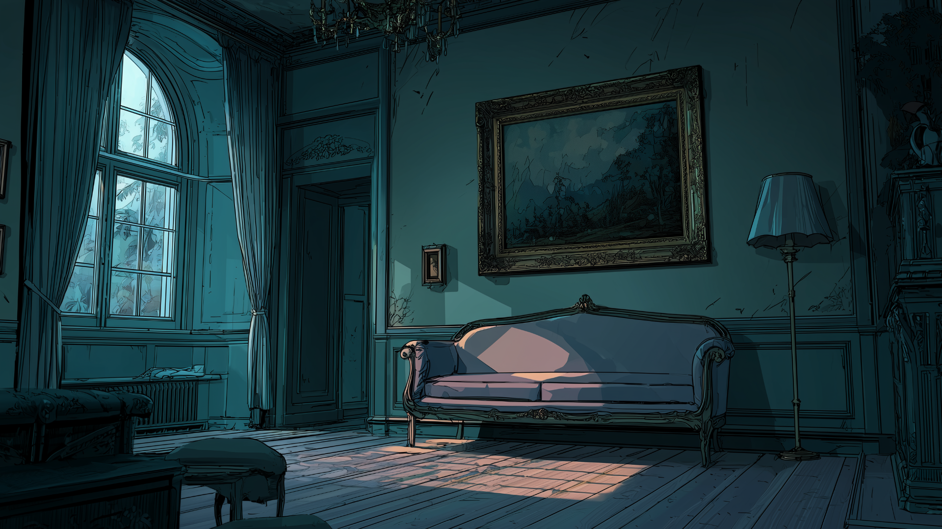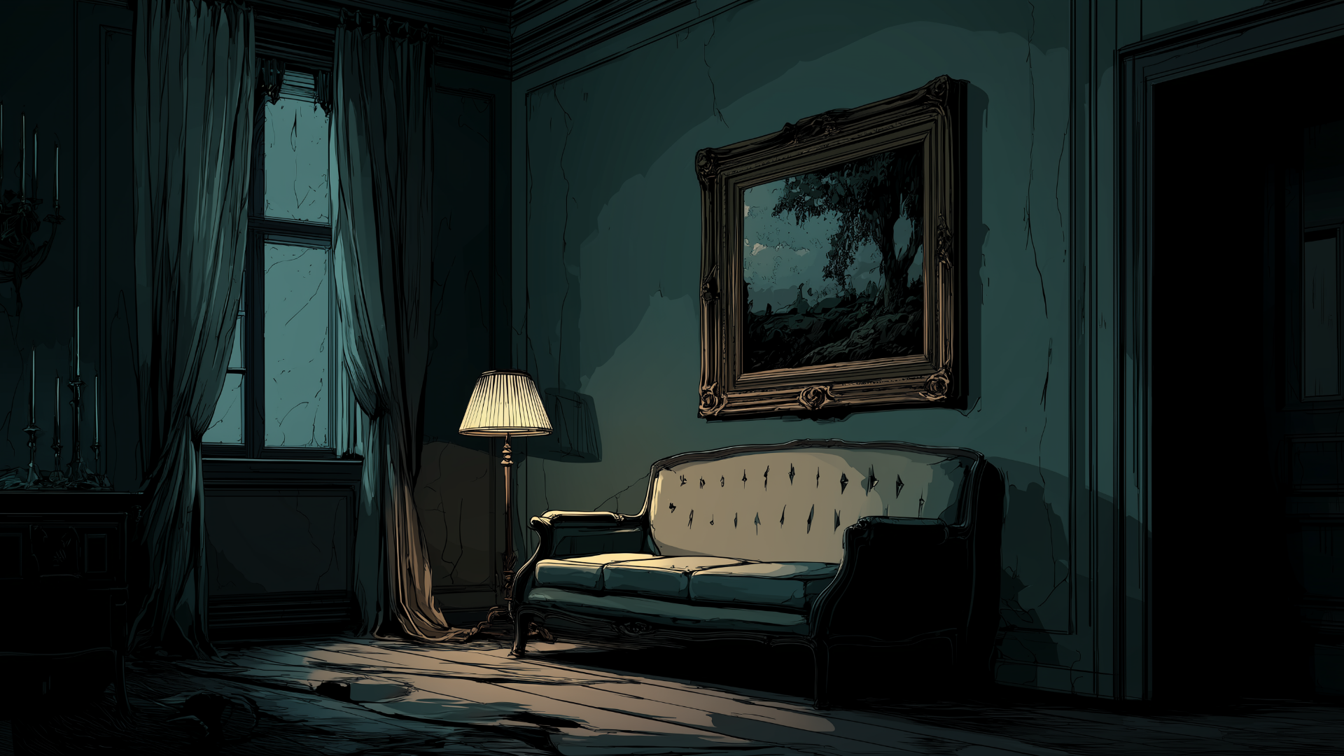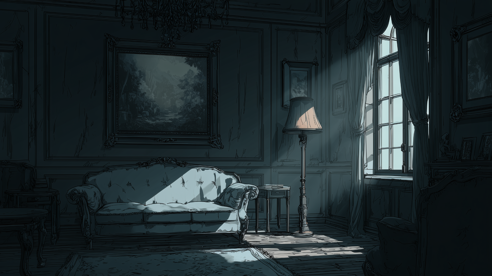 洋館, ソファ, 部屋, 古い, 絵画, 暗い, 不気味