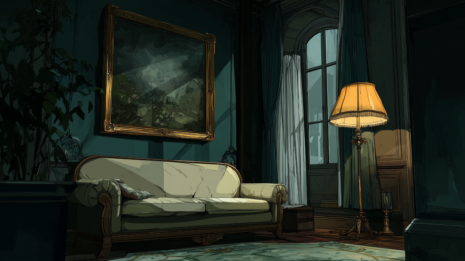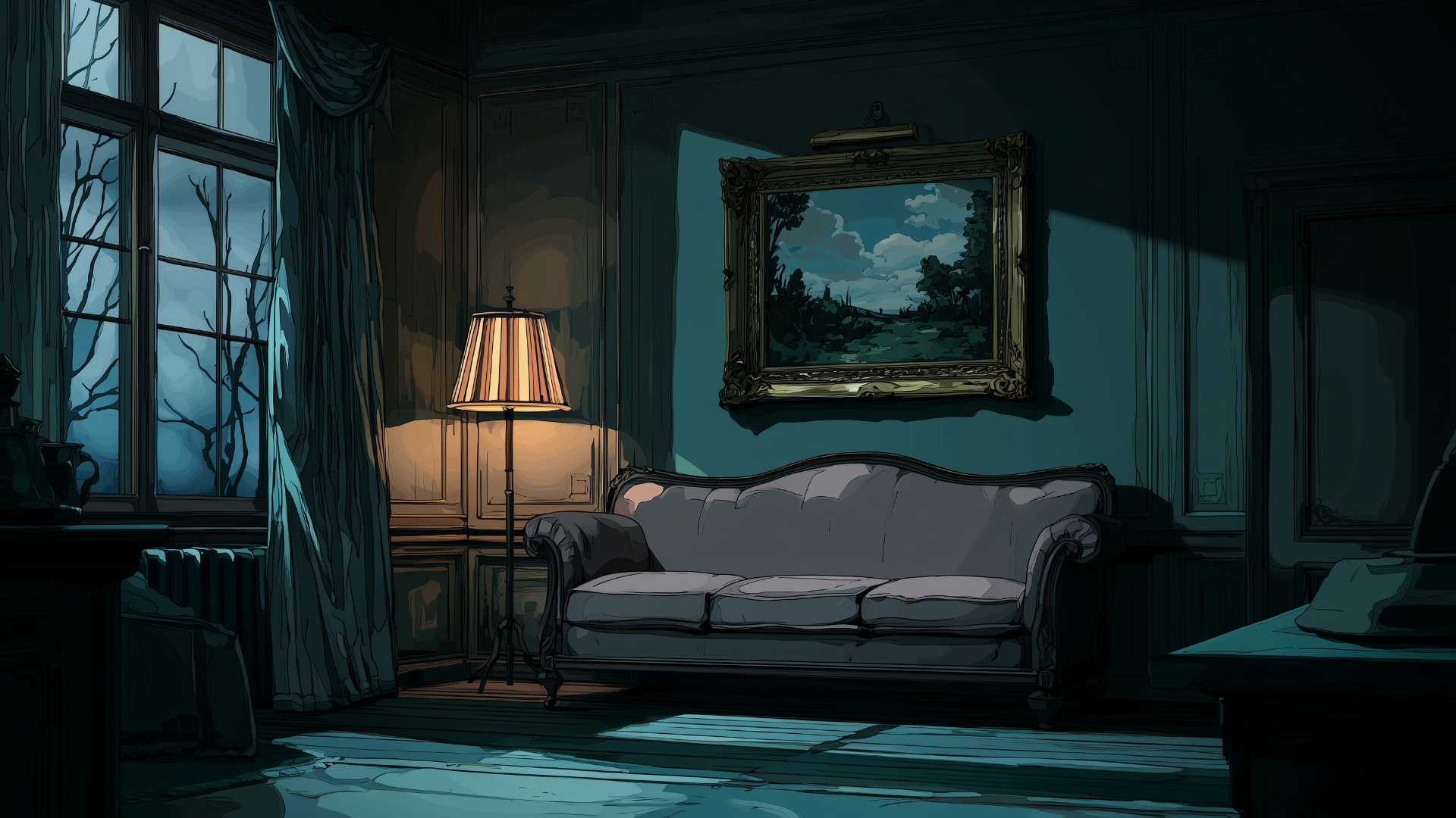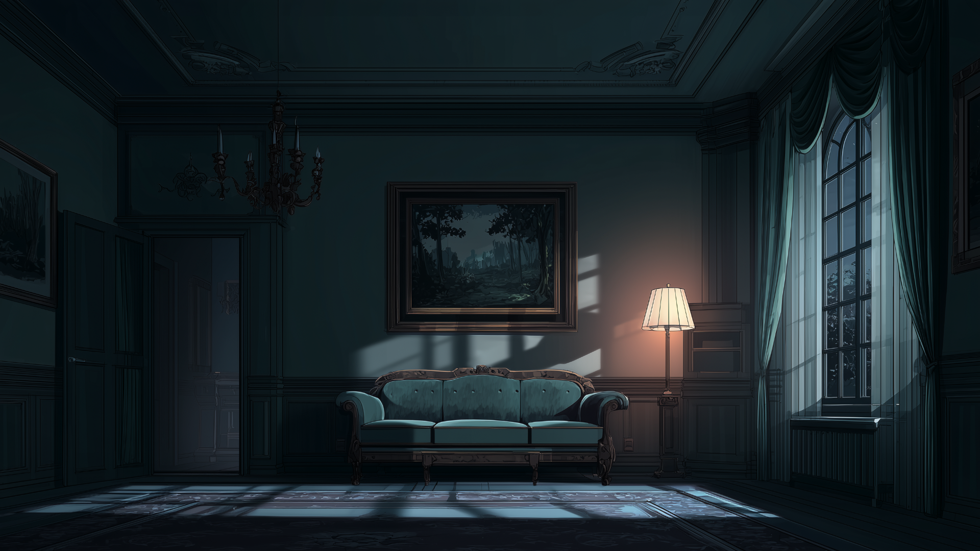 洋館, ソファ, 部屋, 古い, 絵画, 暗い, 不気味