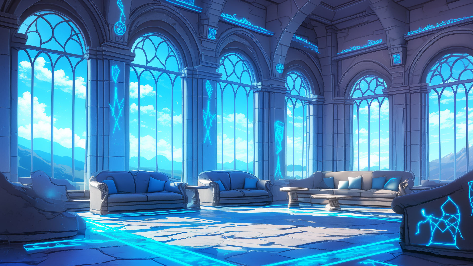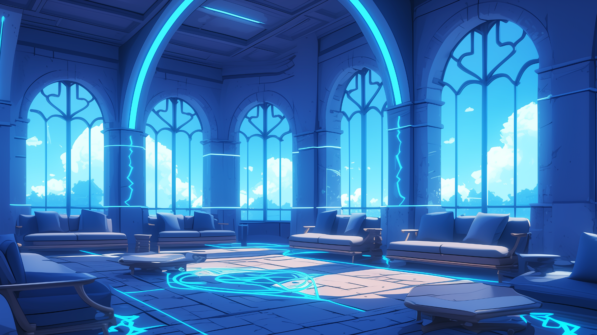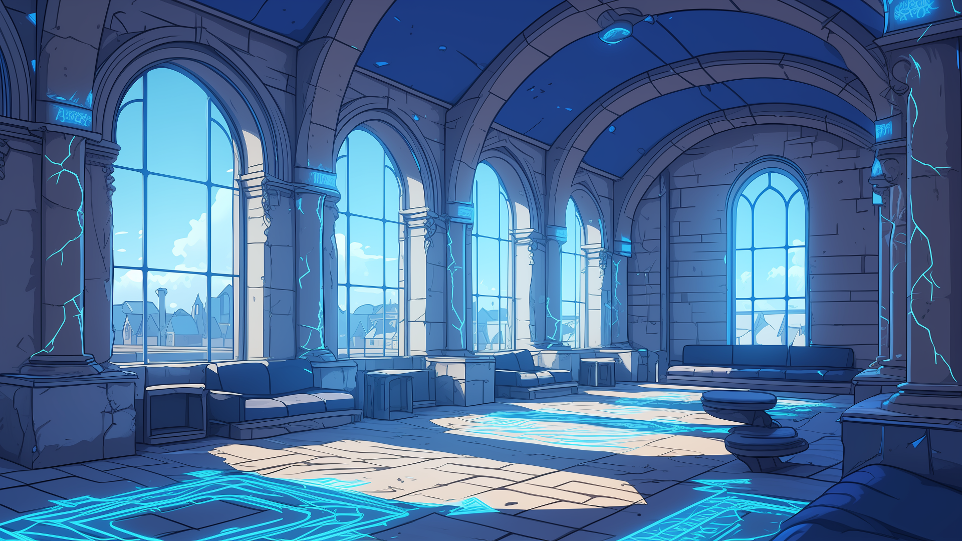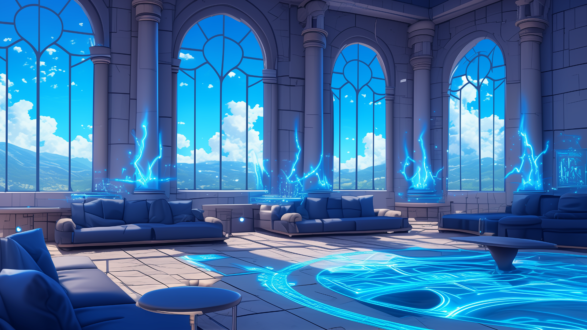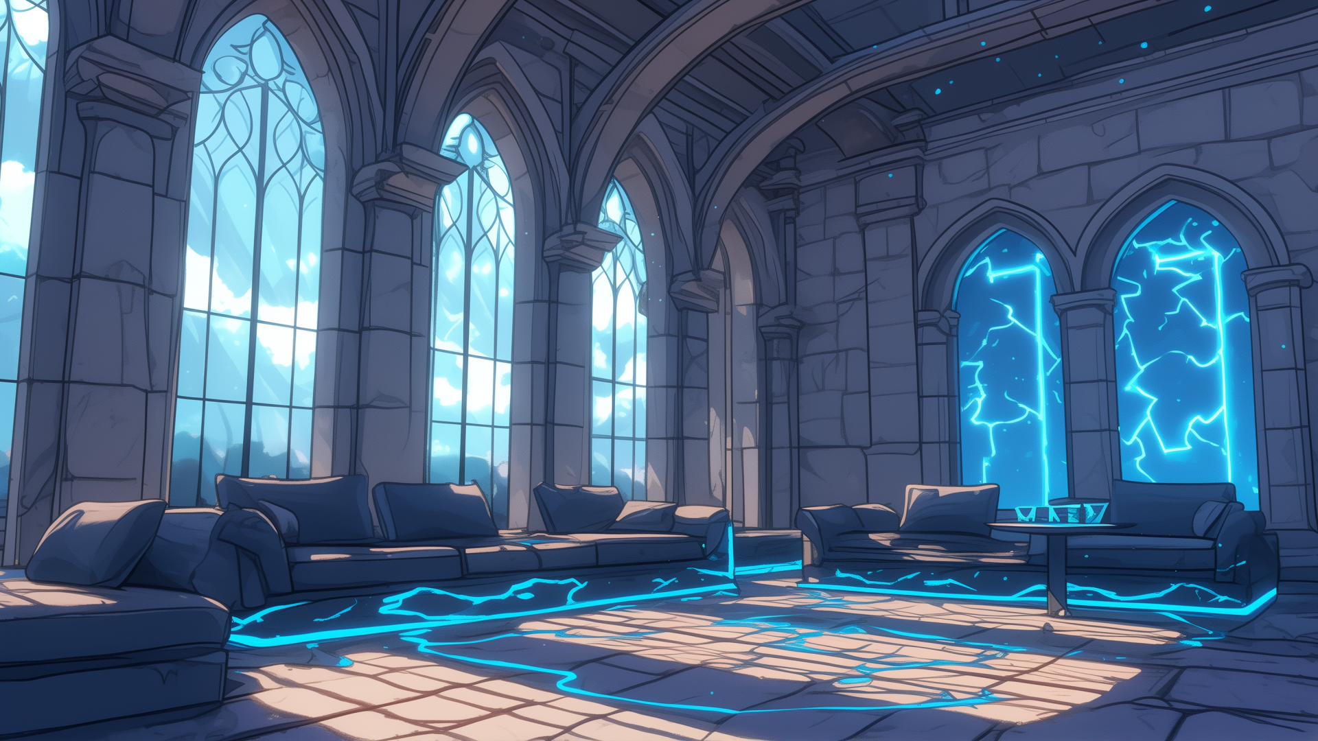 magic-school, dormitory, lightning-element, lounge, daytime
