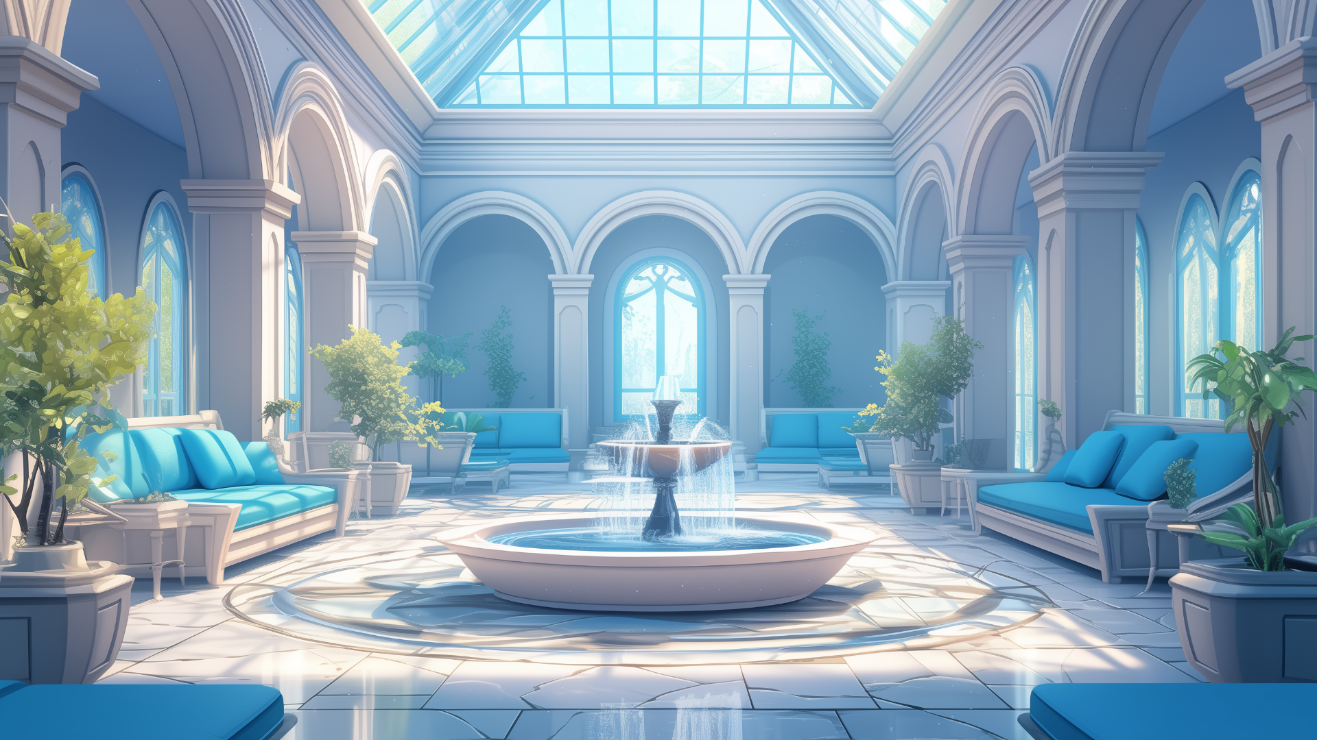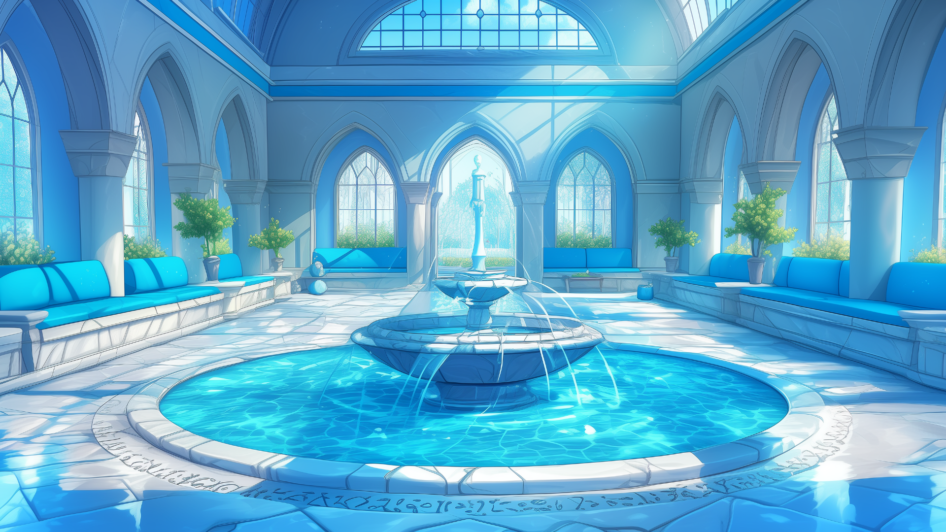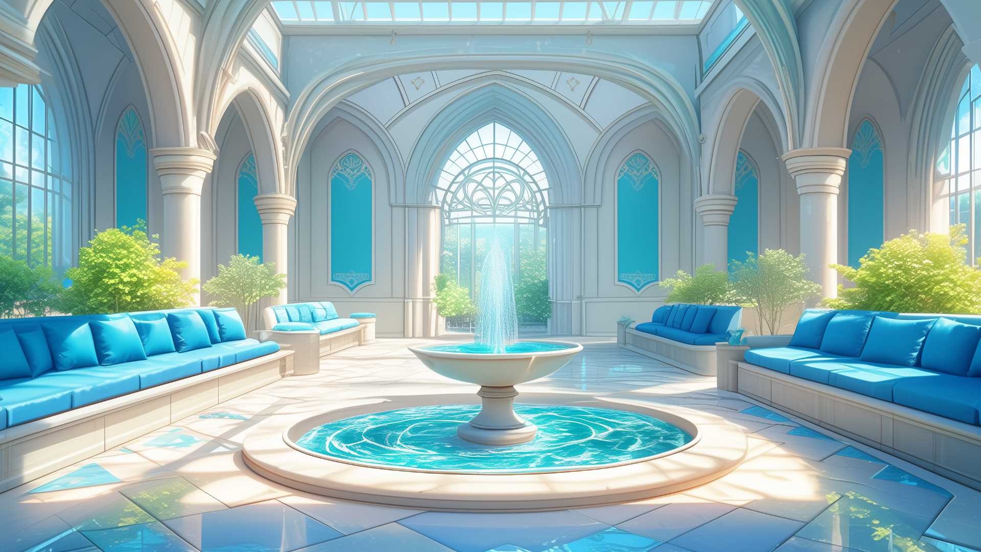 magic-school, dormitory, water-element, lounge, daytime