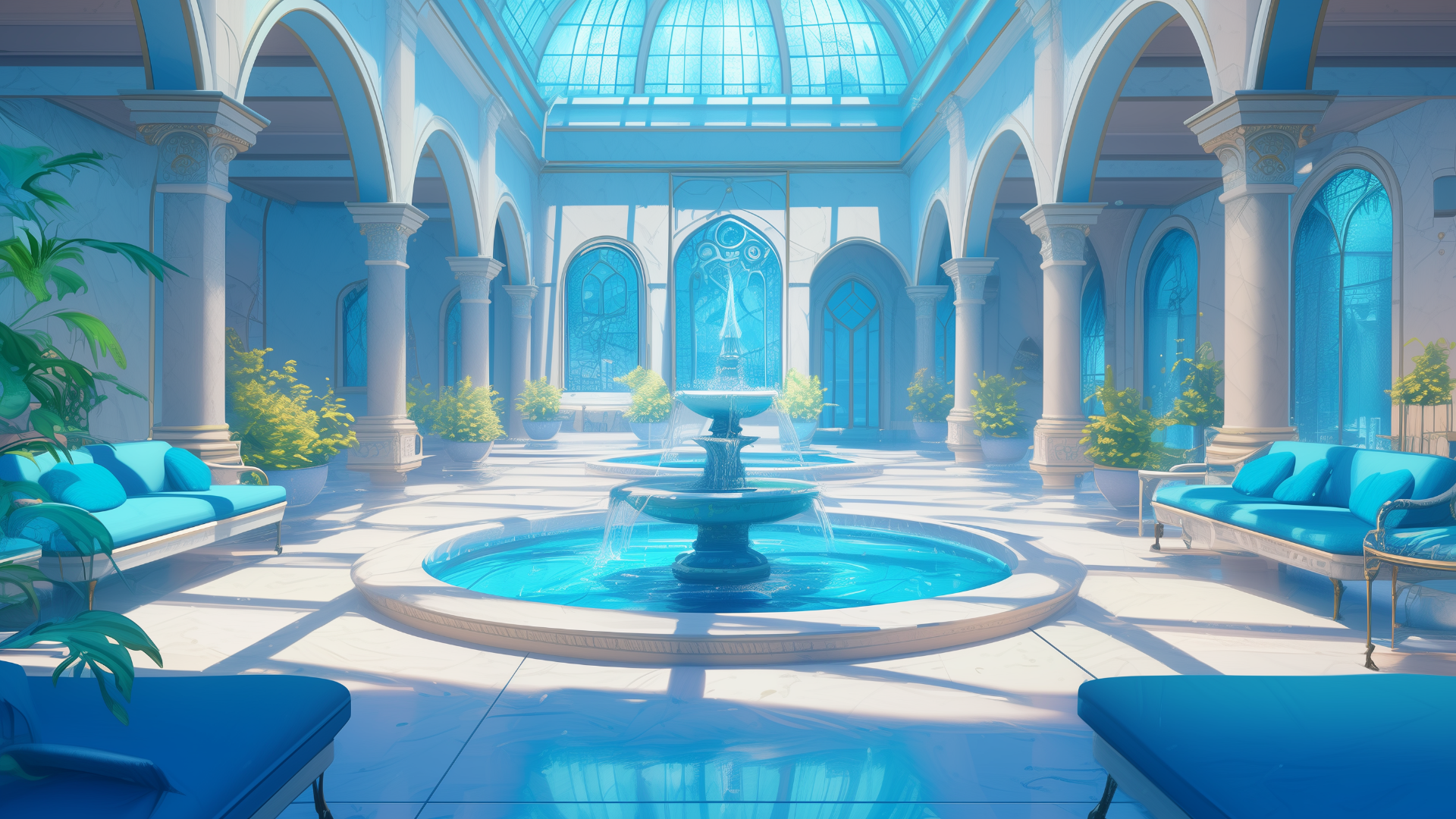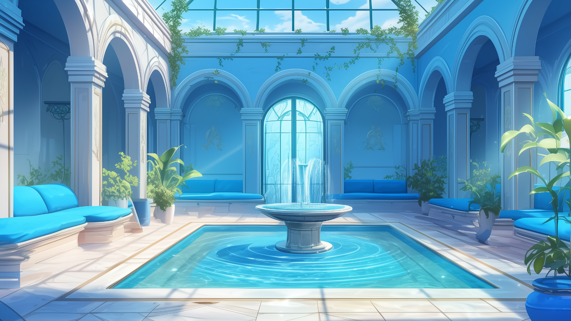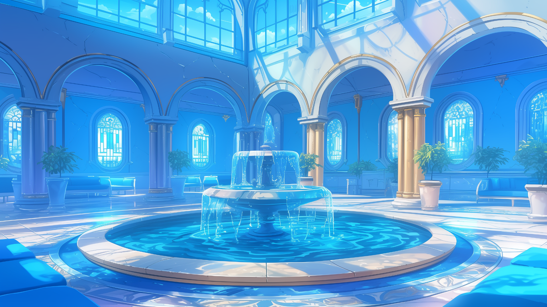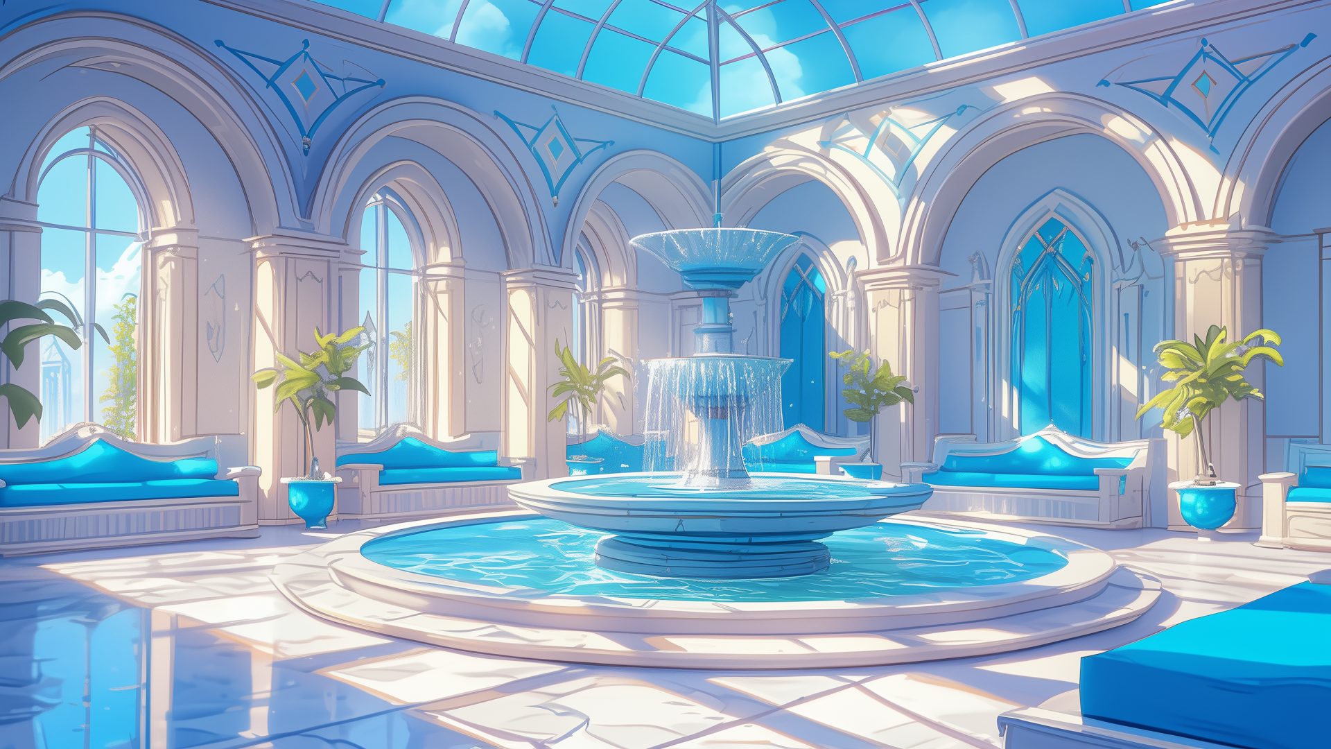 magic-school, dormitory, water-element, lounge, daytime