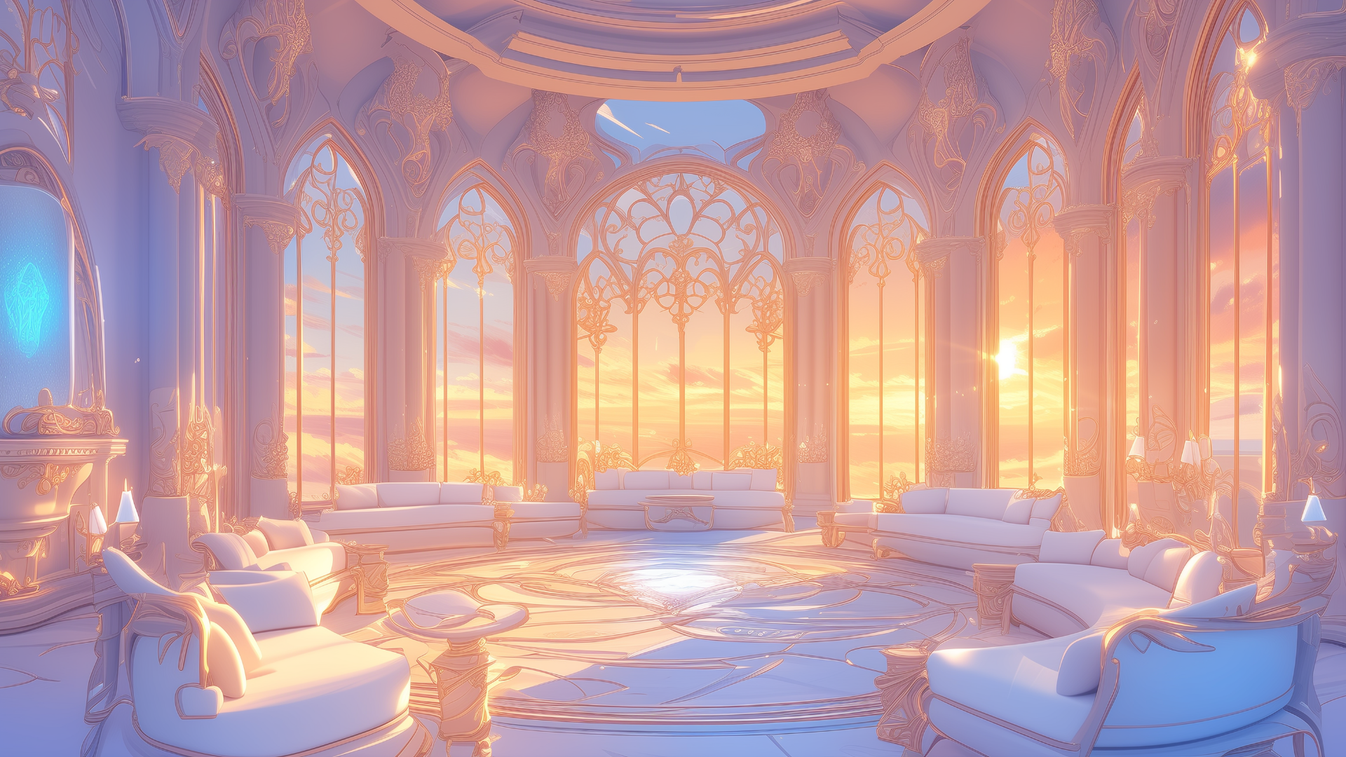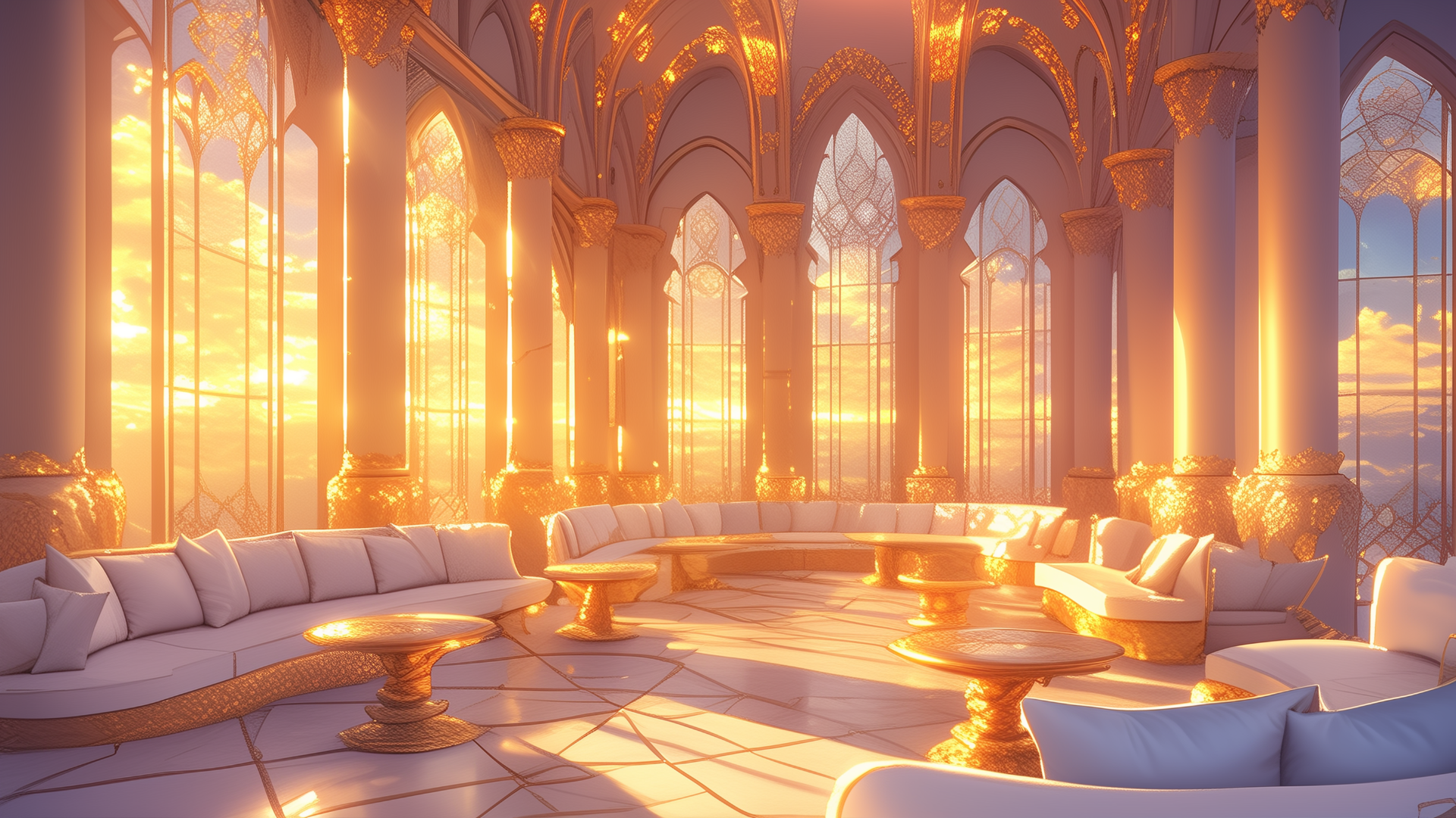 魔法学校, 寮, 光属性, ラウンジ, 夕方