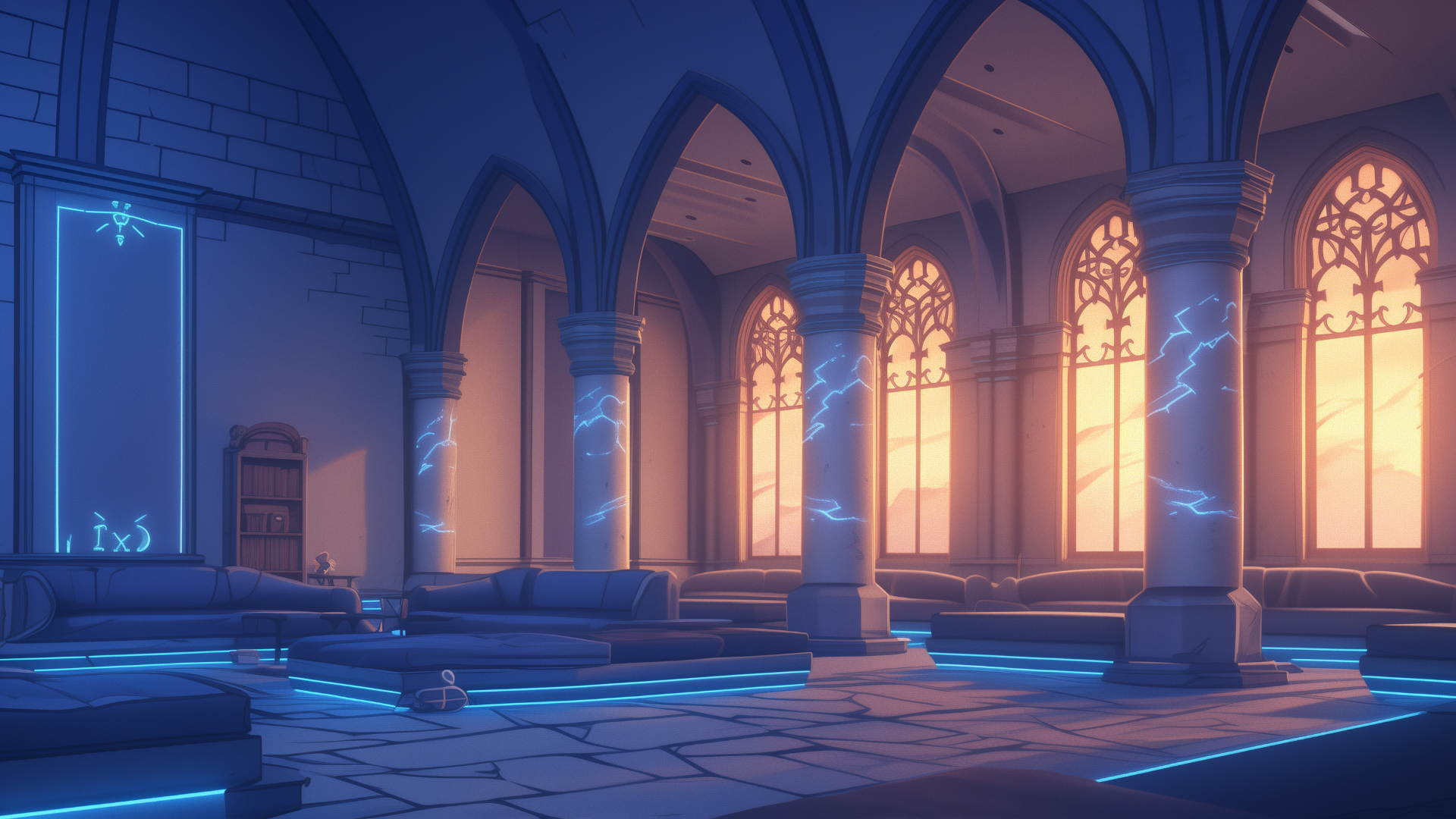 魔法学校, 寮, 雷属性, ラウンジ, 夕方