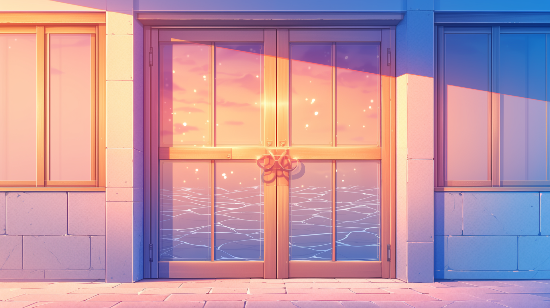 魔法学校の寮(水属性・昼)、扉のフリー背景素材です。 当サイトの背景素材はAIで生成したイラストです。 まとめてダウンロードしたい方は↓のボタンからどうぞ! 一括ダ…