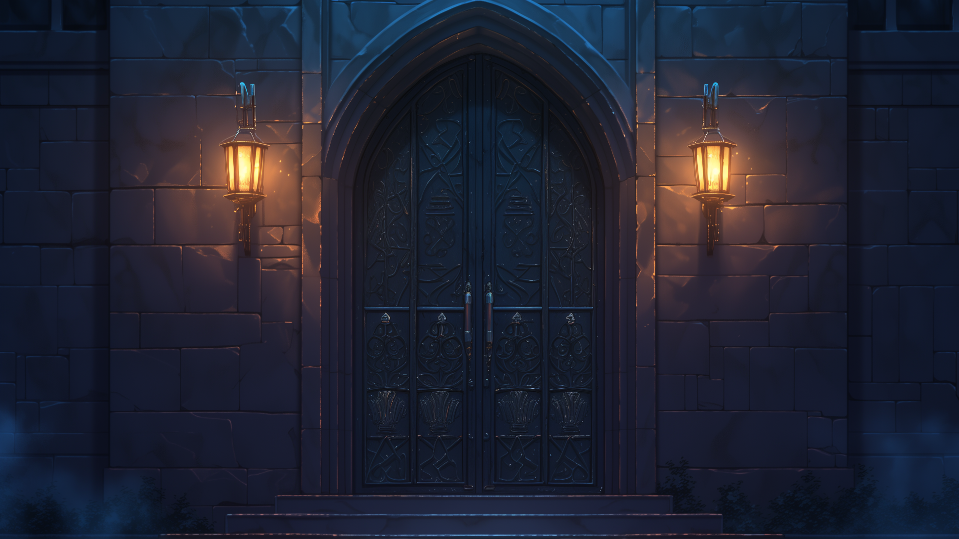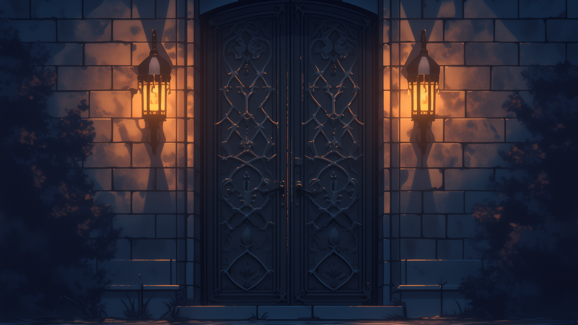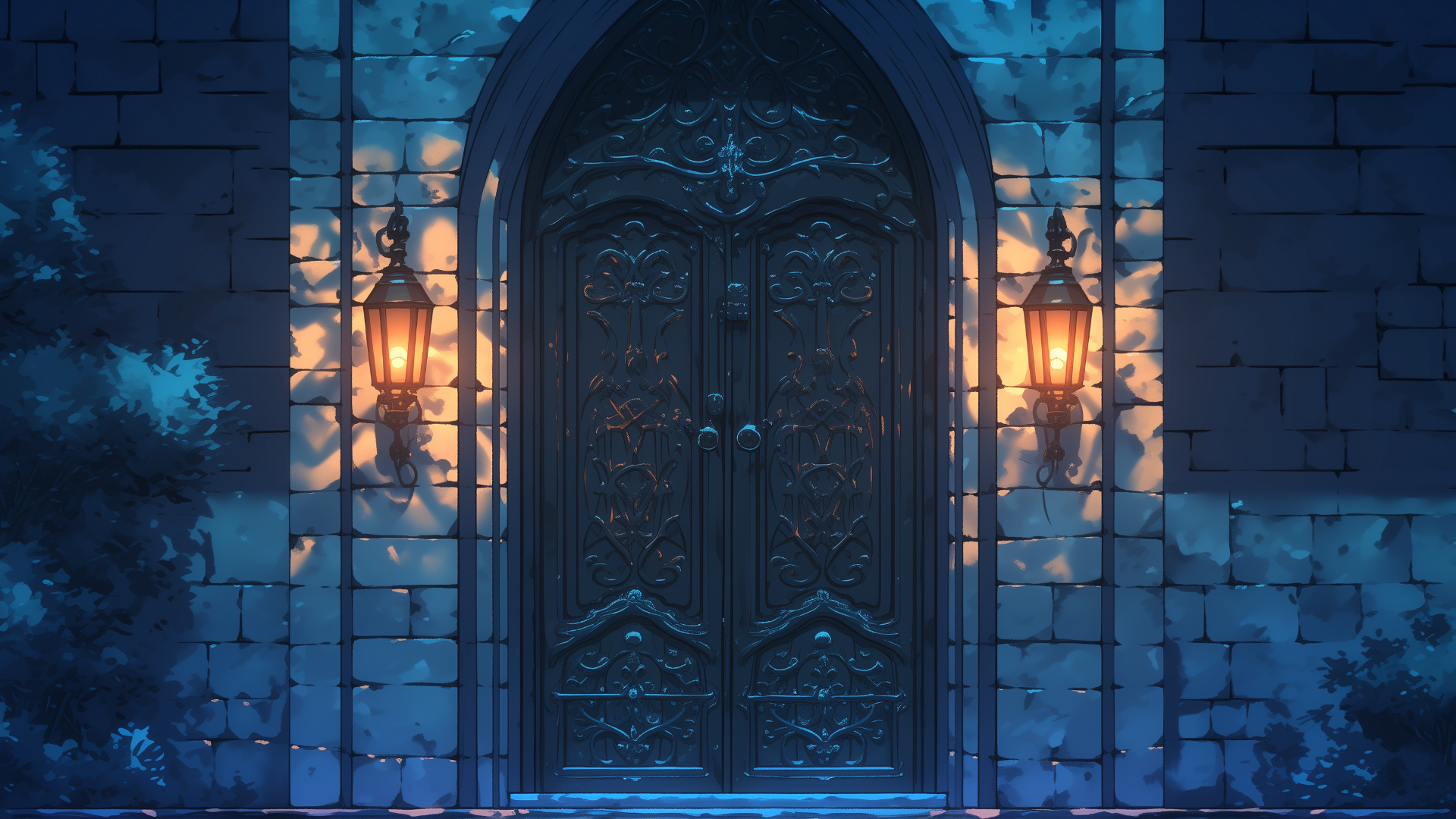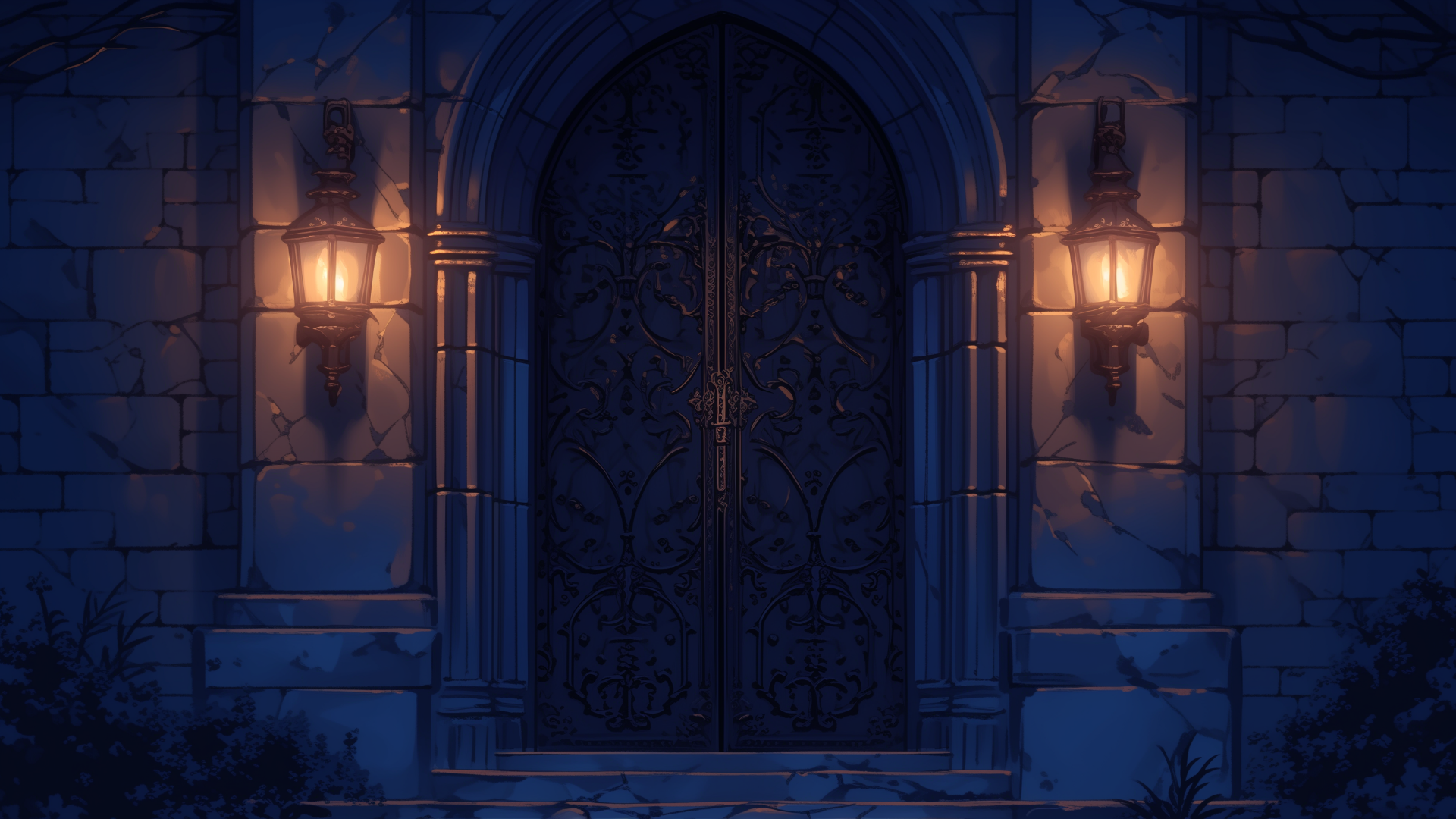 魔法学校の寮(闇属性・夜)、扉のフリー背景素材です。