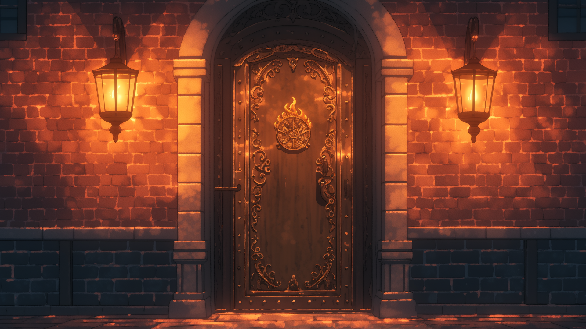 魔法学校の寮(炎属性・夜)、扉のフリー背景素材です。