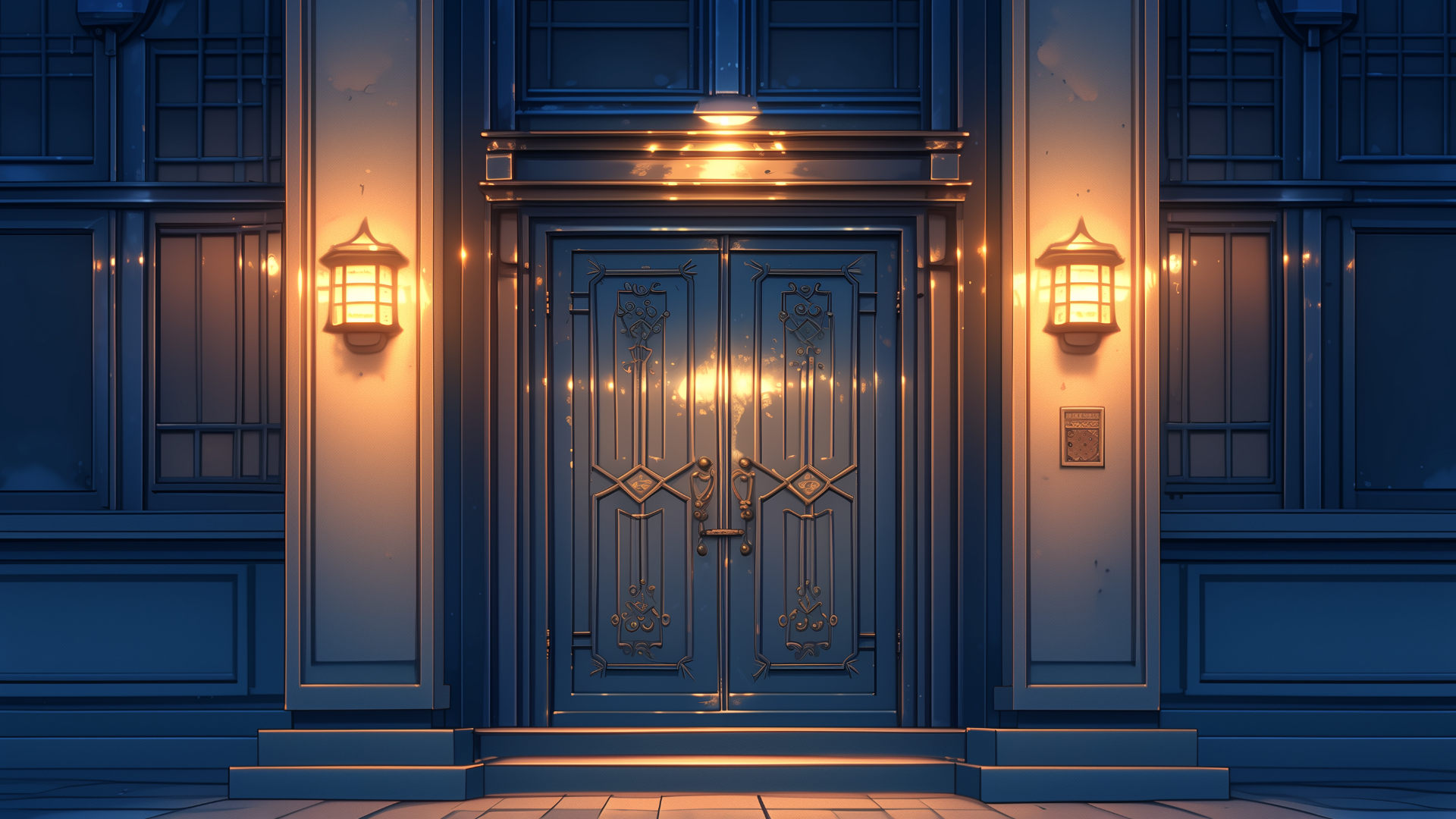 魔法学校の寮(雷属性・夜)、扉のフリー背景素材です。