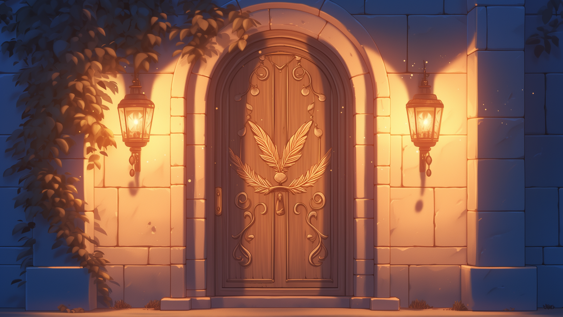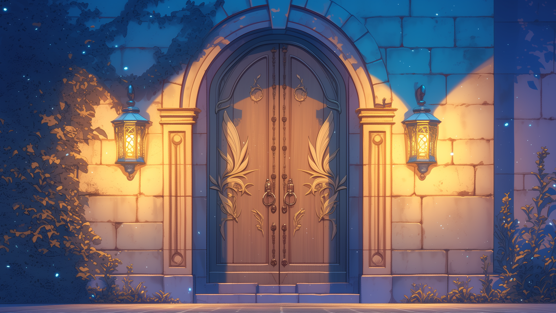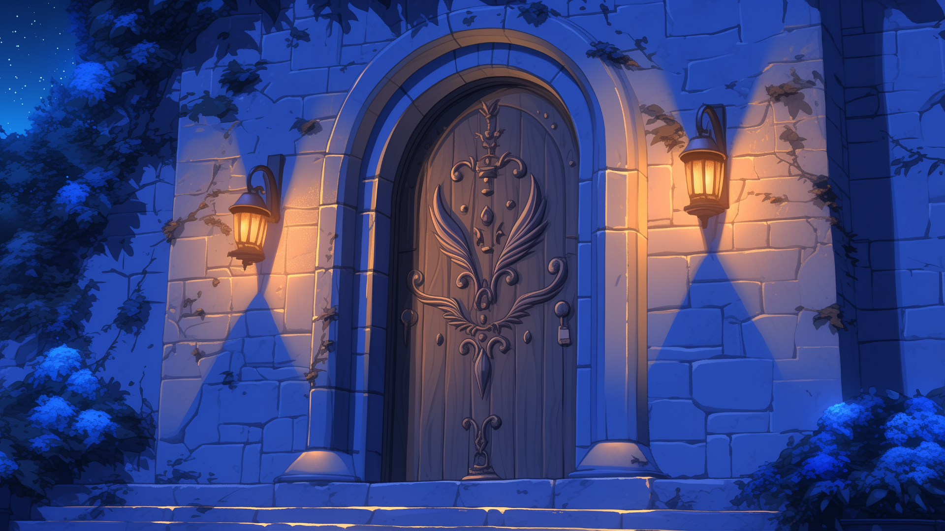 魔法学校の寮(風属性・夜)、扉のフリー背景素材です。