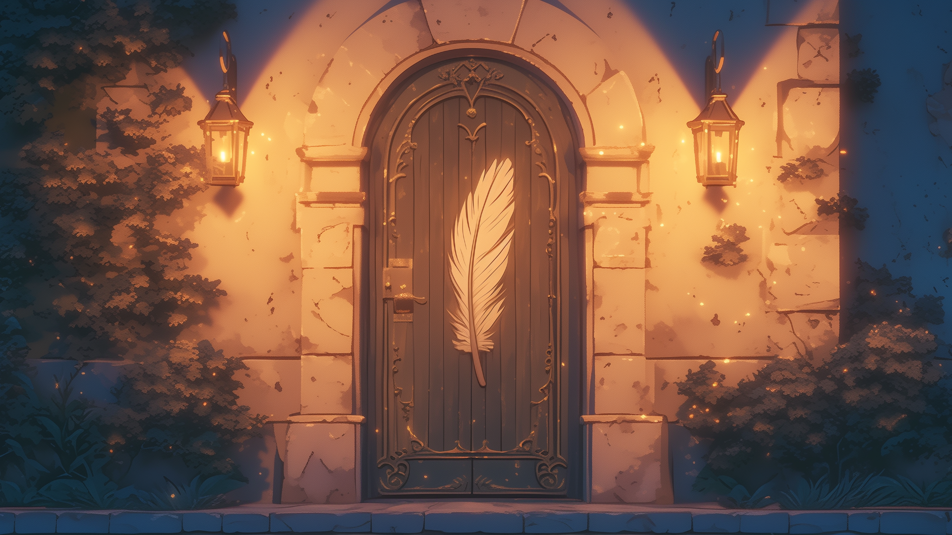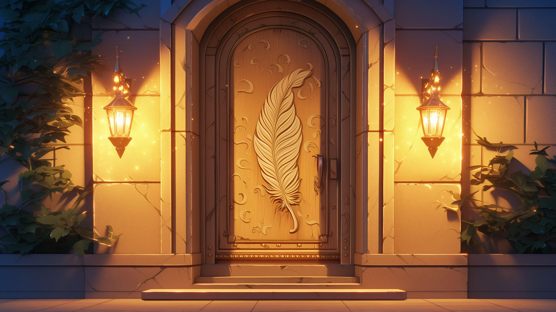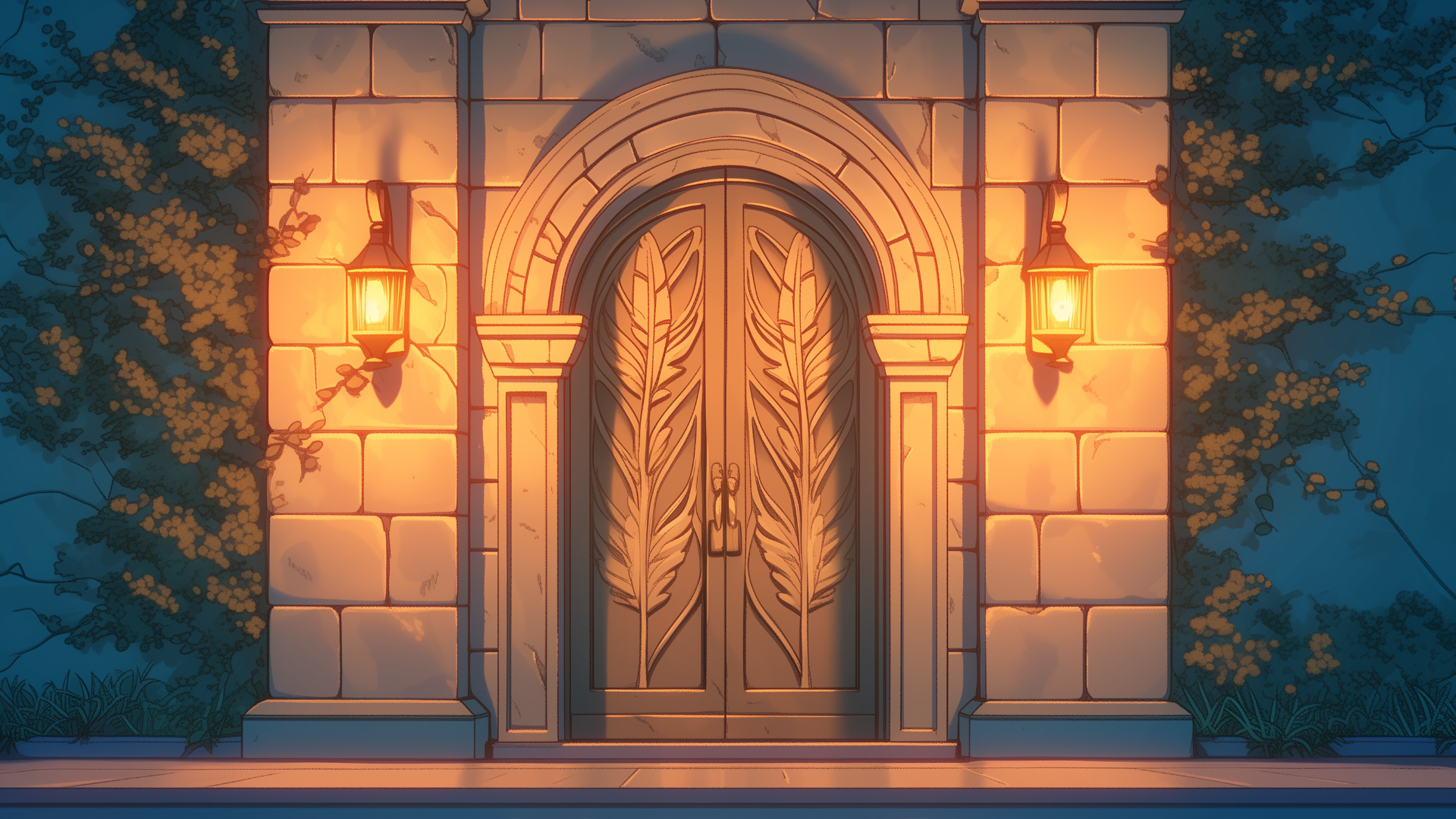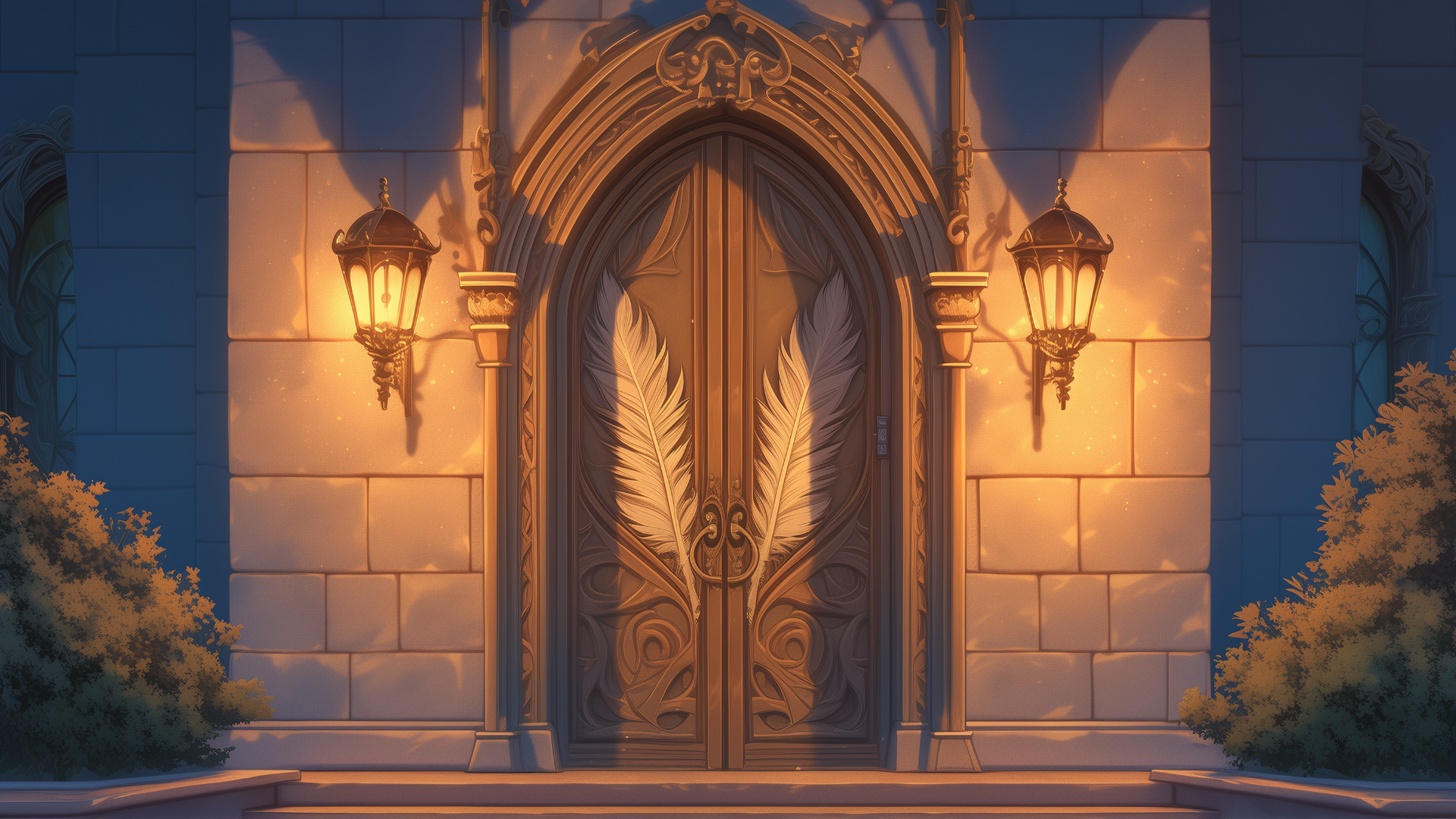 魔法学校の寮(風属性・夜)、扉のフリー背景素材です。