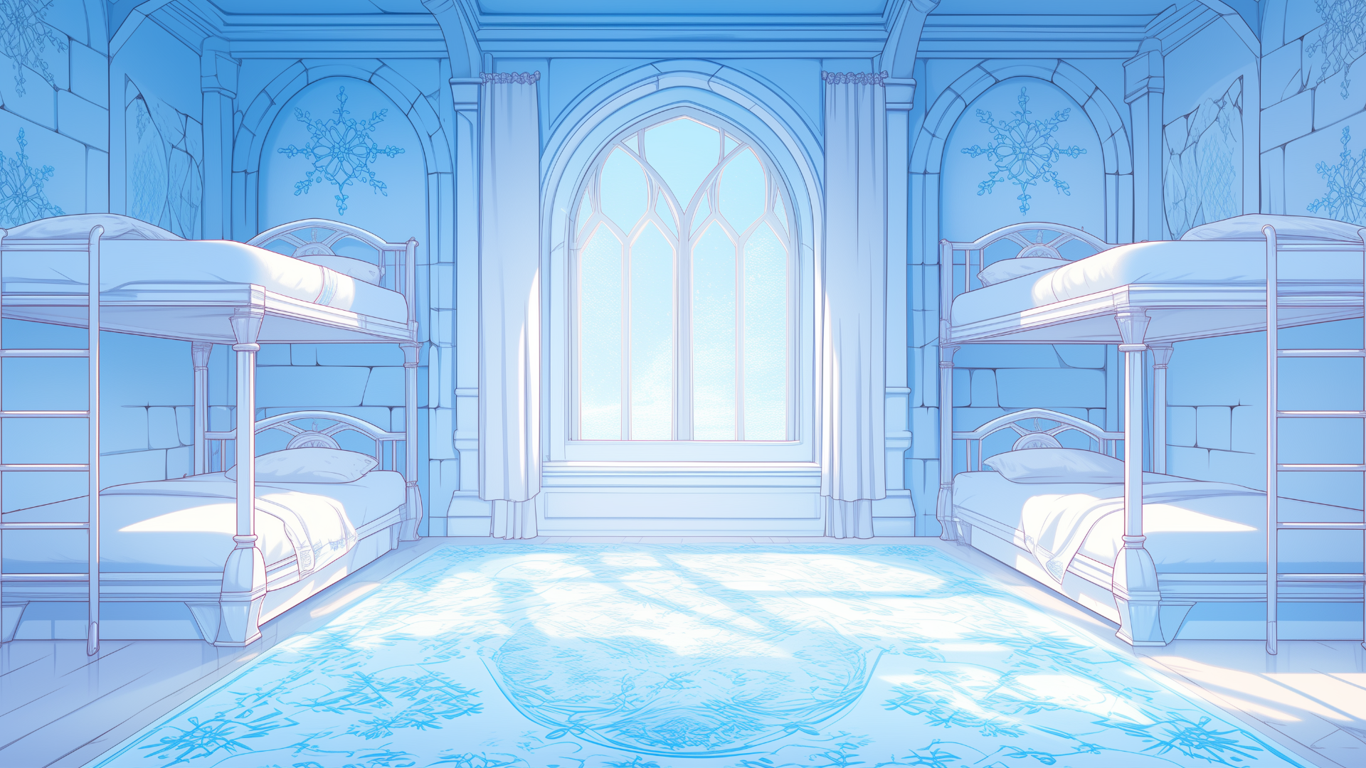 魔法学校の寮(氷属性・昼)、4人部屋のフリー背景素材です。