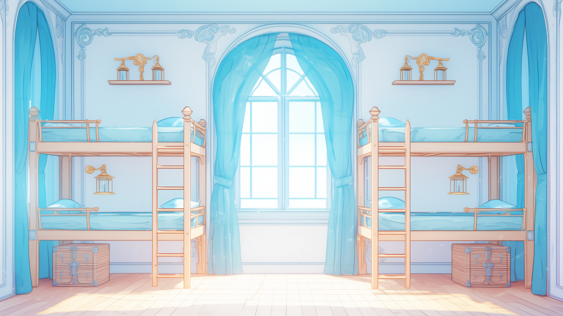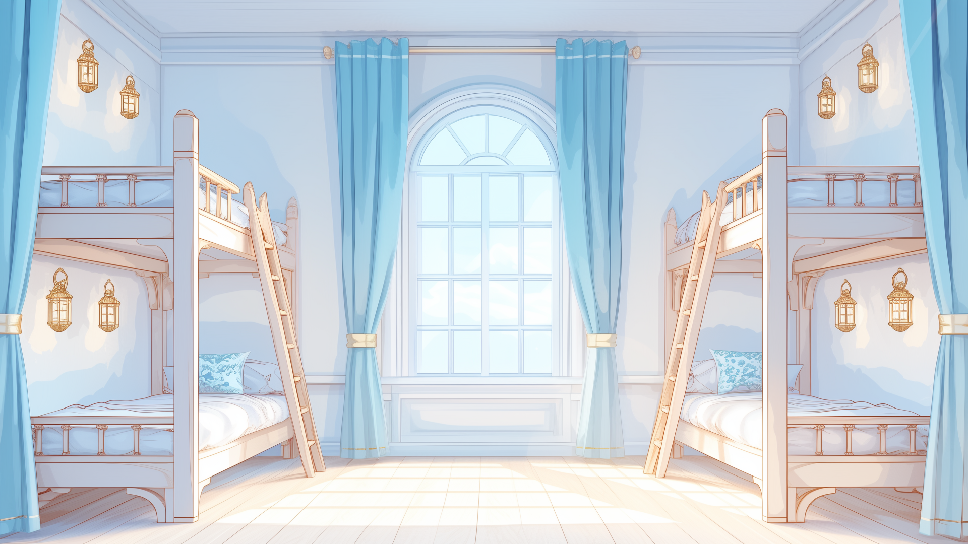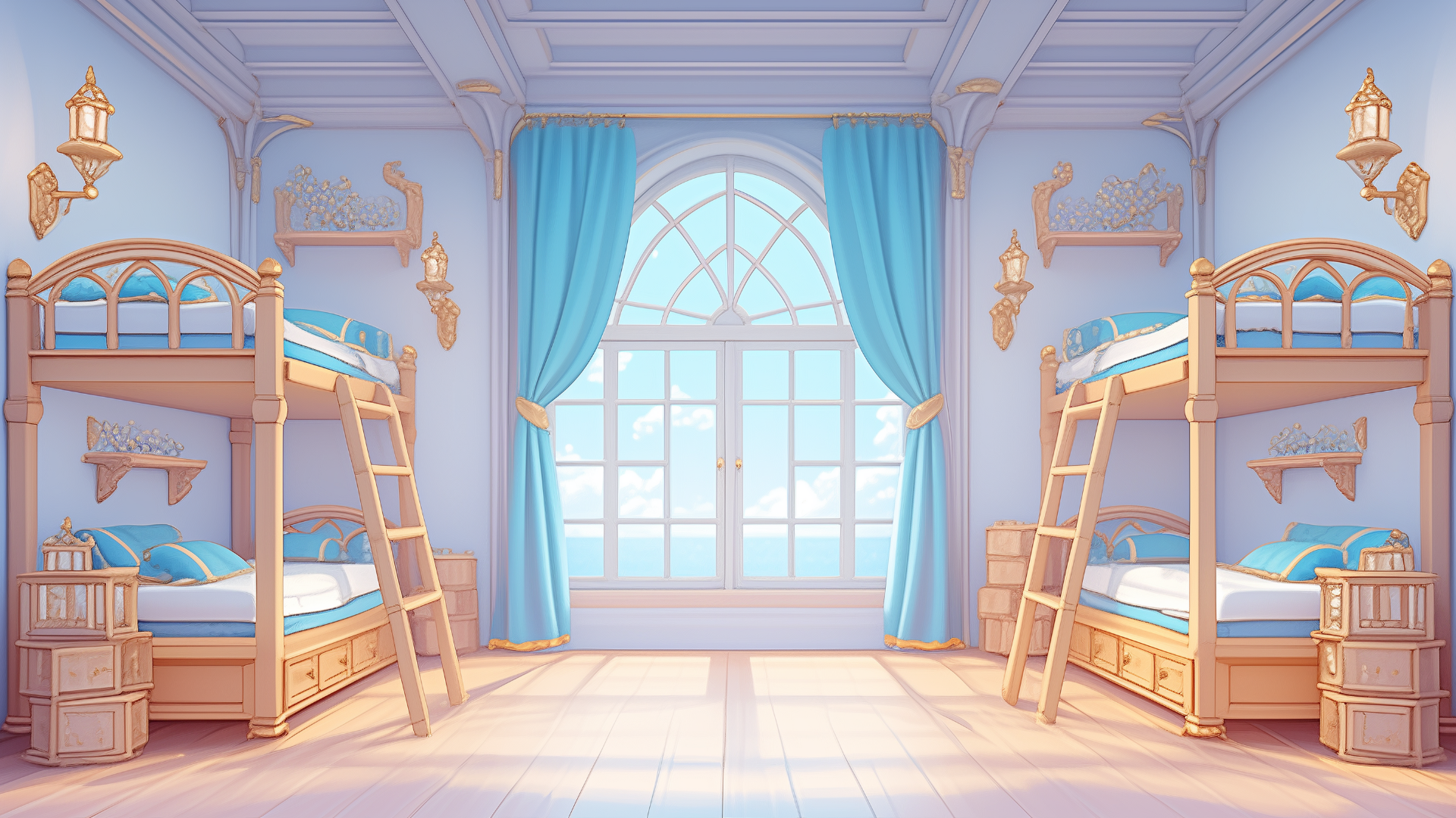 magic-school, dormitory, water-element, four-person-room, bedroom, daytime