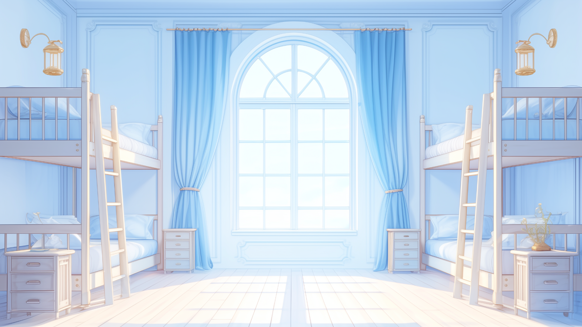 魔法学校の寮(水属性・昼)、4人部屋のフリー背景素材です。