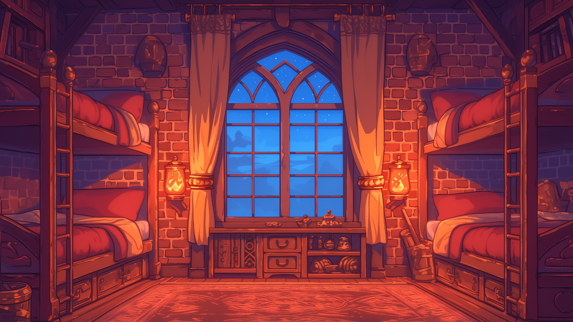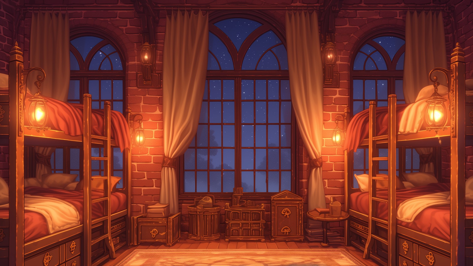 魔法学校の寮(炎属性・夜)、4人部屋のフリー背景素材です。