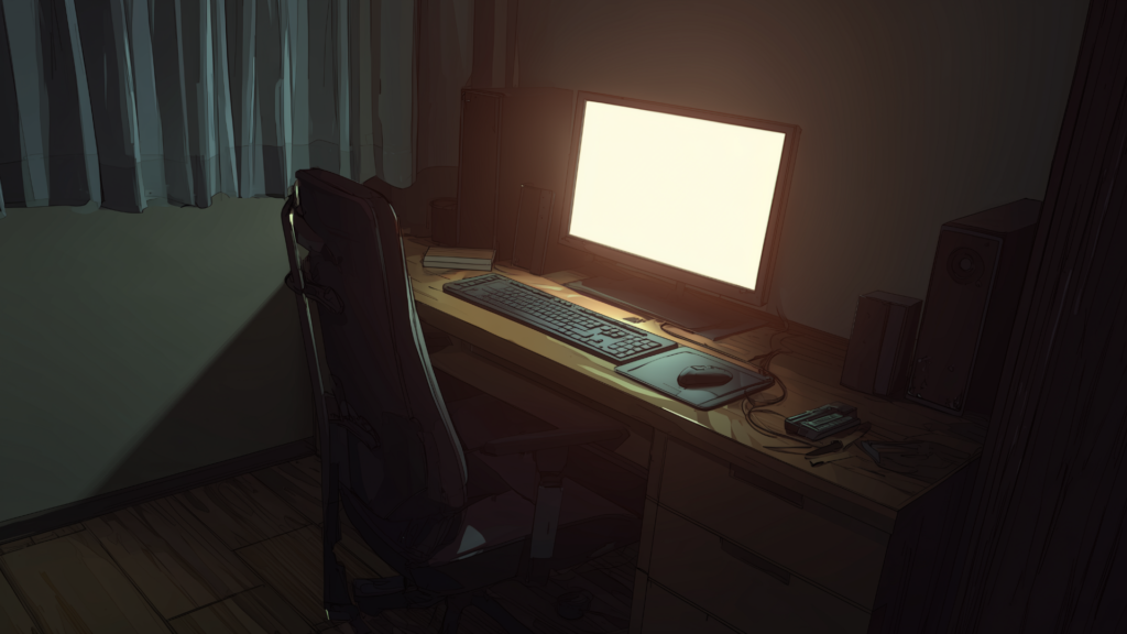 一人部屋┃暗闇の中で光るパソコン(7枚)