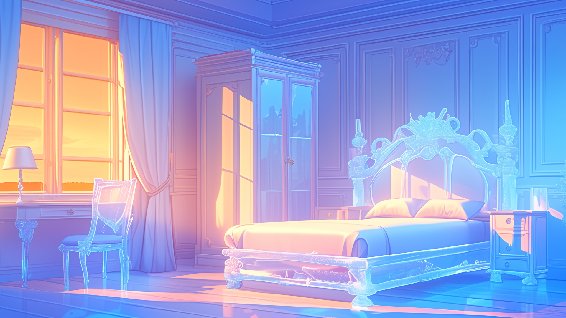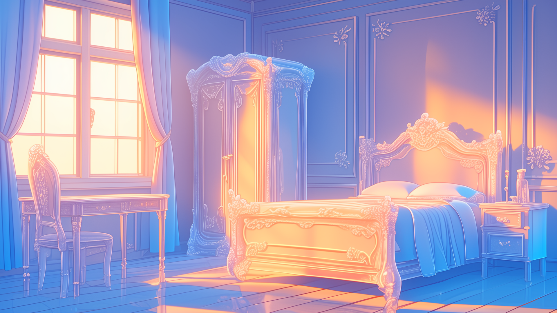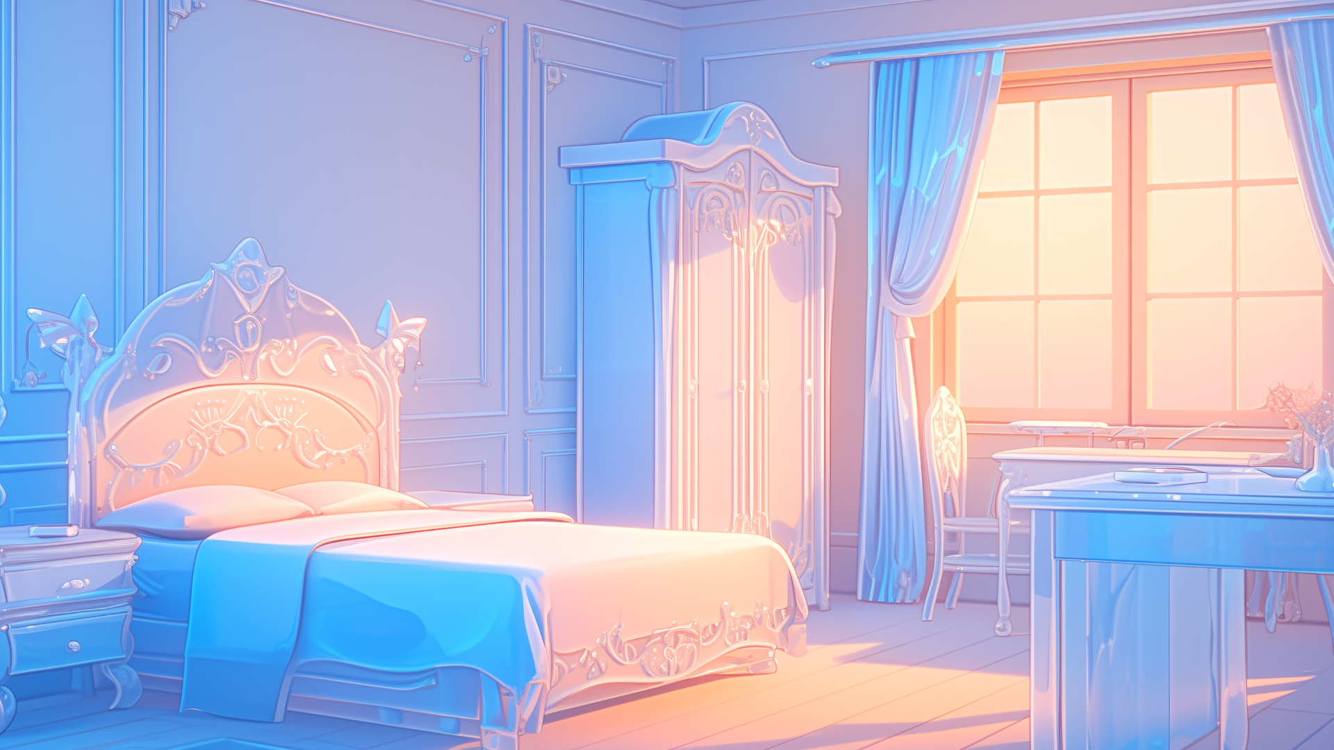 魔法学校の寮(氷属性・夕方)、1人部屋のフリー背景素材です。