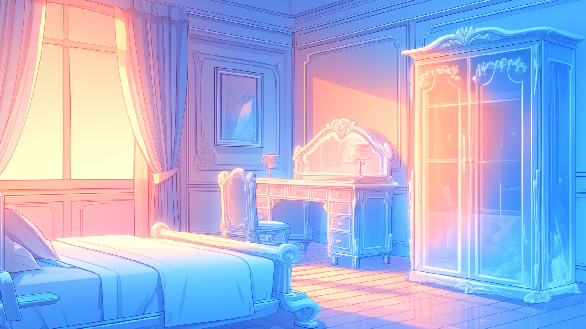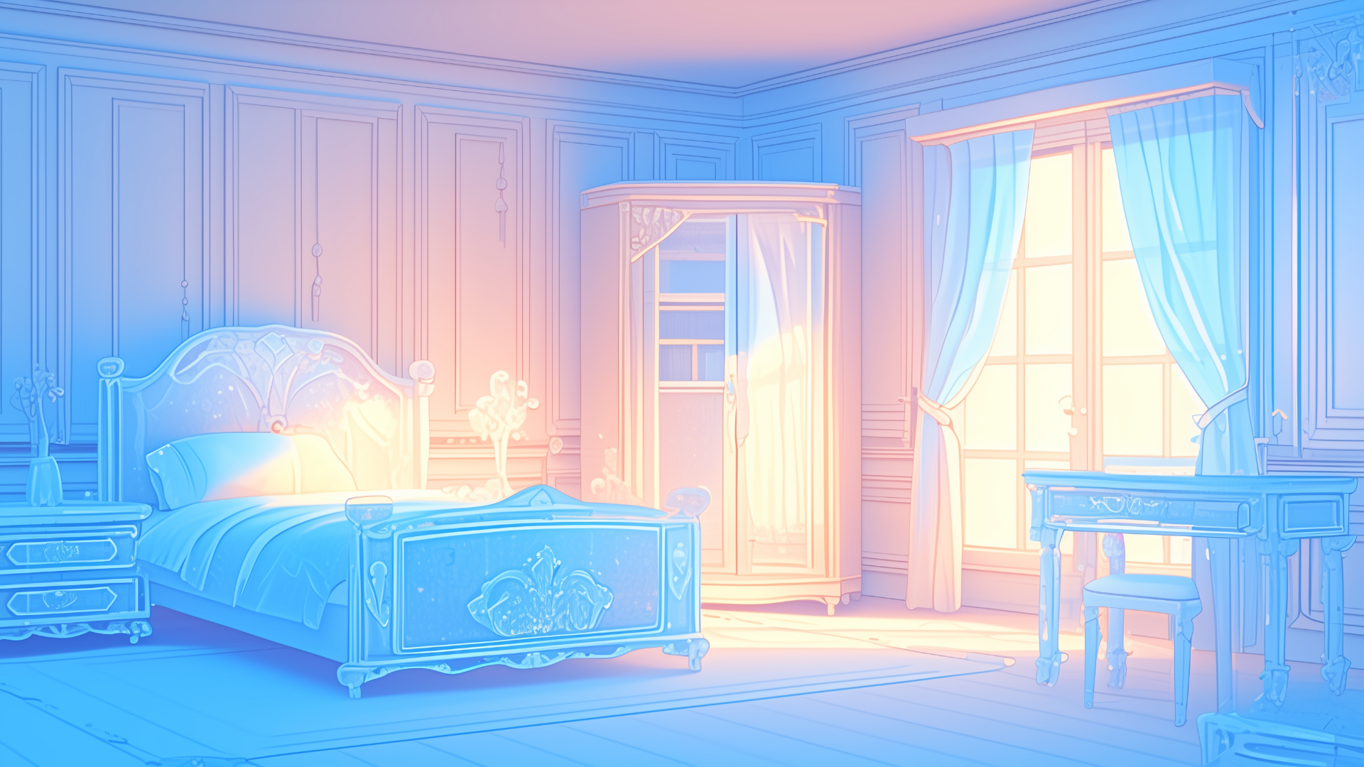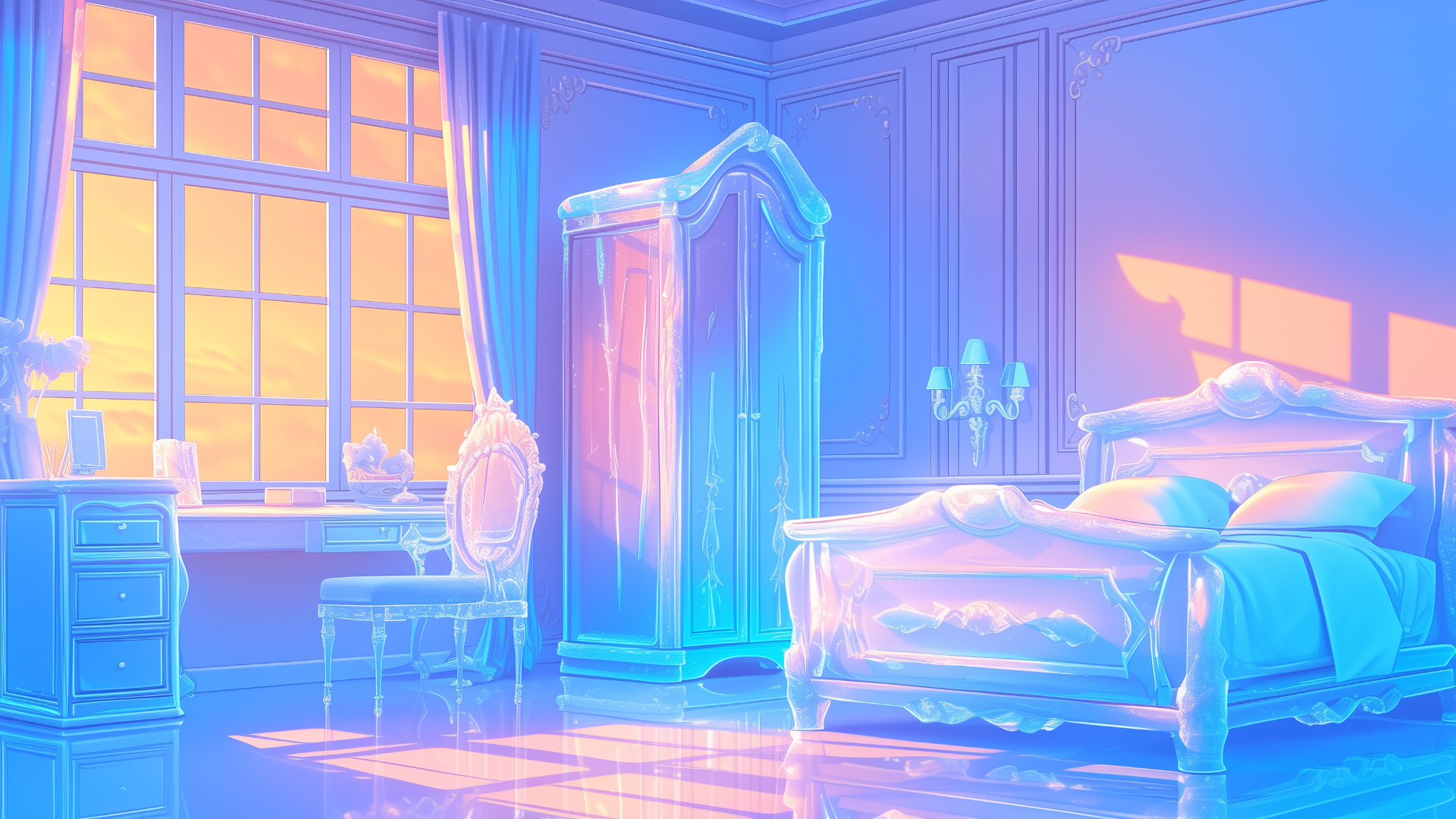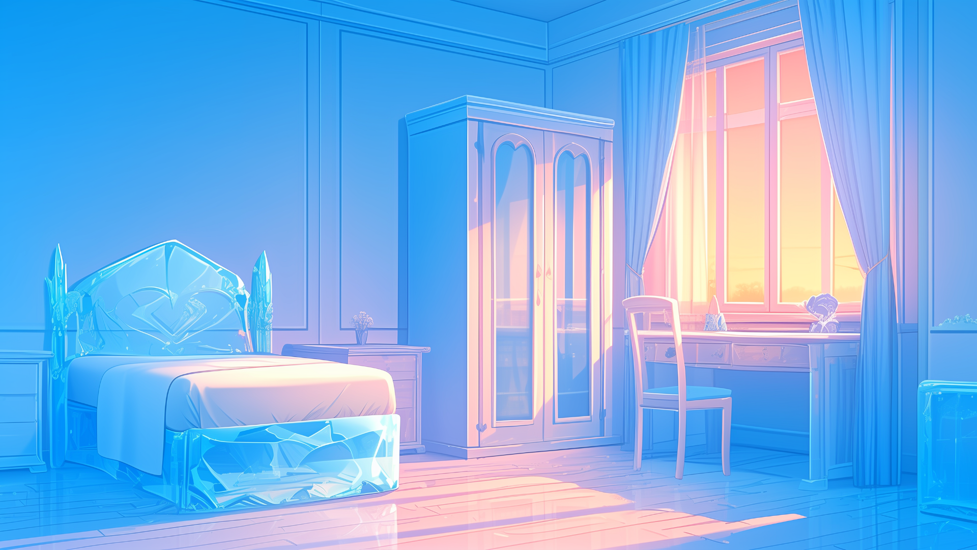 魔法学校, 寮, 氷属性, 冷気, 1人部屋, 寝室, 夕方