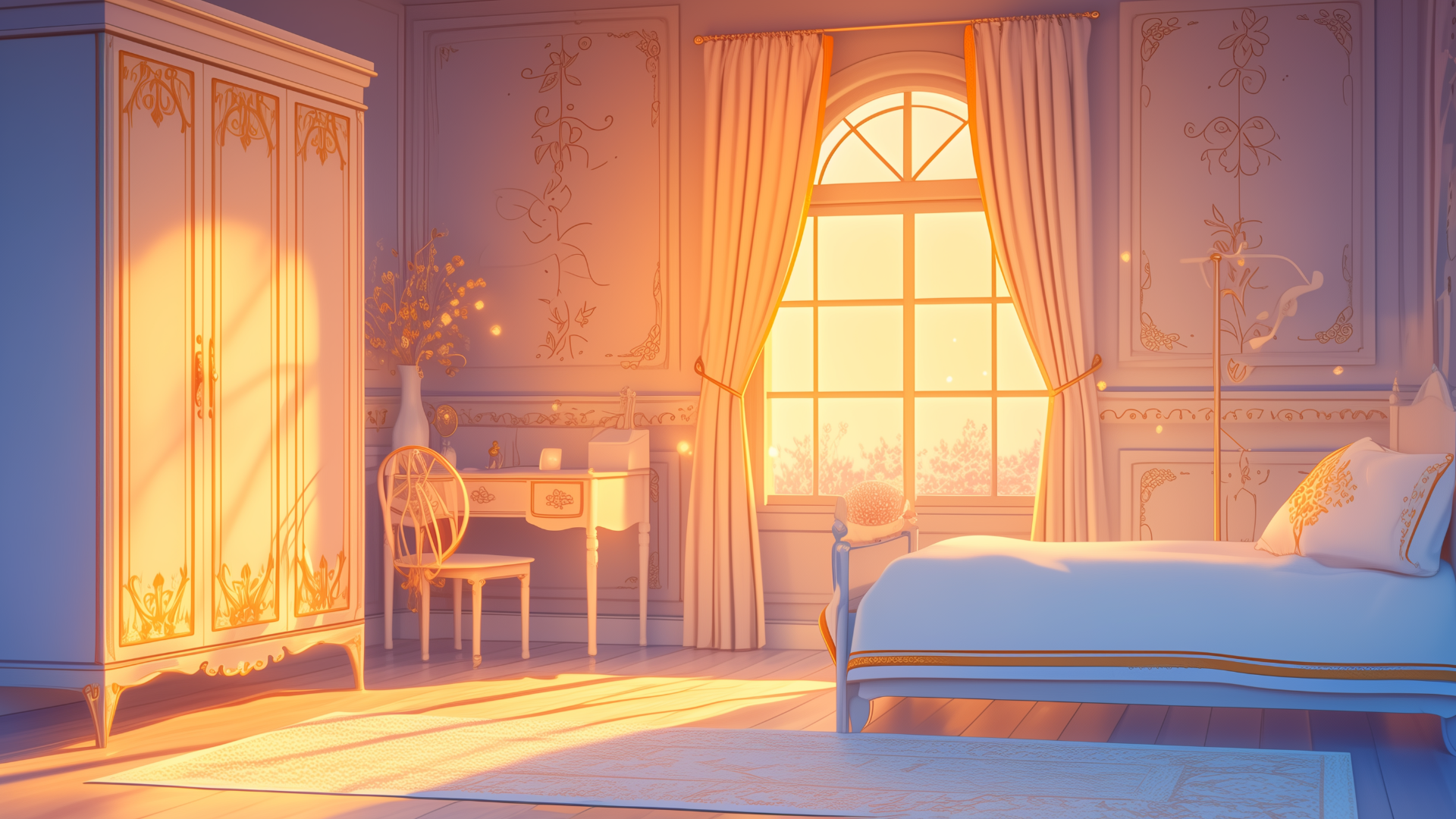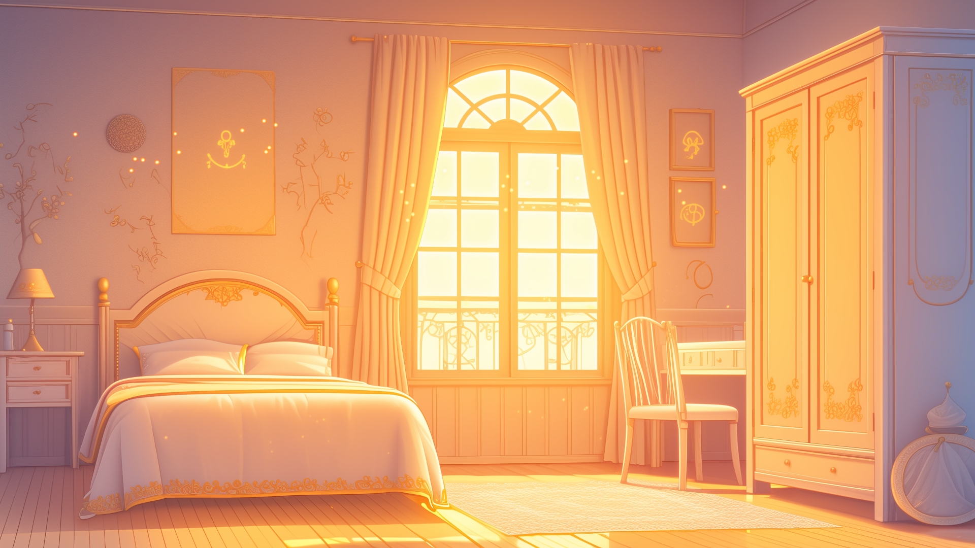 魔法学校, 寮, 光属性, 白, 1人部屋, 寝室, 夕方