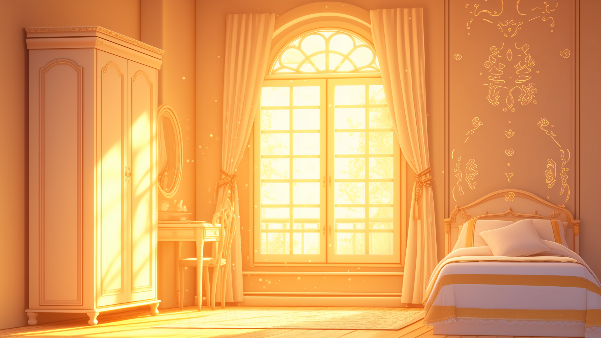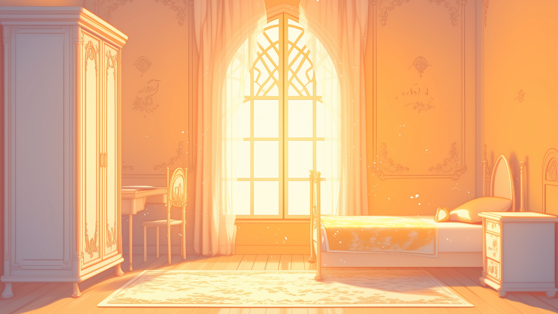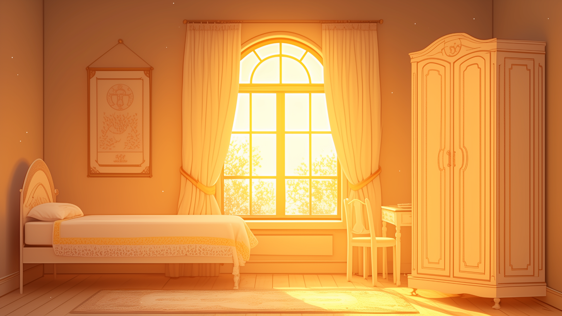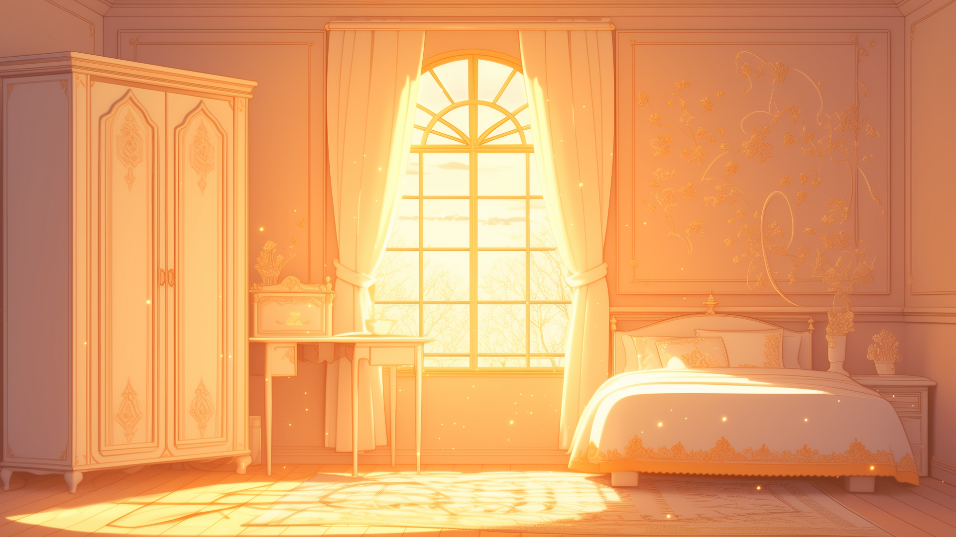 魔法学校の寮(光属性・夕方)、1人部屋のフリー背景素材です。