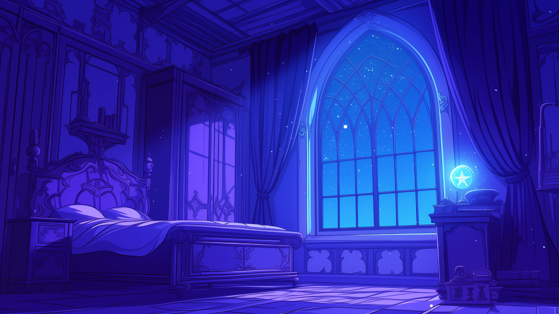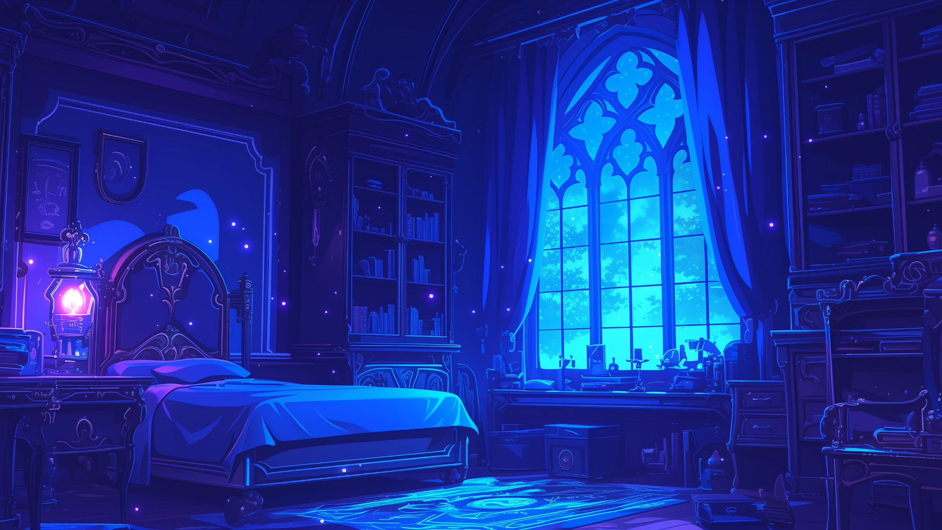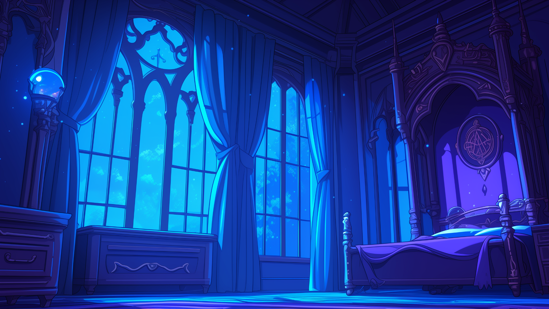 magic-school, dormitory, dark-element, dark, single-room, bedroom, night