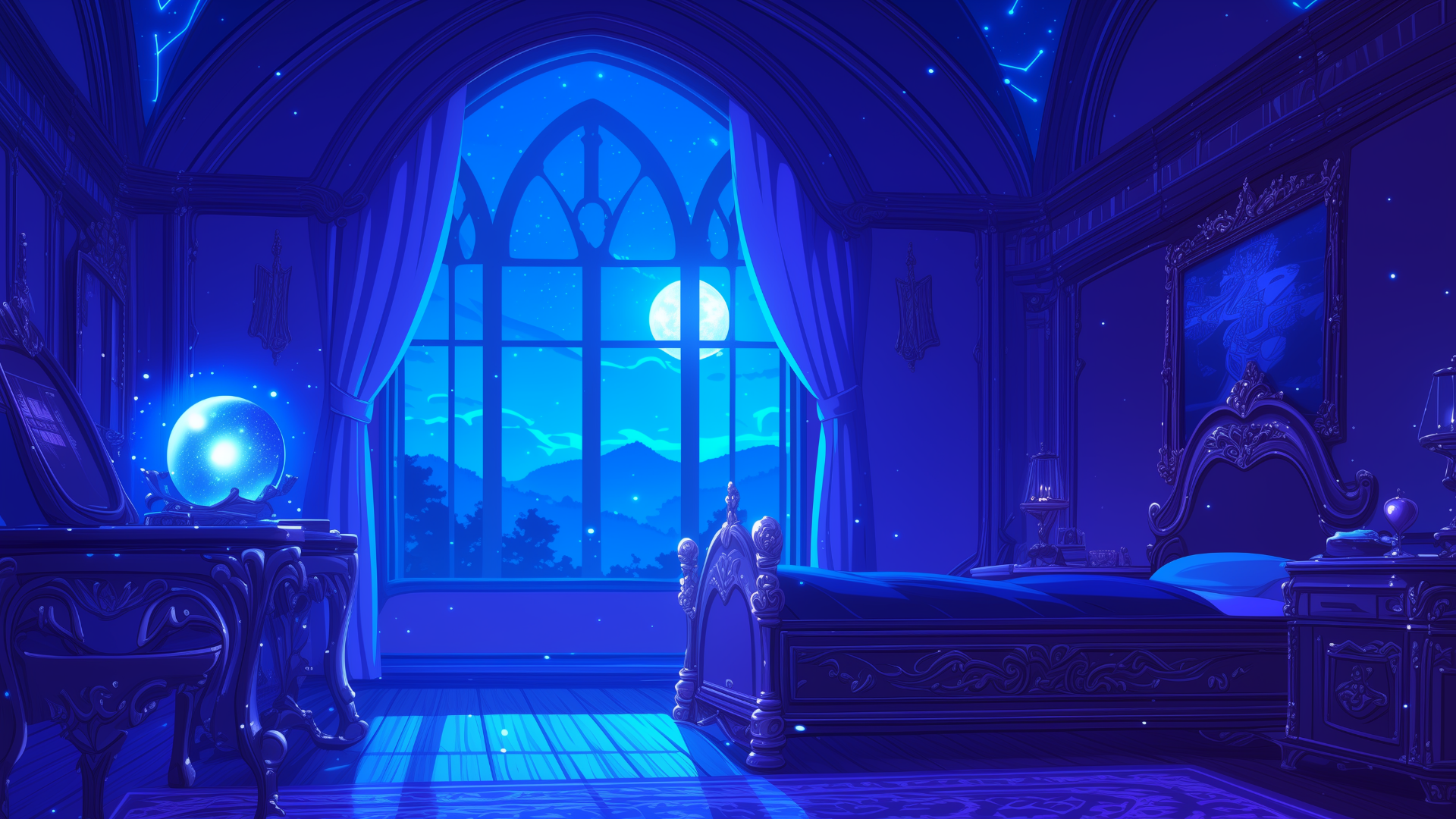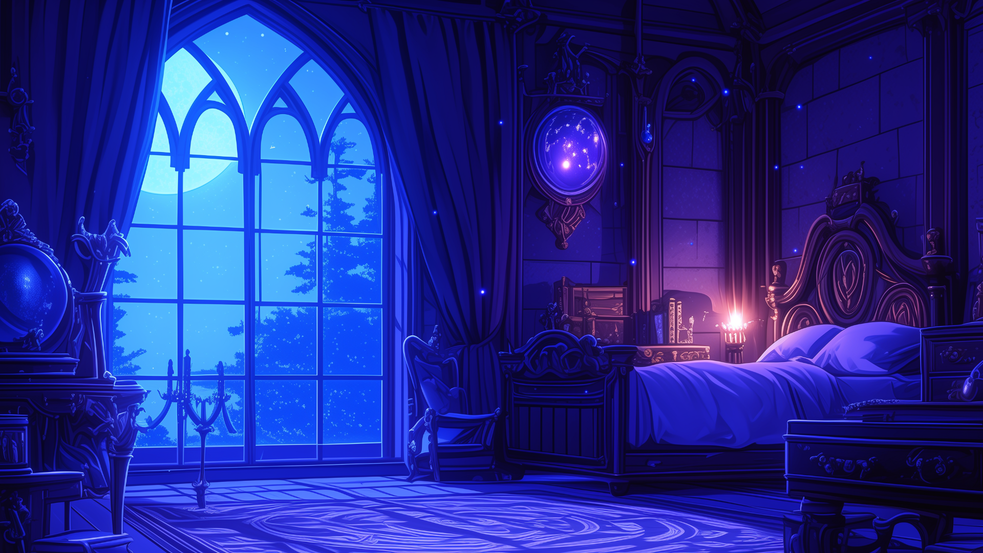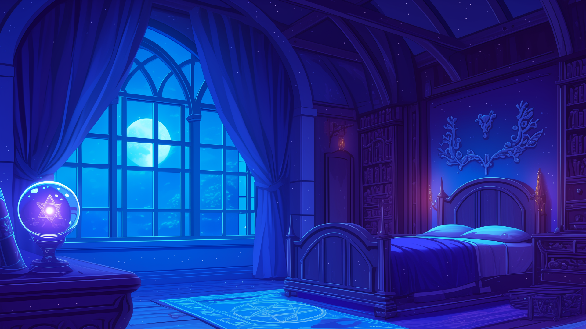 magic-school, dormitory, dark-element, dark, single-room, bedroom, night