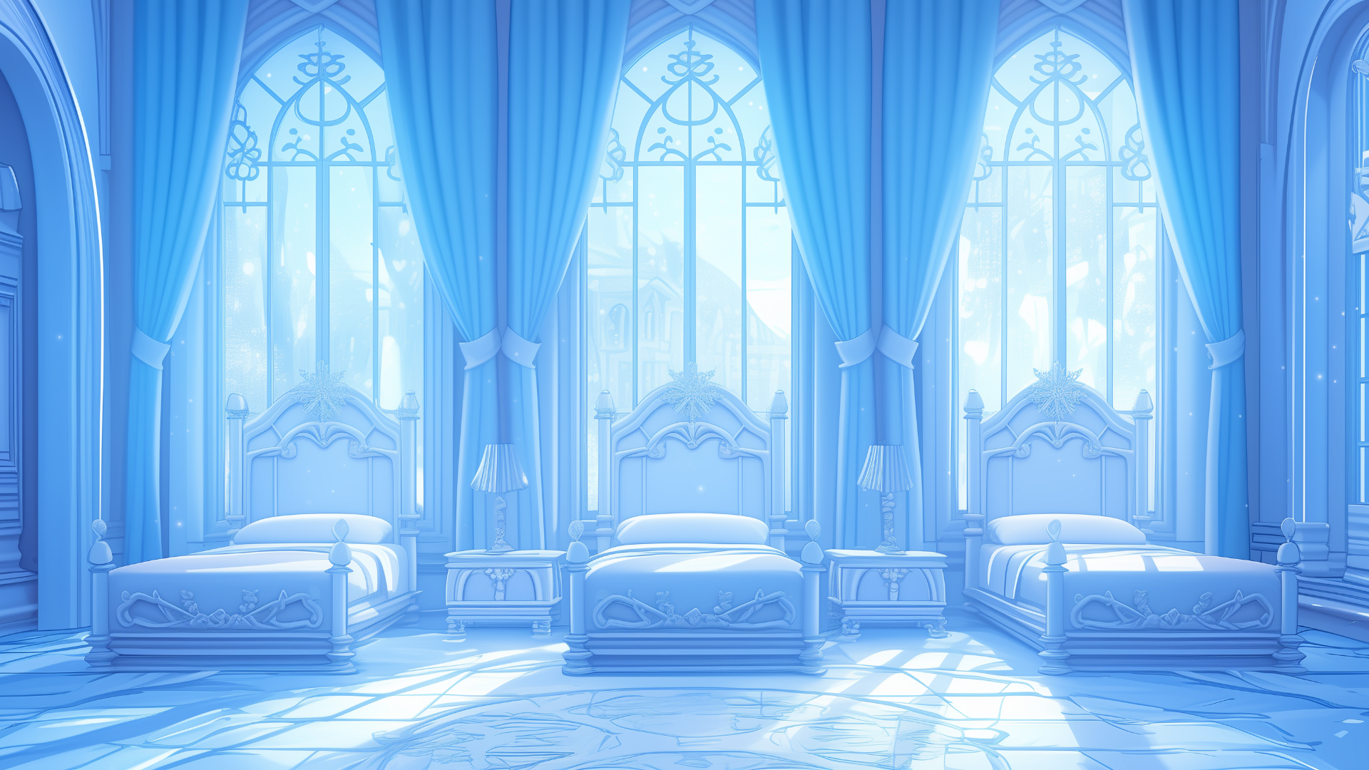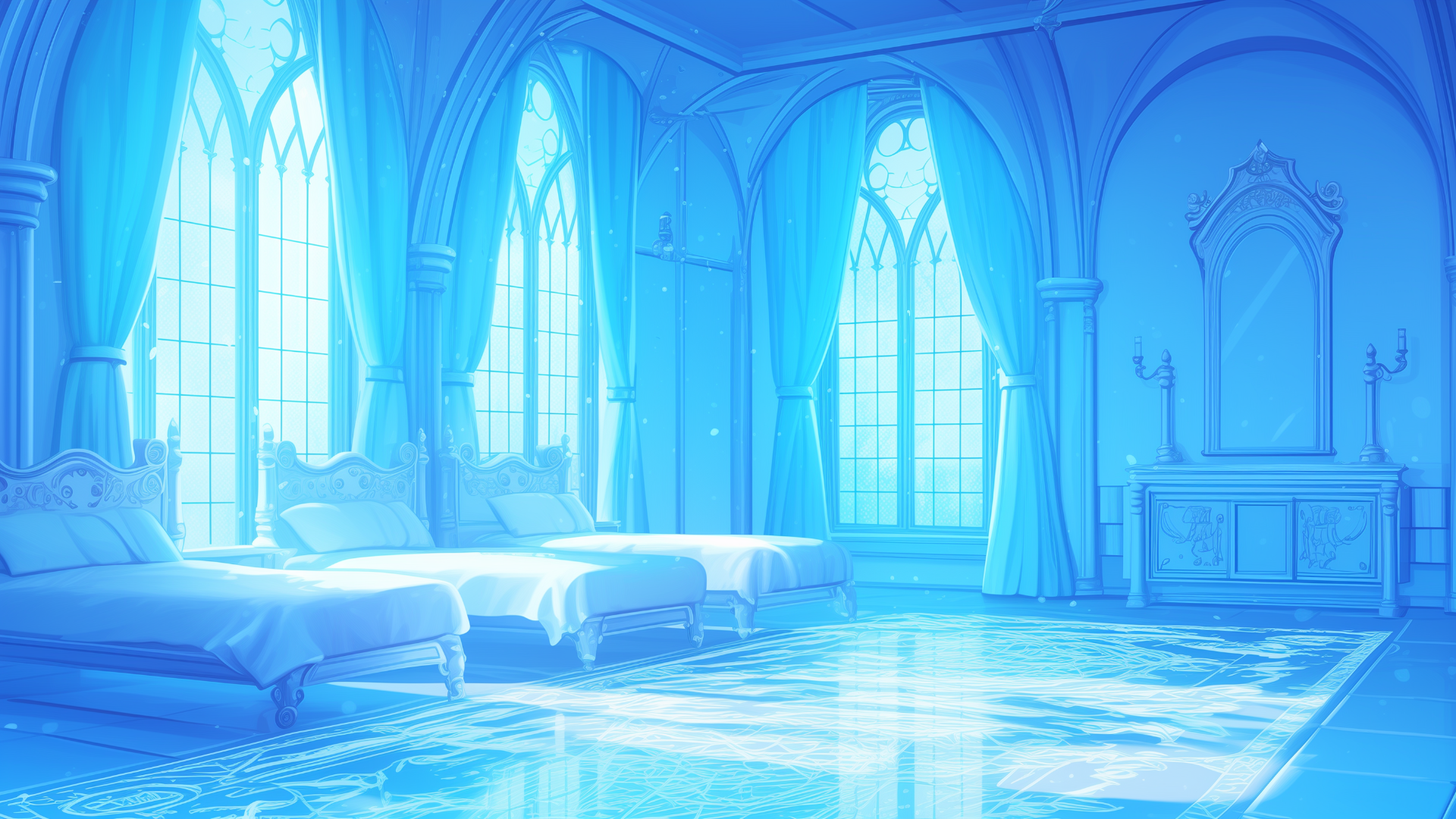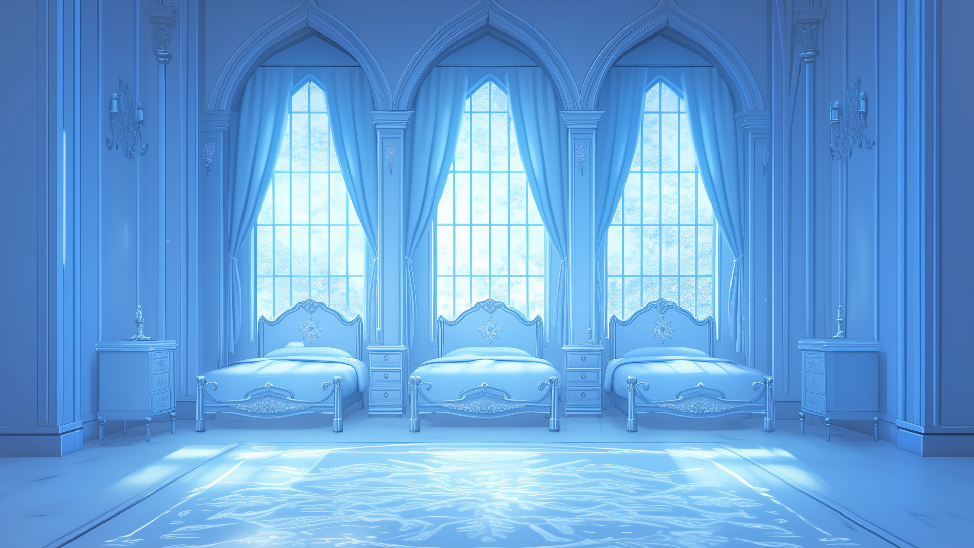 魔法学校の寮(氷属性・昼)、3人部屋のフリー背景素材です。