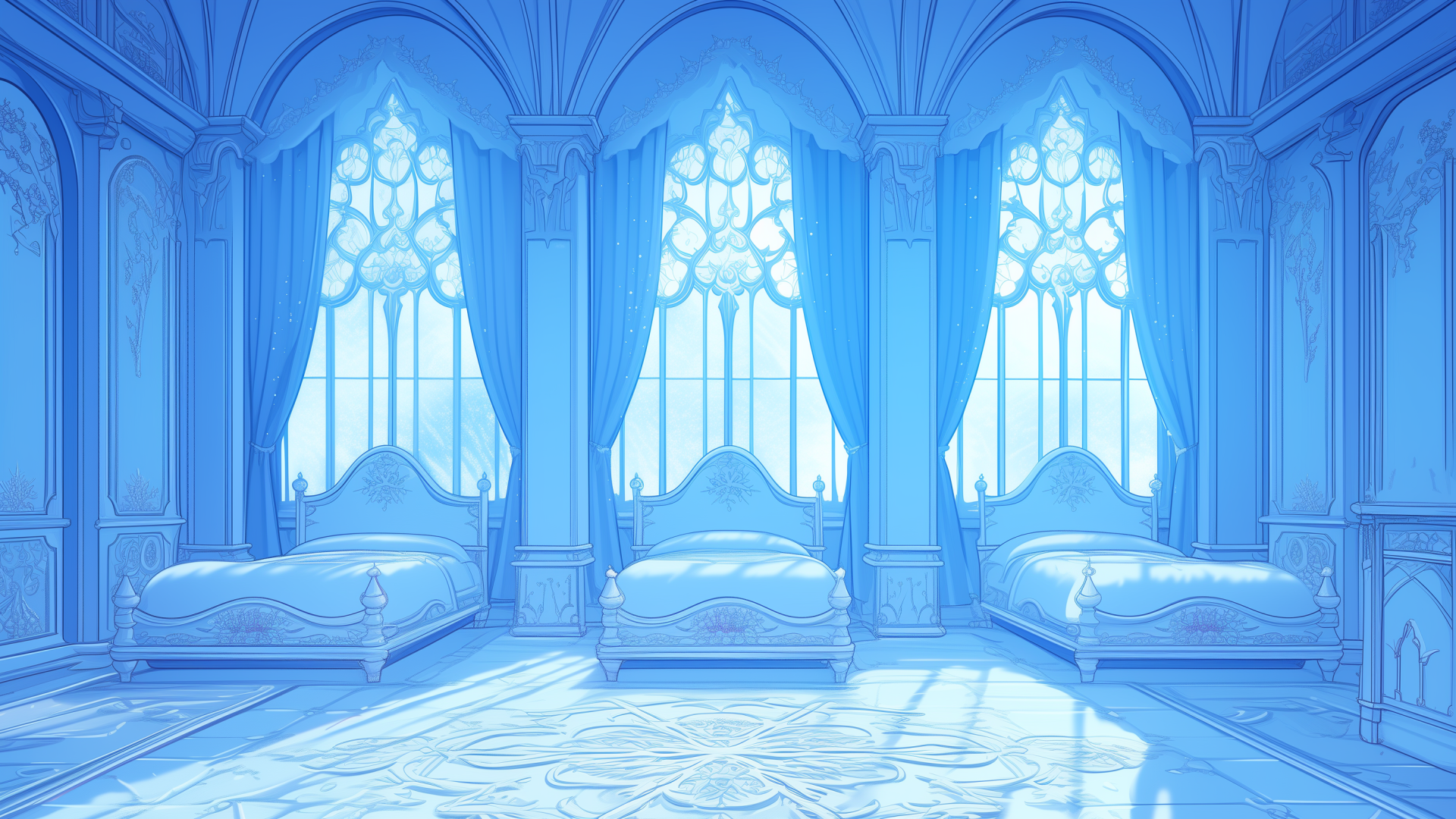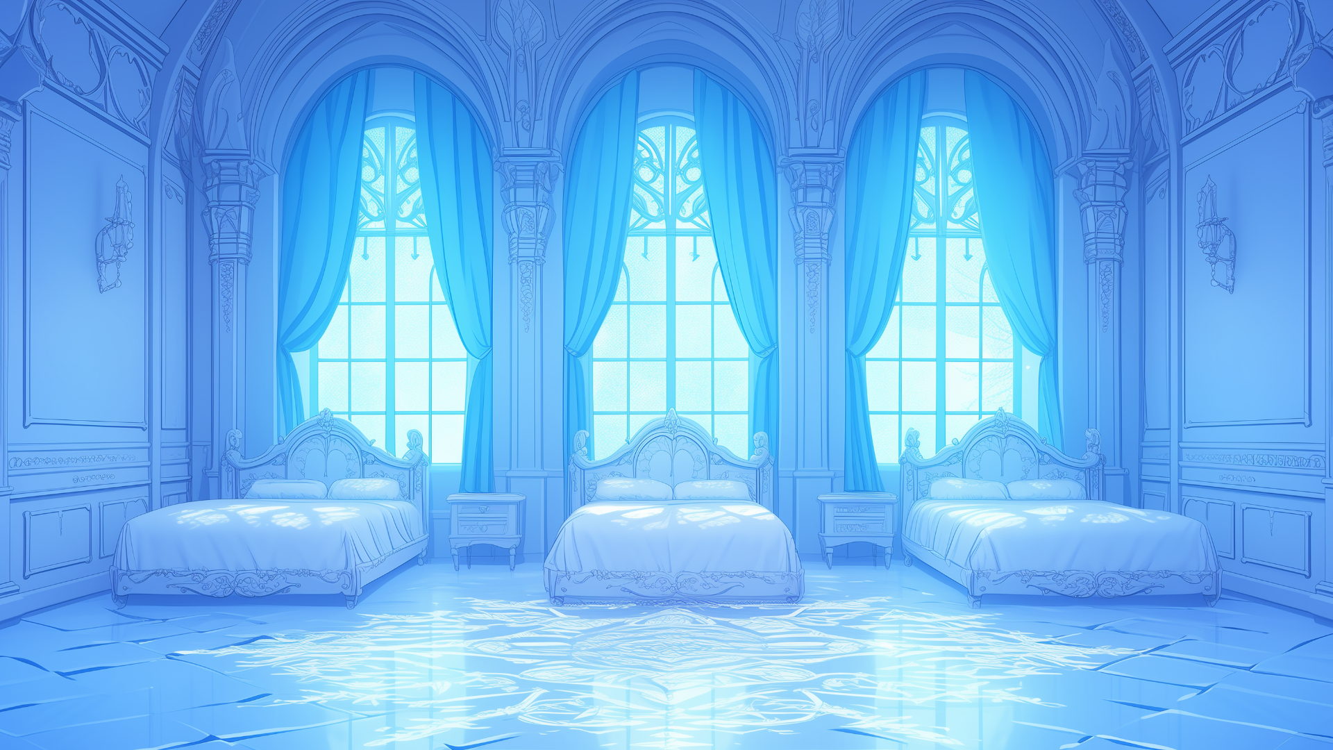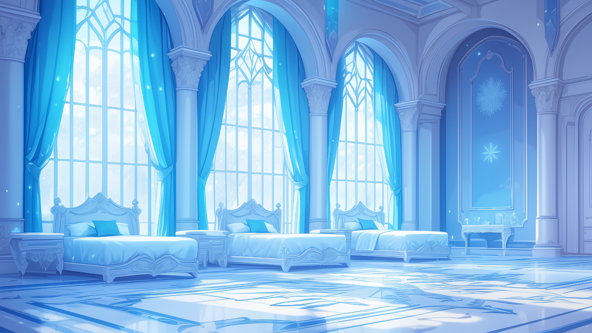魔法学校の寮(氷属性・昼)、3人部屋のフリー背景素材です。