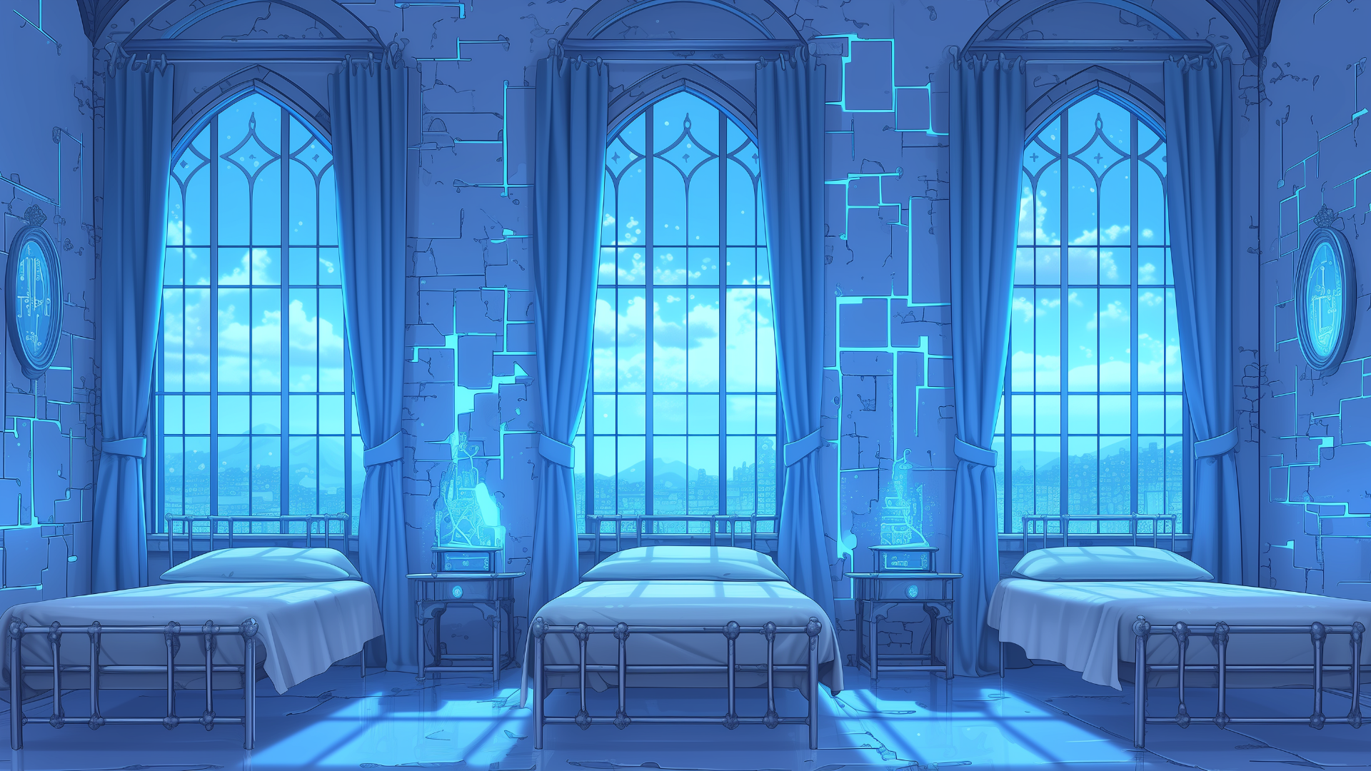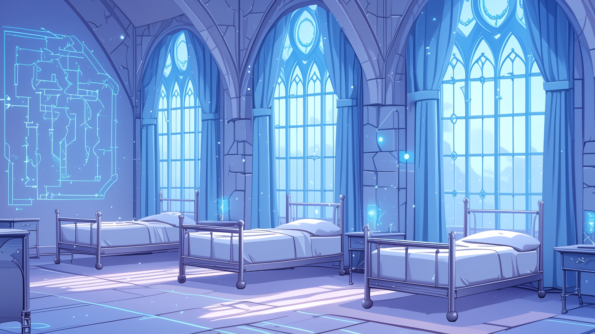 魔法学校の寮(雷属性・昼)、3人部屋のフリー背景素材です。