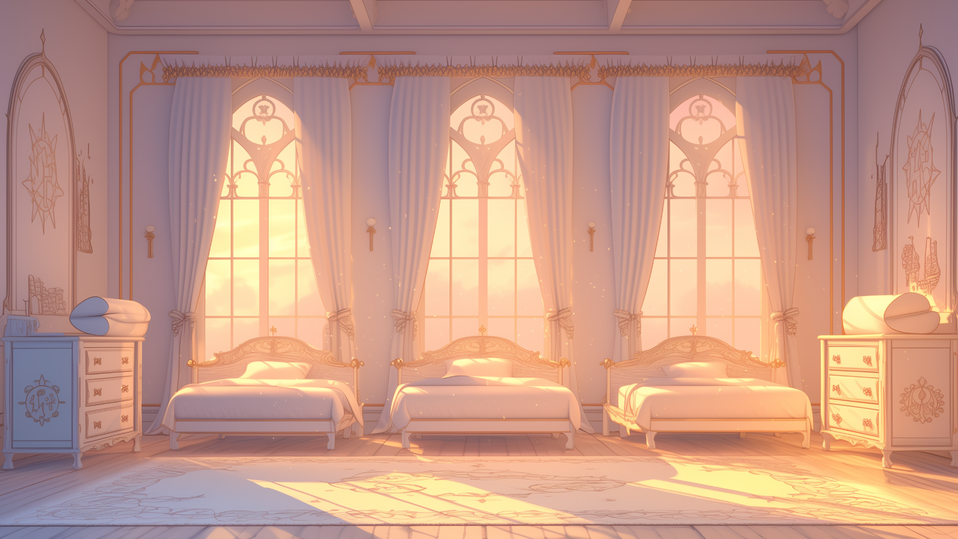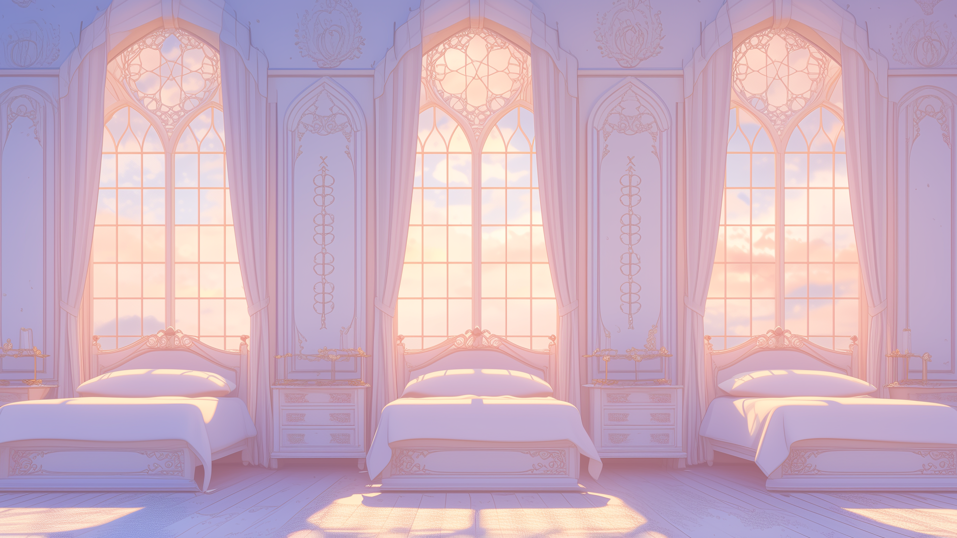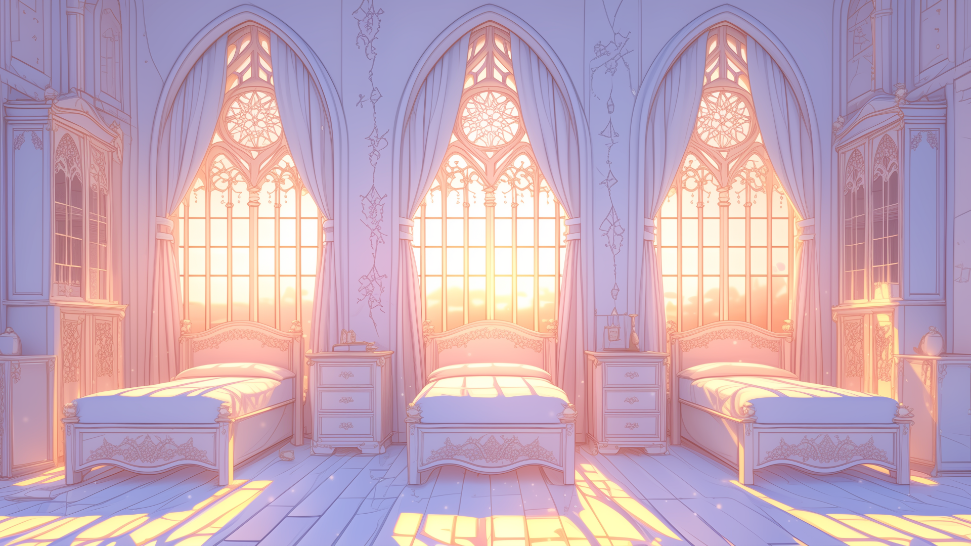 魔法学校の寮(光属性・夕方)、3人部屋のフリー背景素材です。