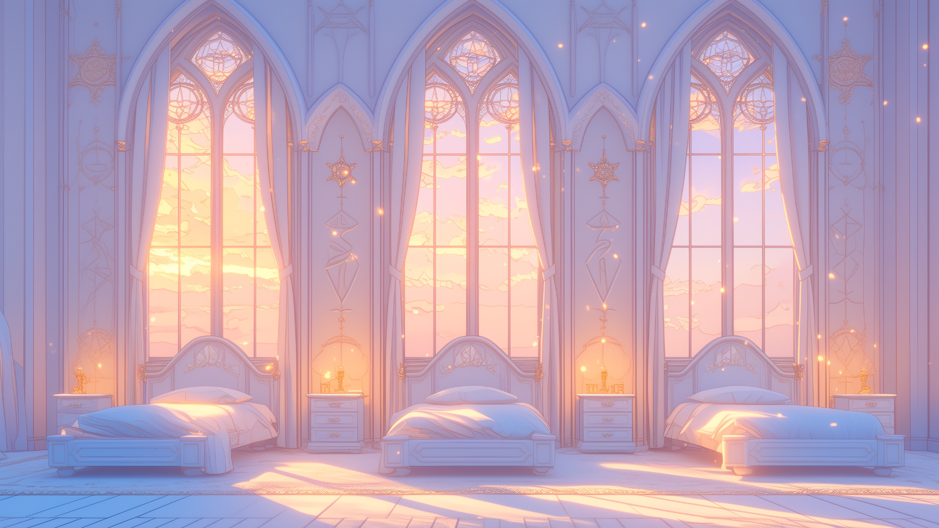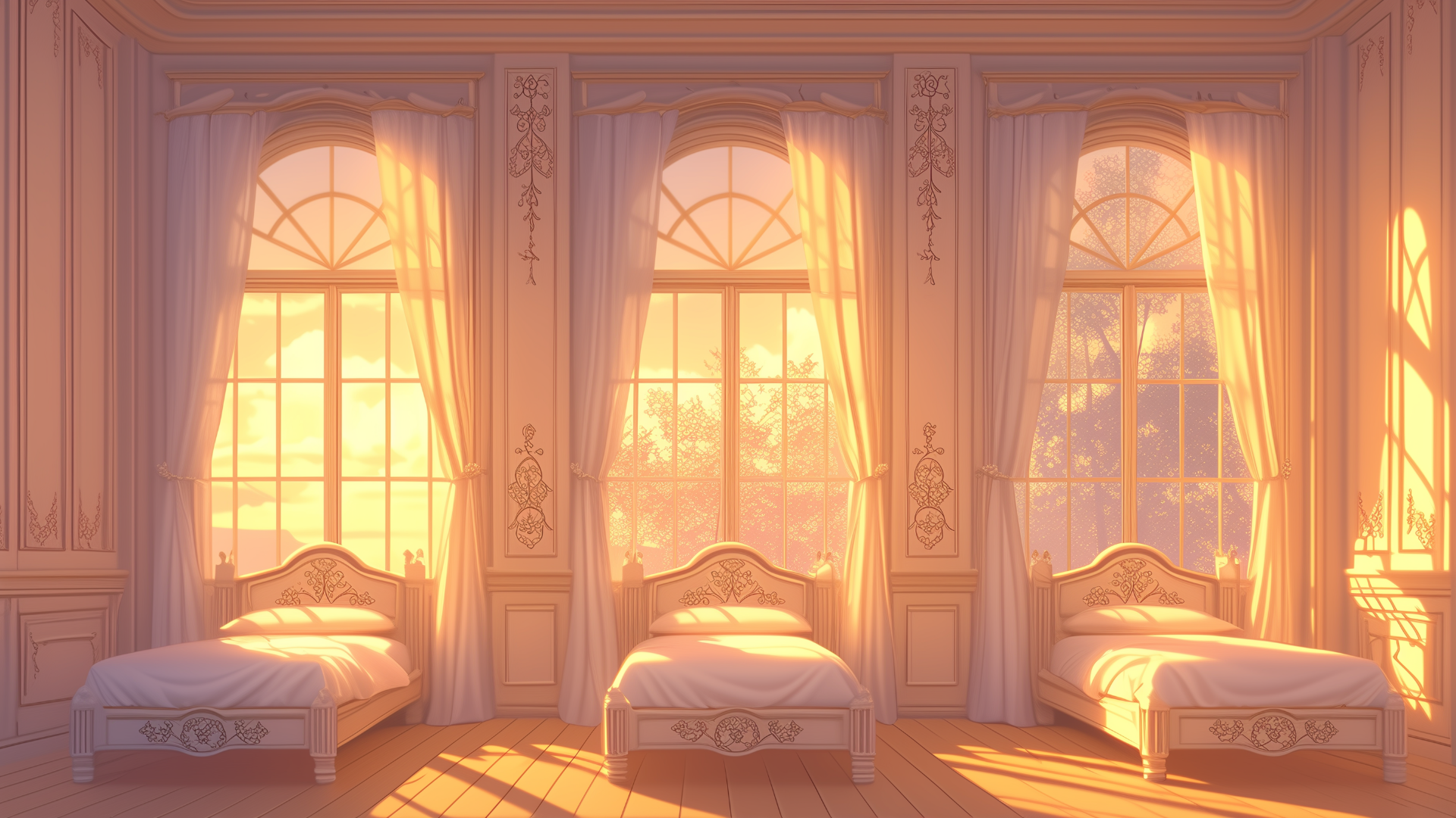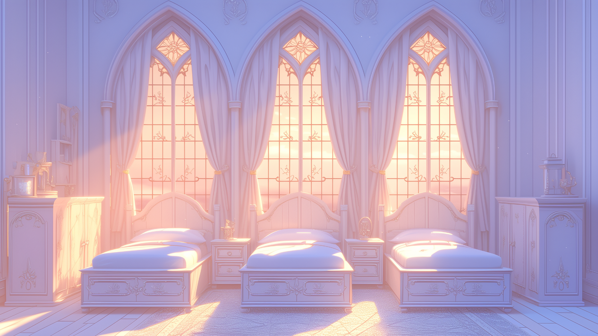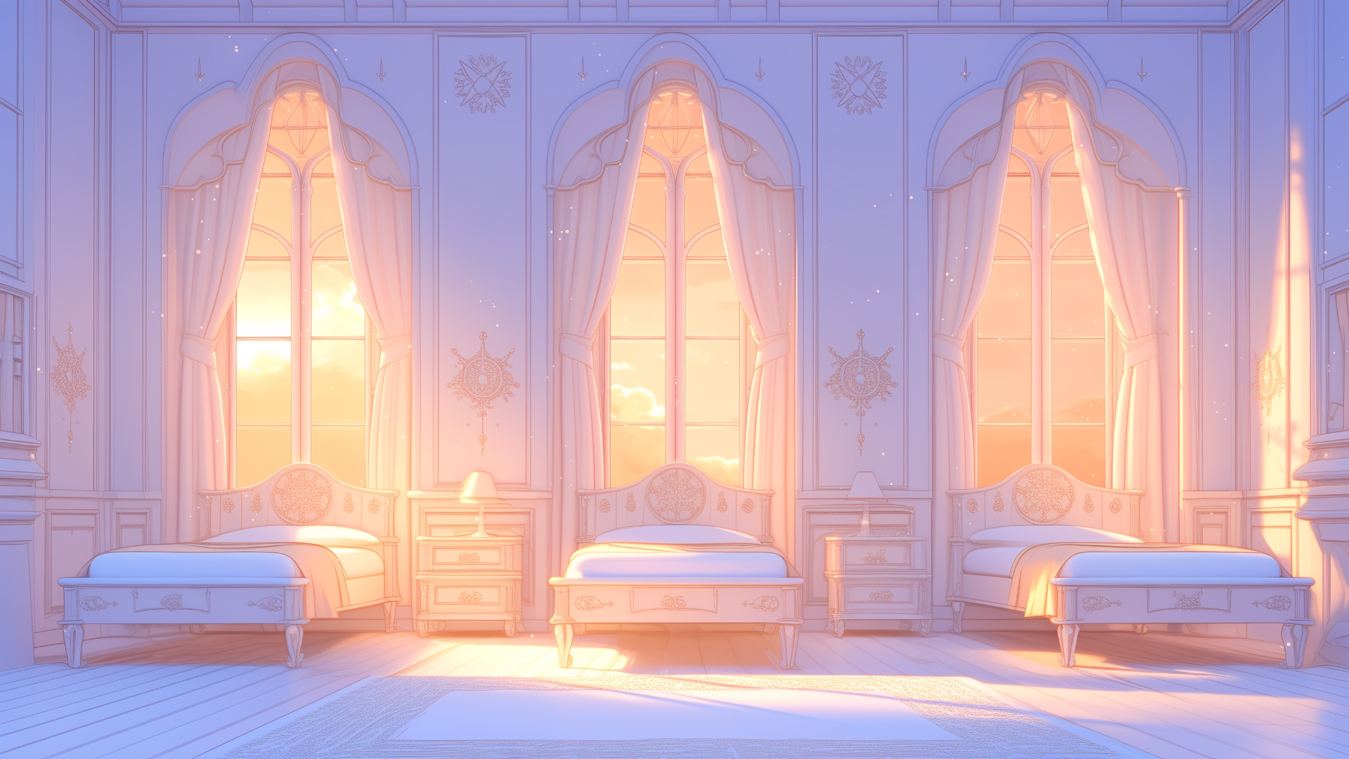 魔法学校の寮(光属性・夕方)、3人部屋のフリー背景素材です。