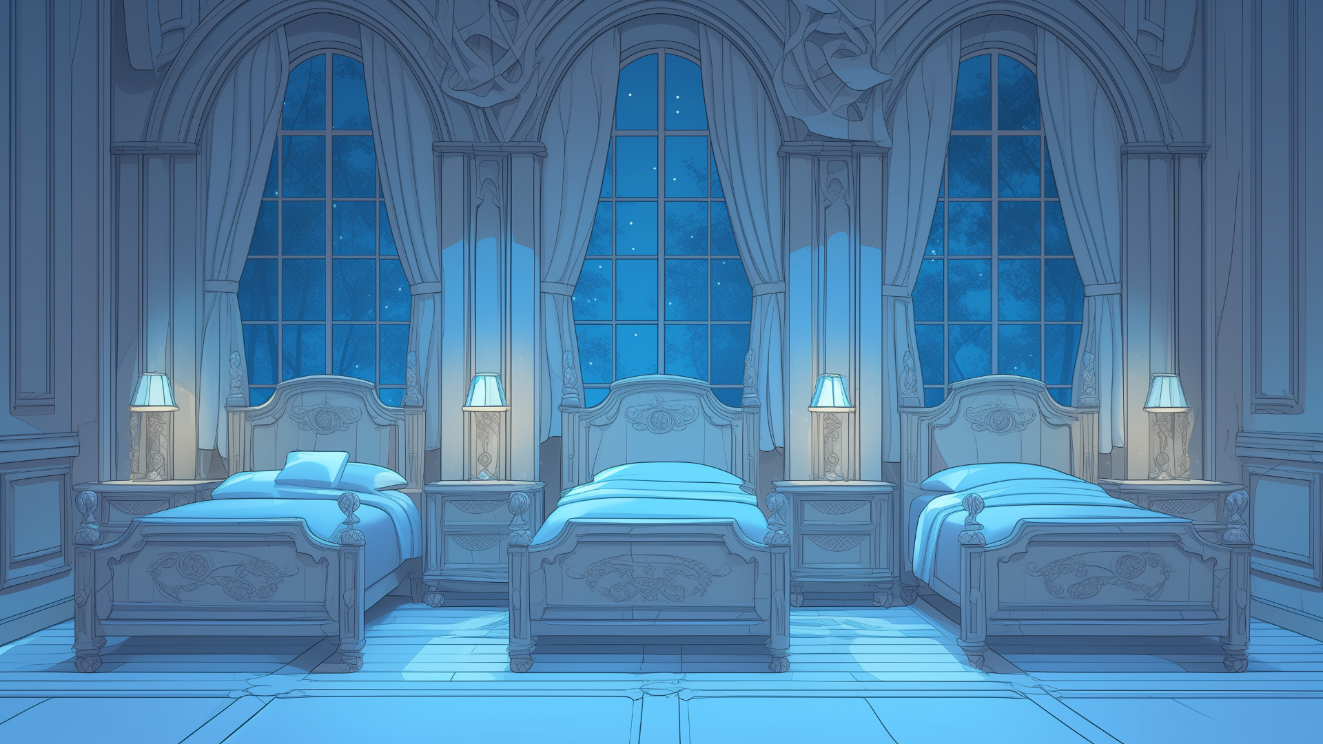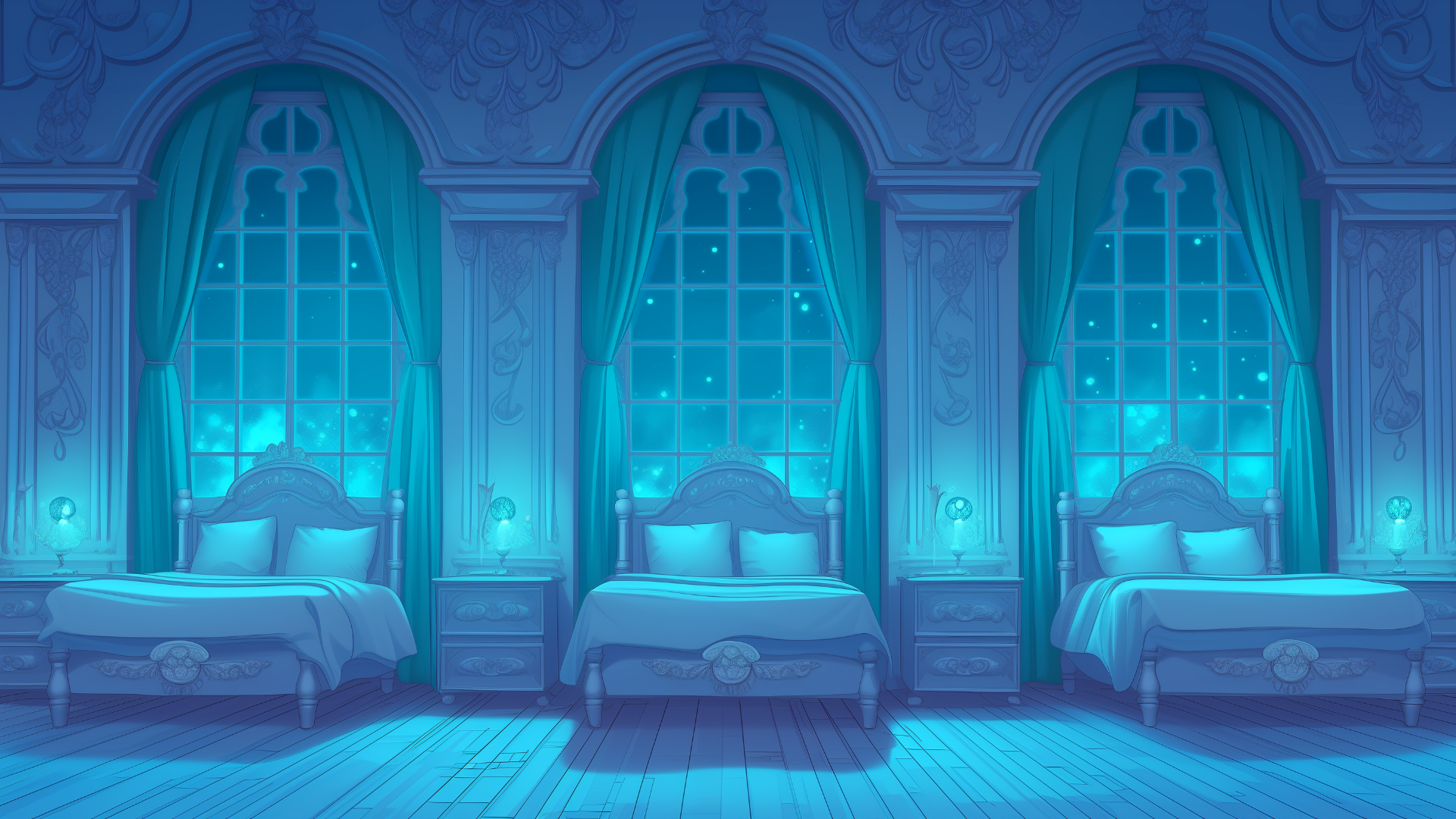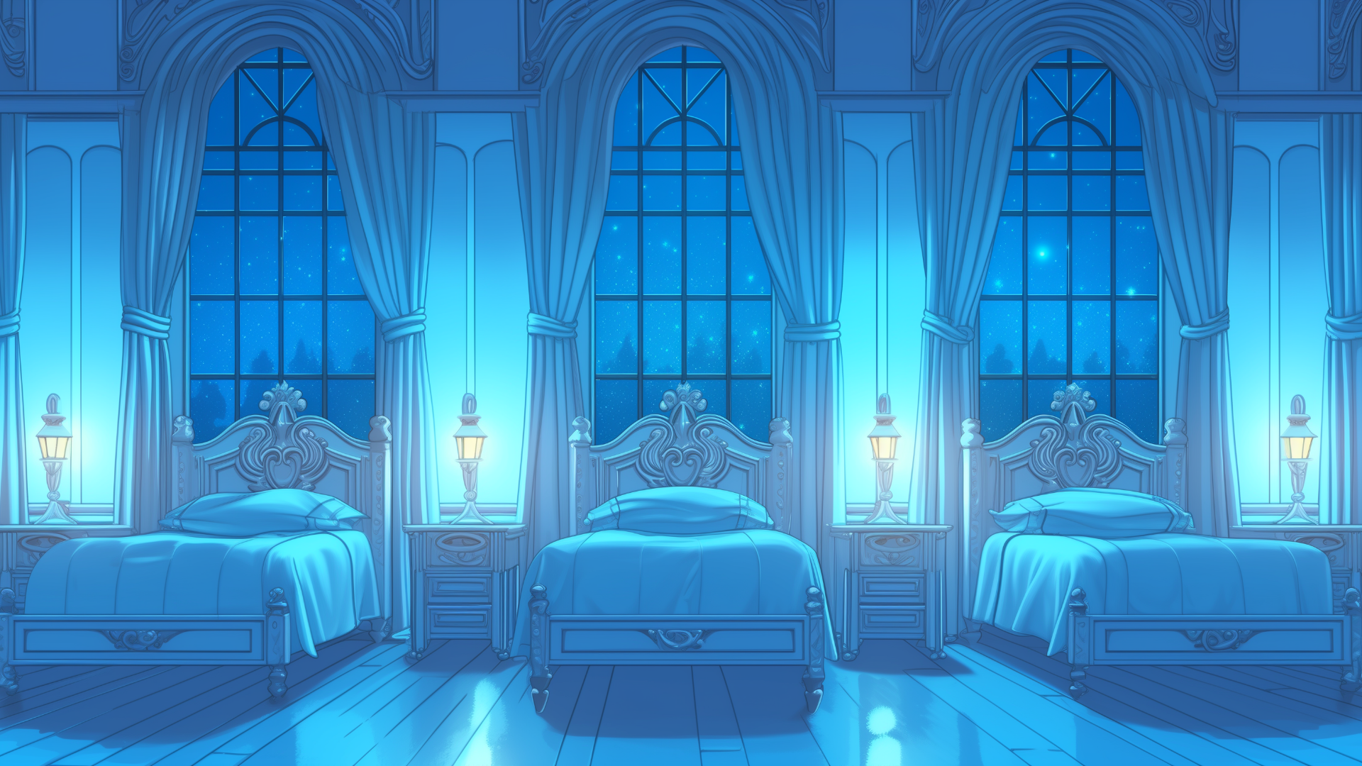 魔法学校の寮(風属性・夜)、3人部屋のフリー背景素材です。