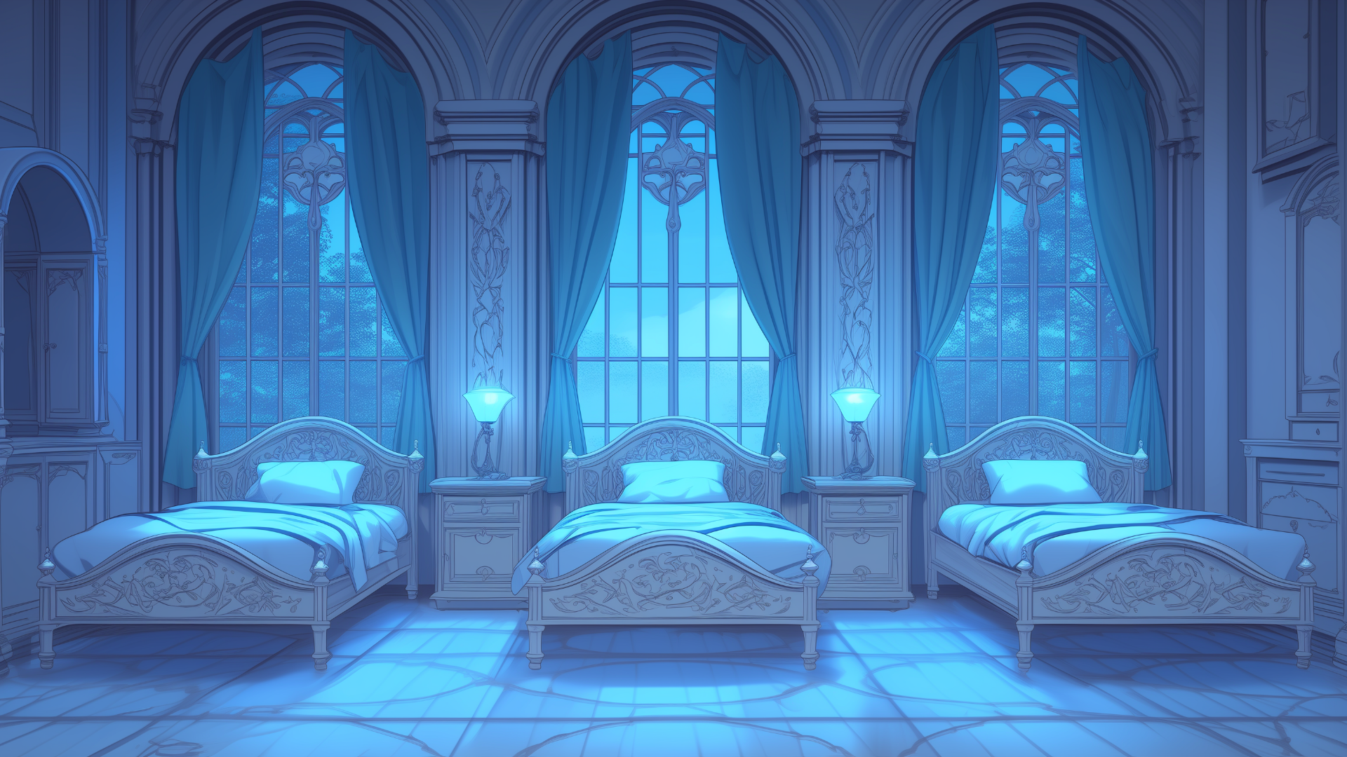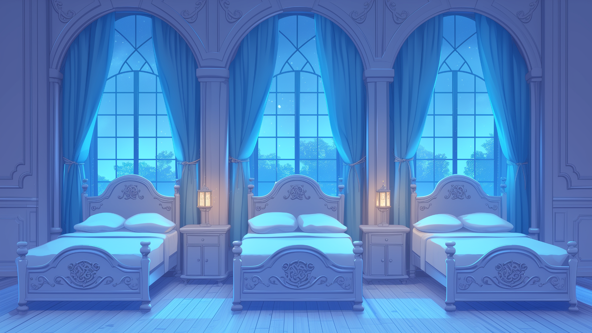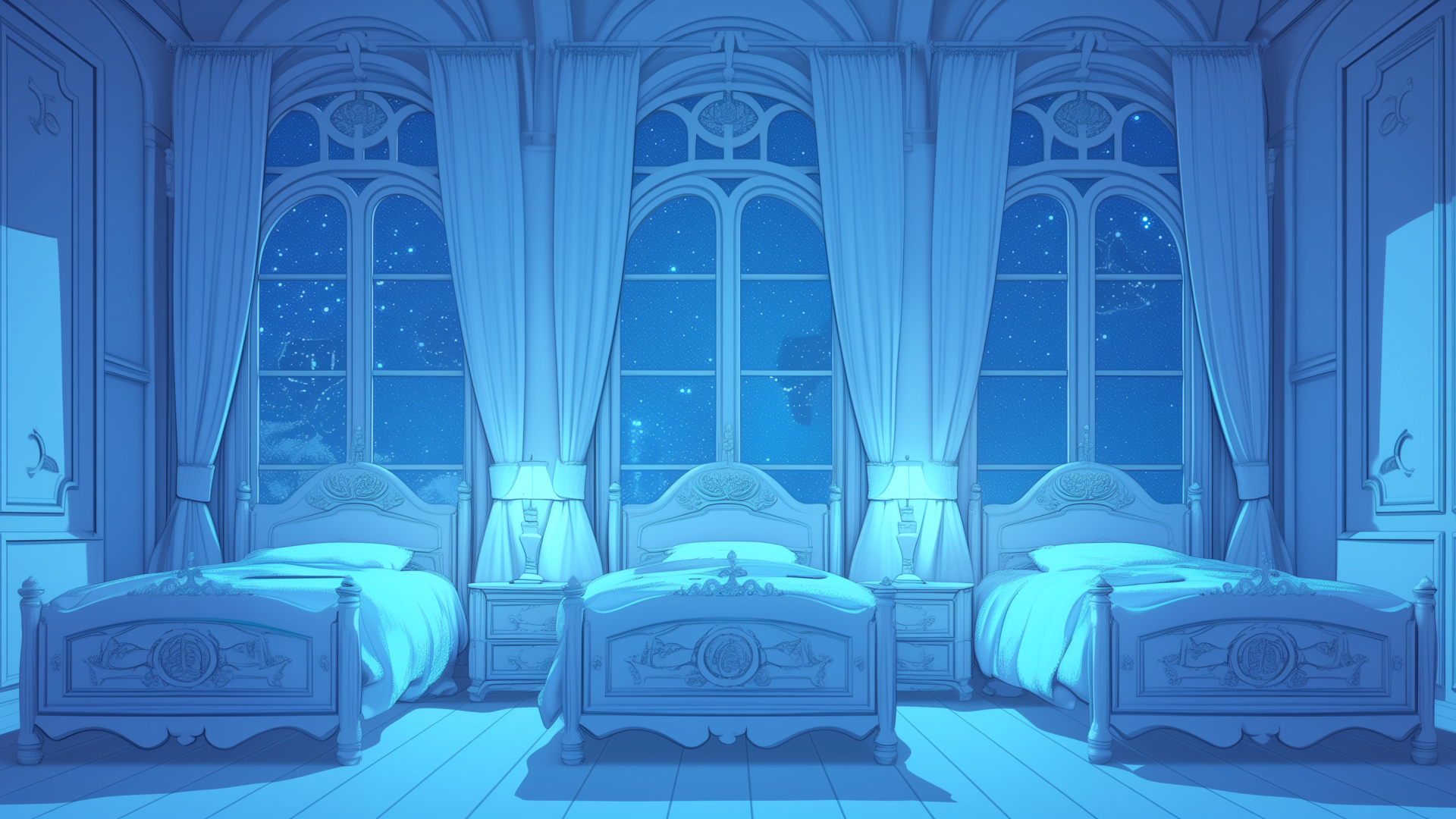 魔法学校の寮(風属性・夜)、3人部屋のフリー背景素材です。