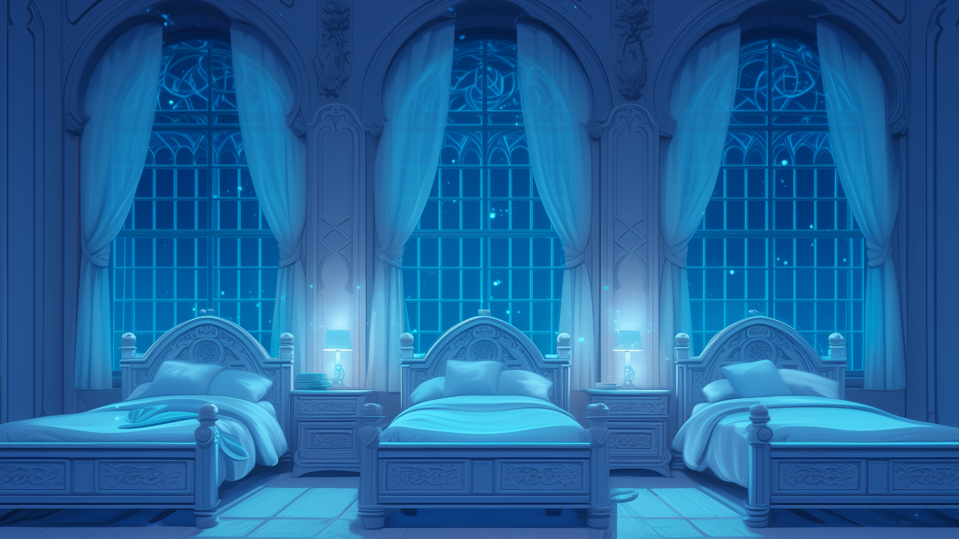 magic-school, dormitory, wind-element, three-person-room, bedroom, night