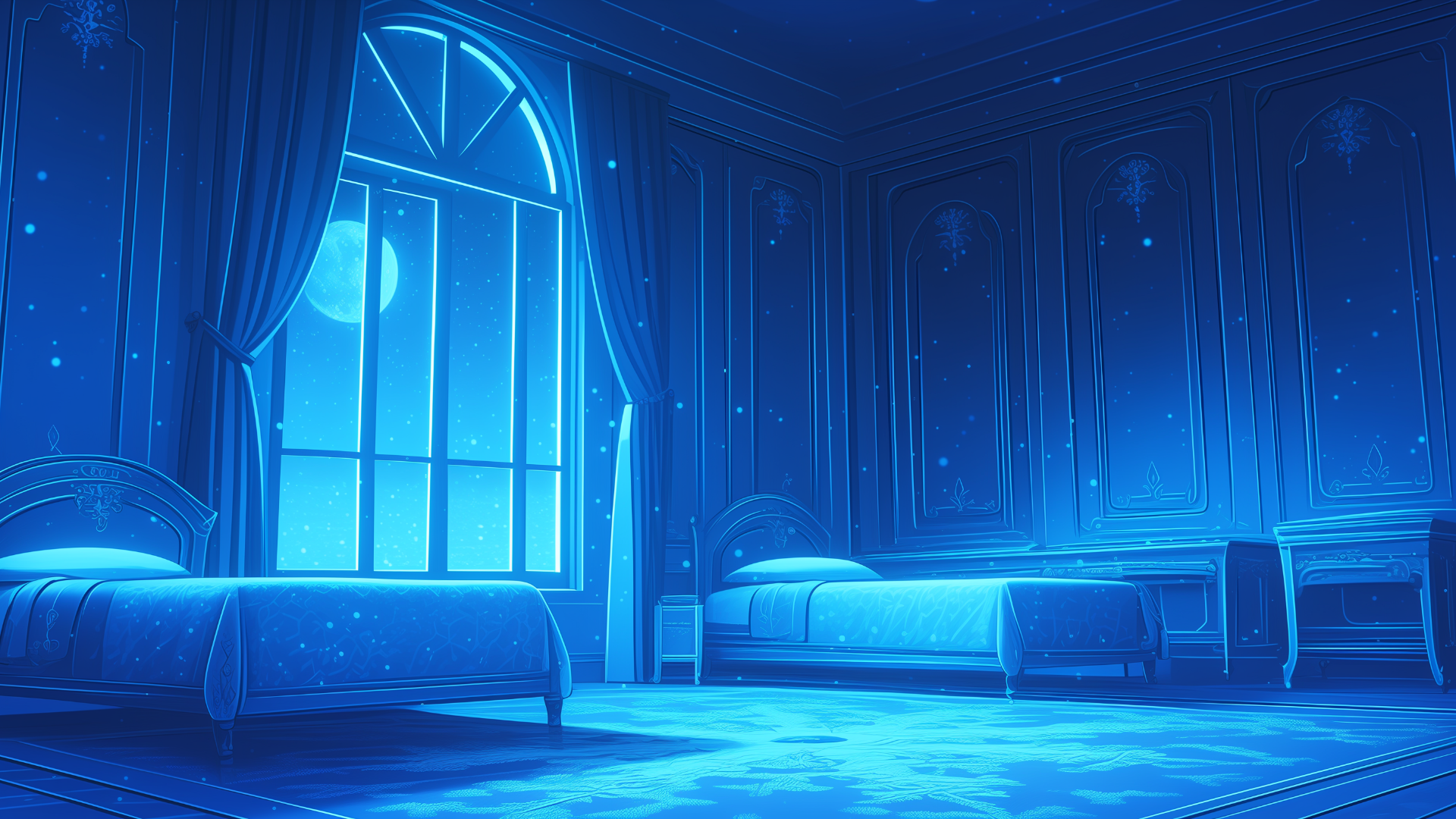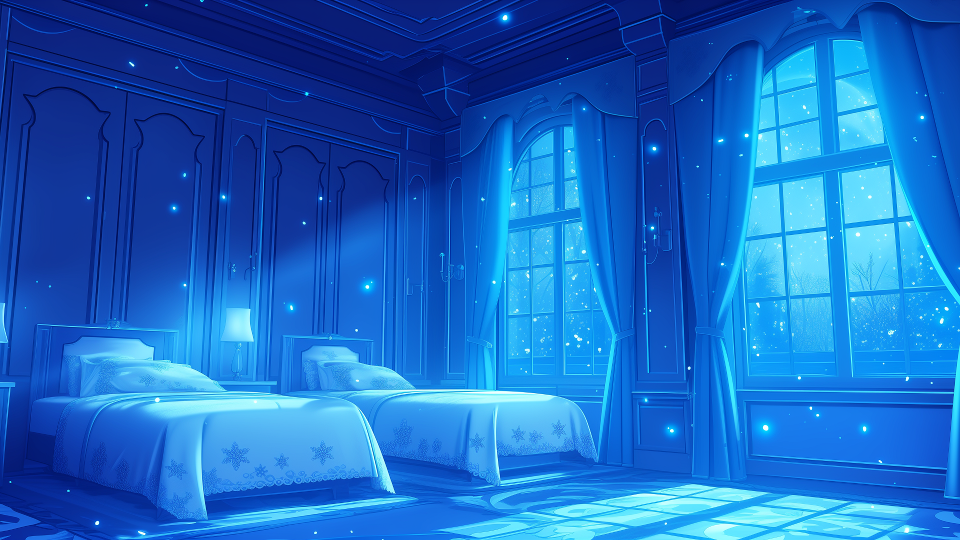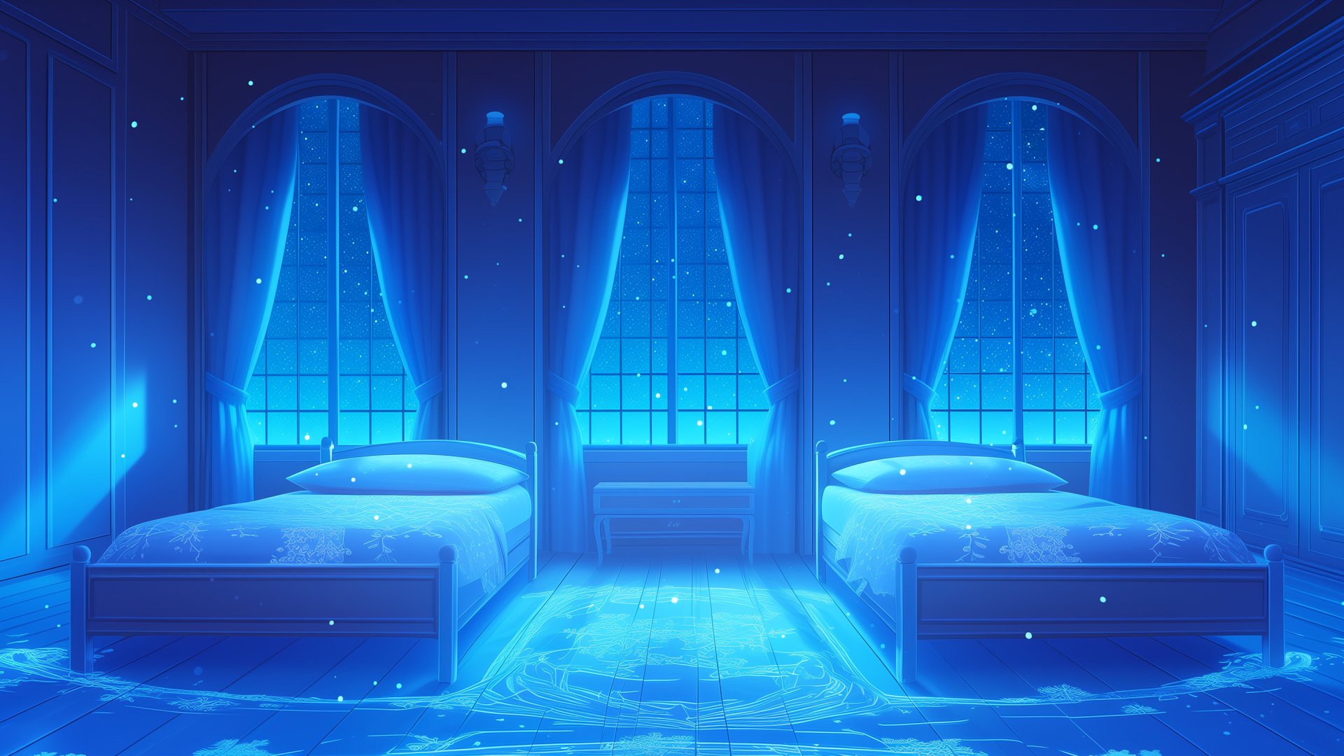 魔法学校の寮(氷属性・夜)、2人部屋のフリー背景素材です。