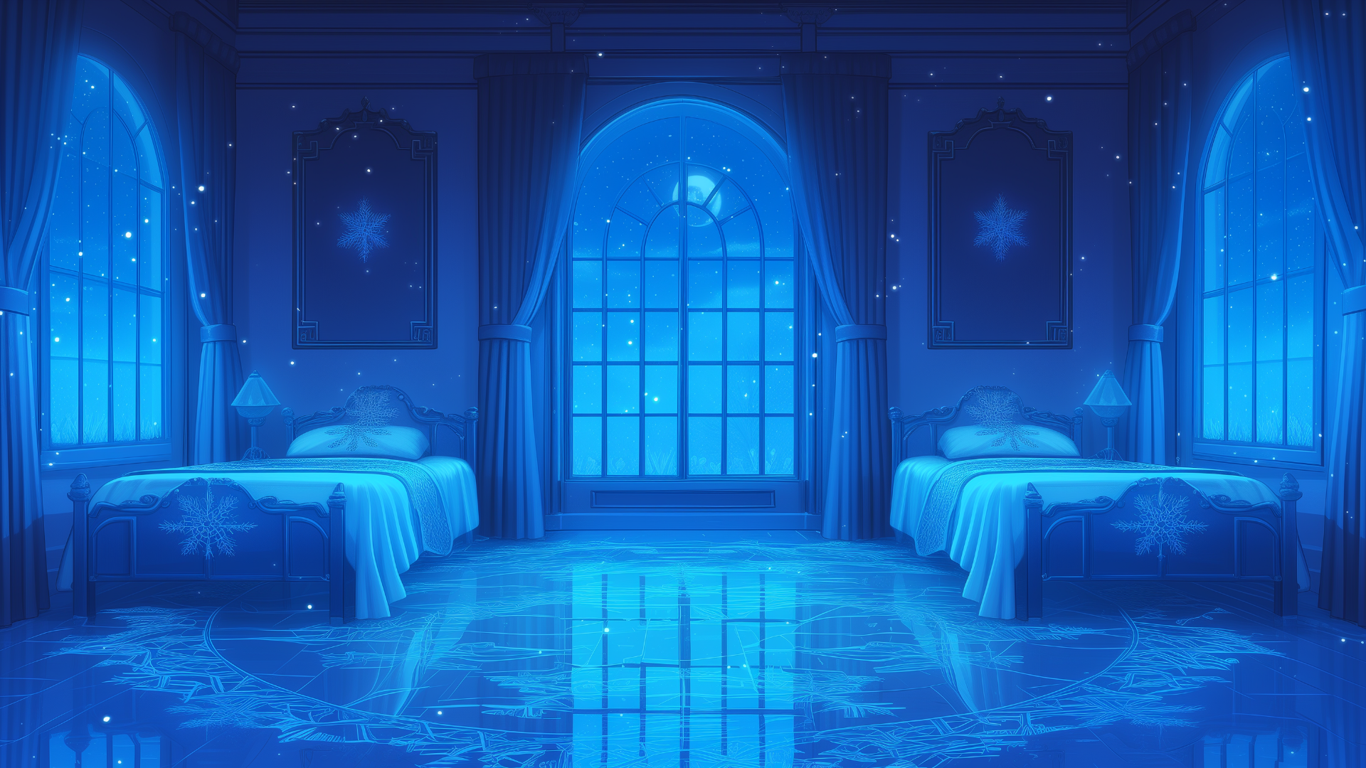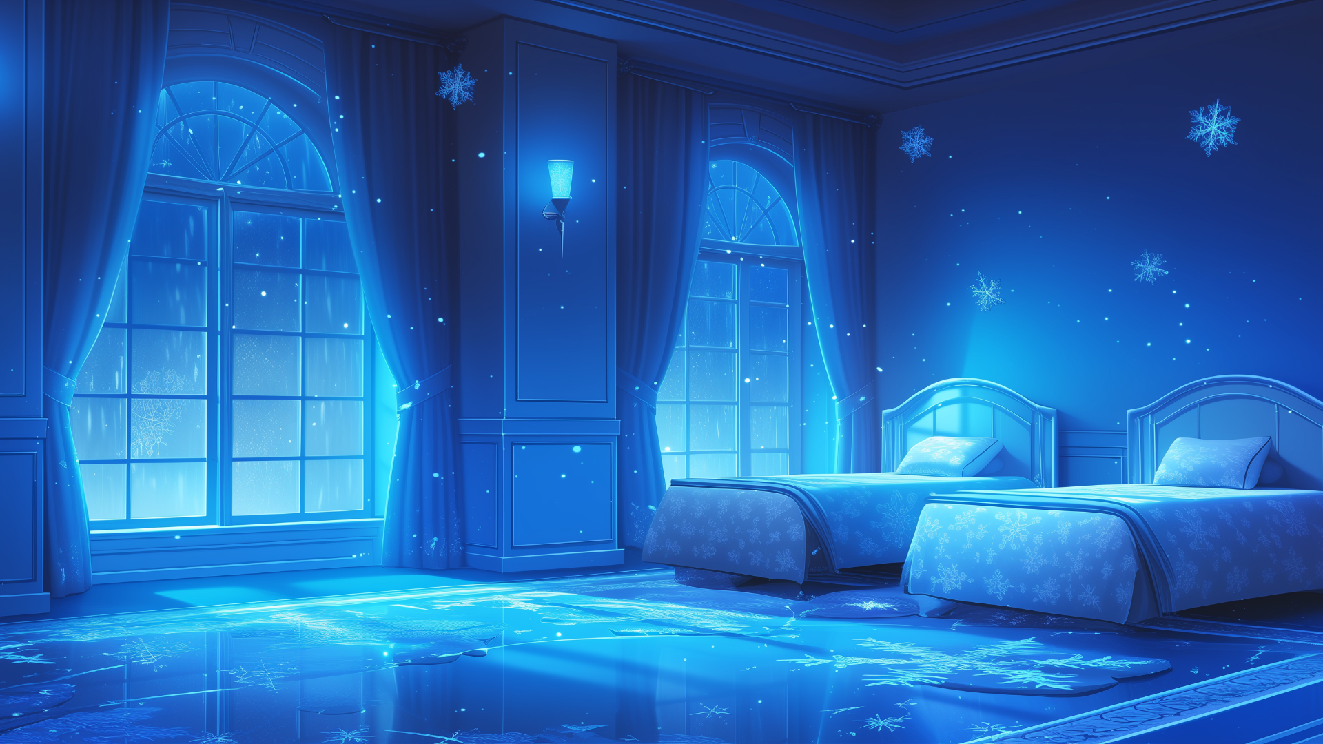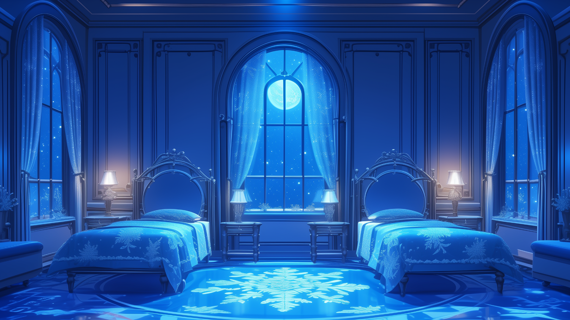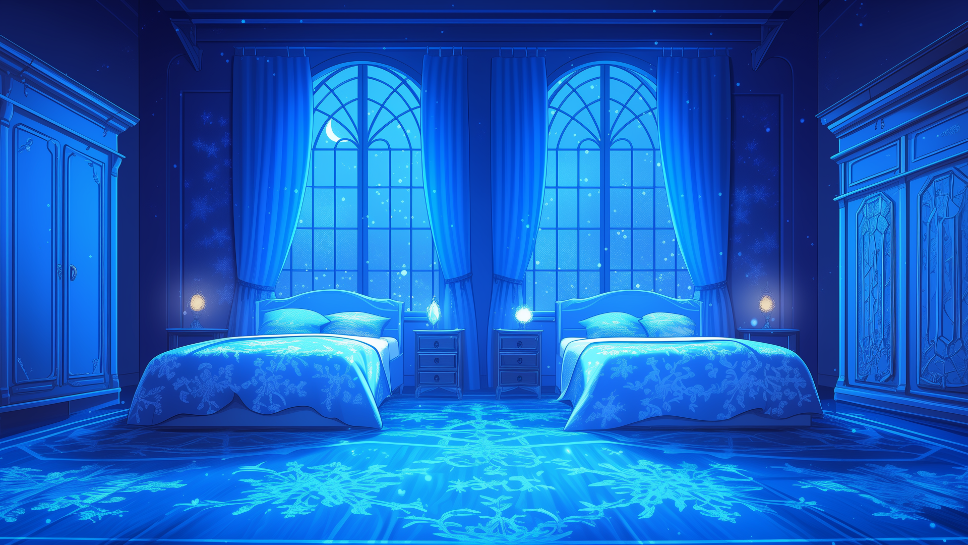 magic-school, dormitory, ice-element, two-person-room, bedroom, night