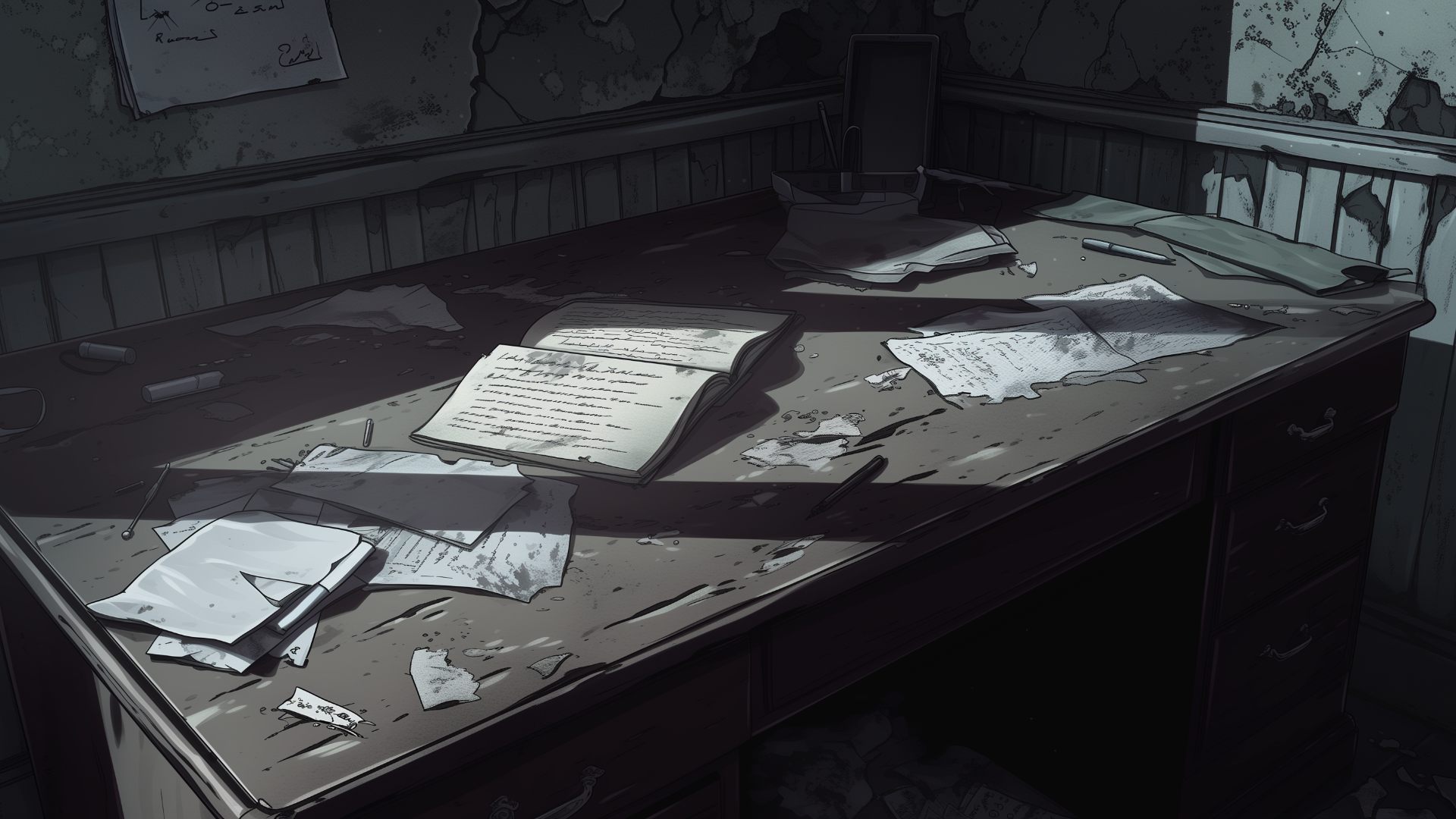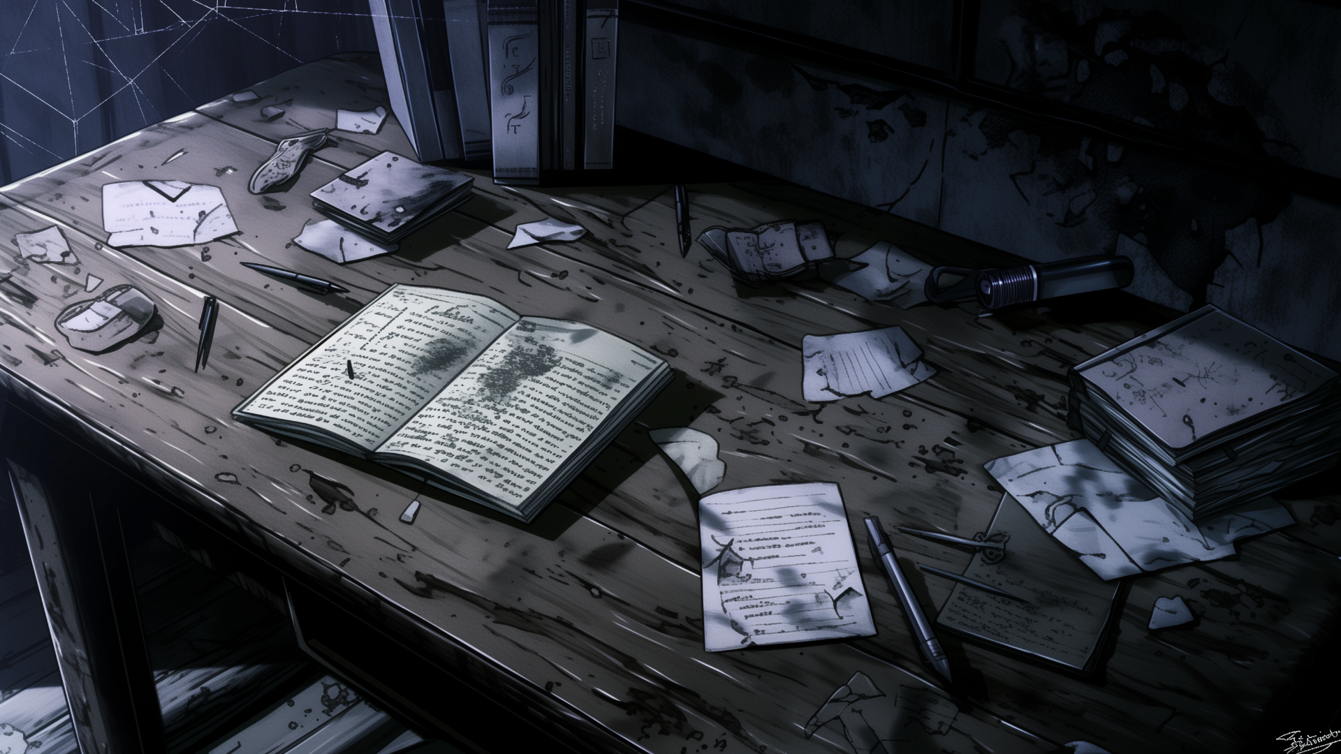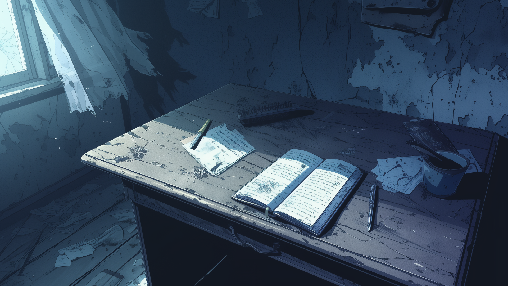 廃墟┃取り残された古い日記(8枚) 2025 3/17 荒廃・終末 小物・道具 机 日記 暗めの部屋にある机上の日記(手記)のフリー背景素材です。 当サイトの背景素材はAIで生成したイラストです。 まとめてダウンロードしたい方は↓のボタンからどうぞ! 一括ダウンロード ダウンロード DL DL DL DL DL DL DL 【素材情報】解像度: 1920×1080ファイル形式: PNG 【利用規約】 商用利用可能 クレジット表記不要 加工(トリミング、色変えなど)OK 素材の再配布(第三者への譲渡)禁止 詳細な利用規約はこちらのページをご確認ください。 【関連キーワード】机, 本, ペン, 紙, 散乱desk, book, pen, paper, scattered 荒廃・終末 小物・道具 机 日記 よかったらシェアしてね! URLをコピーしました! URLをコピーしました!