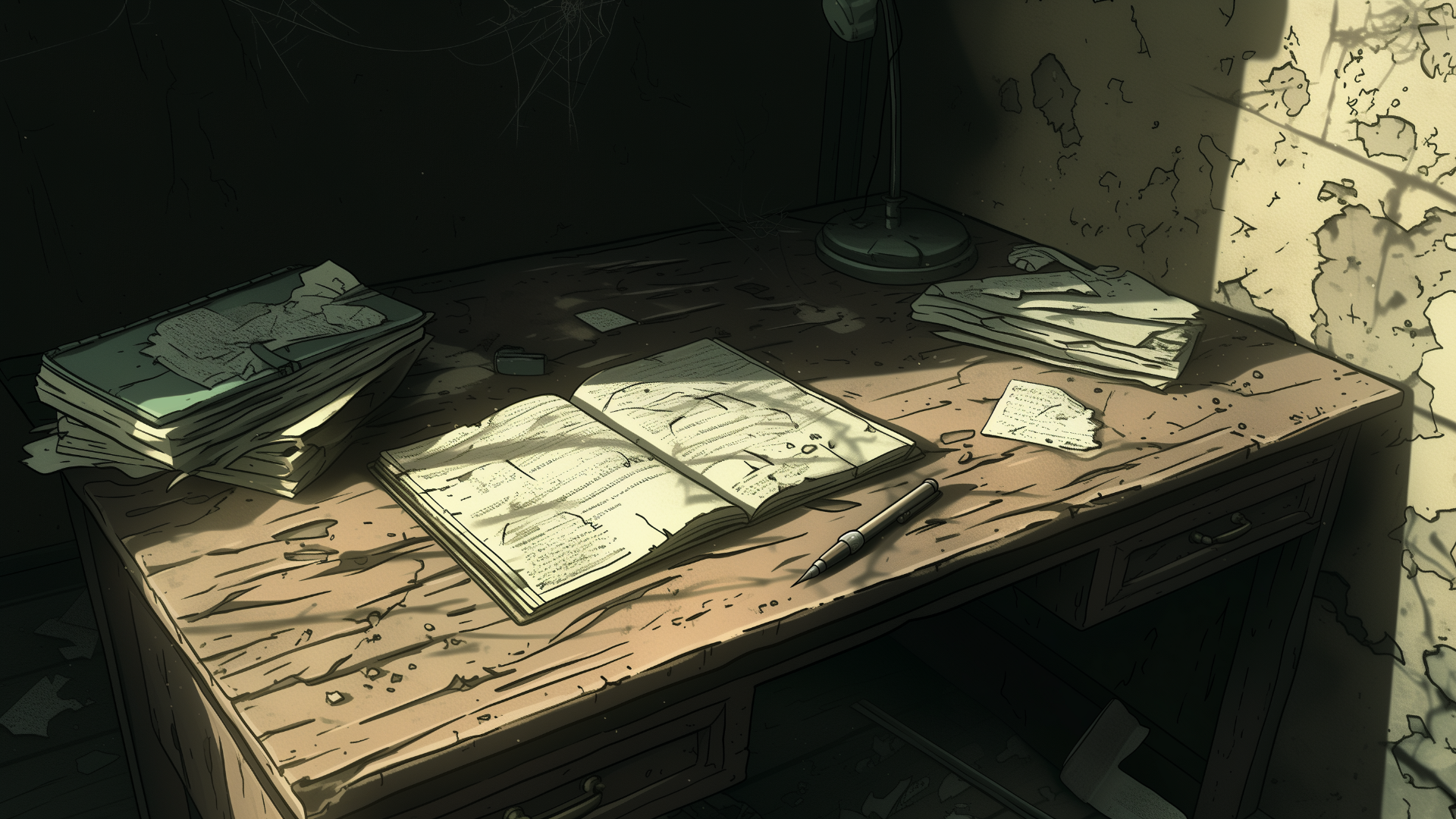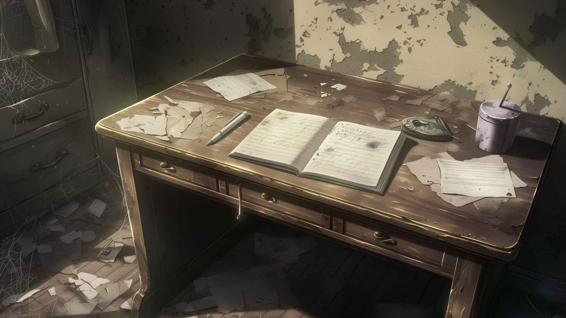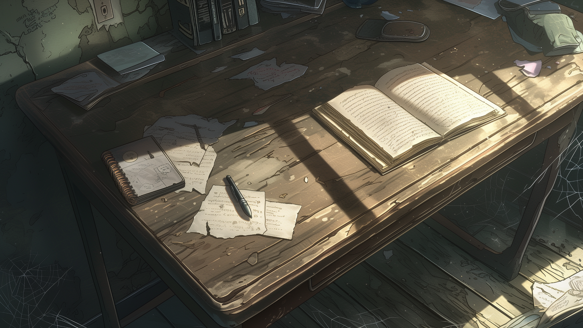 廃墟┃取り残された古い日記Ⅱ(8枚) 2025 3/18 荒廃・終末 小物・道具 机 日記 光が差し込む机の上にある日記(手記)のフリー背景素材です。 当サイトの背景素材はAIで生成したイラストです。 まとめてダウンロードしたい方は↓のボタンからどうぞ! 一括ダウンロード ダウンロード DL DL DL DL DL DL DL 【素材情報】解像度: 1920×1080ファイル形式: PNG 【利用規約】 商用利用可能 クレジット表記不要 加工(トリミング、色変えなど)OK 素材の再配布(第三者への譲渡)禁止 詳細な利用規約はこちらのページをご確認ください。 【関連キーワード】机, 本, 紙, ペン, 光desk, book, paper, pen, light 荒廃・終末 小物・道具 机 日記 よかったらシェアしてね! URLをコピーしました! URLをコピーしました!